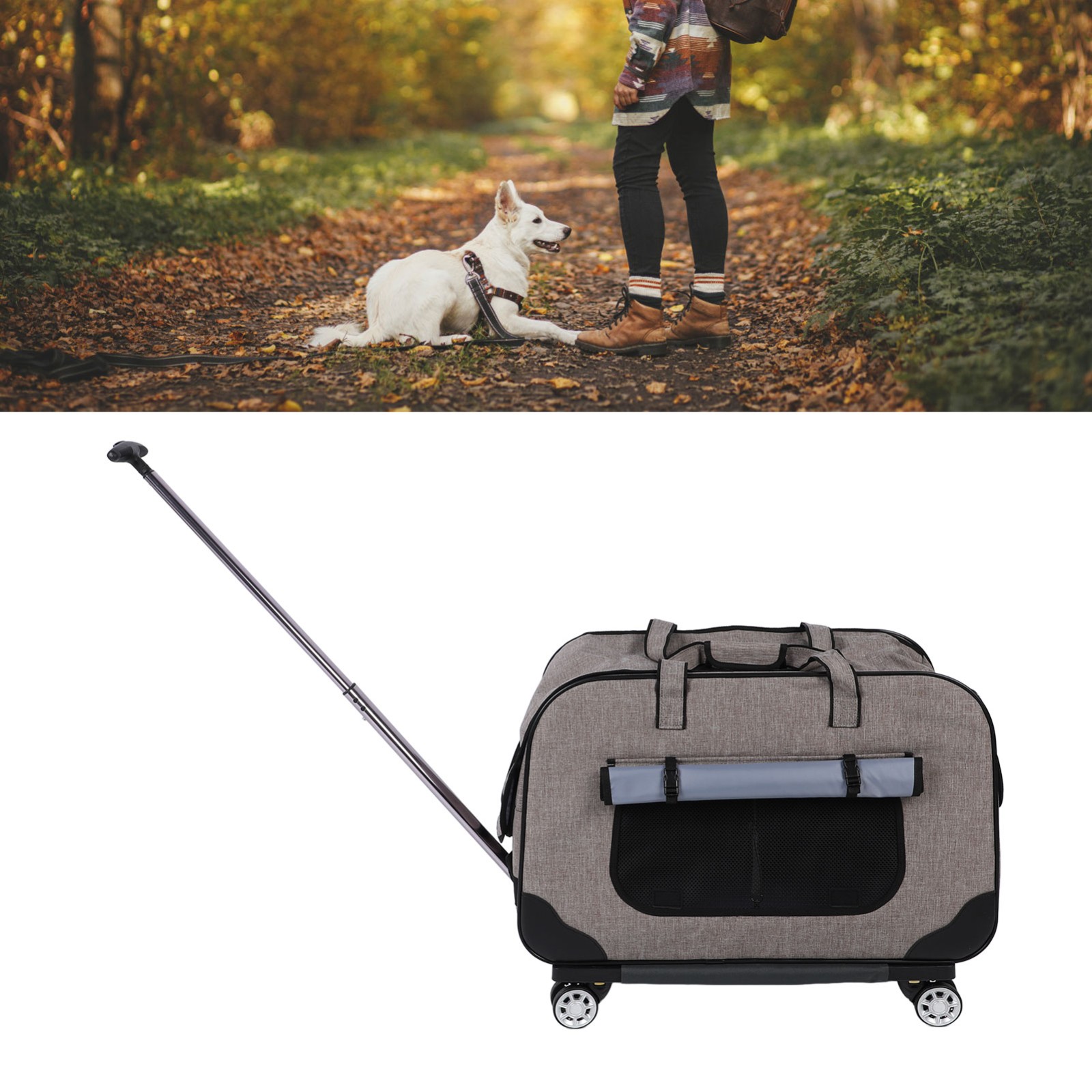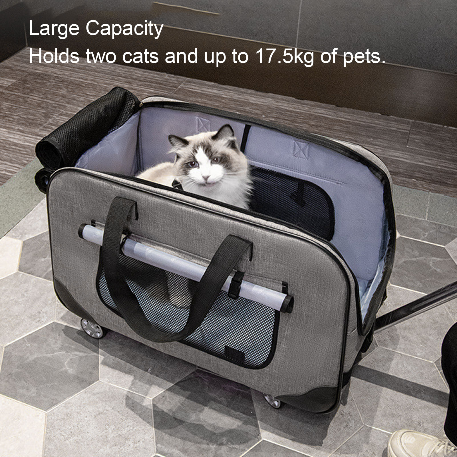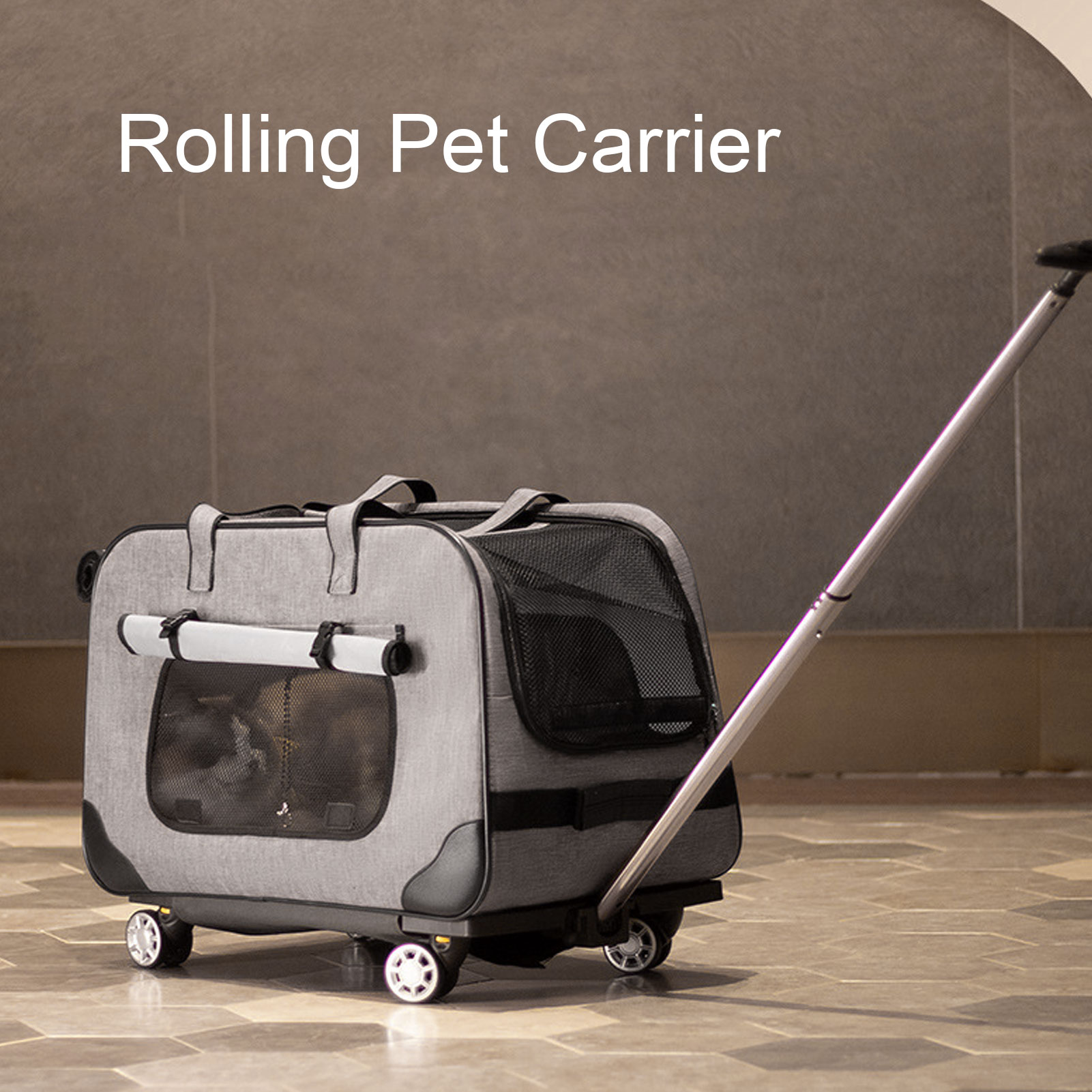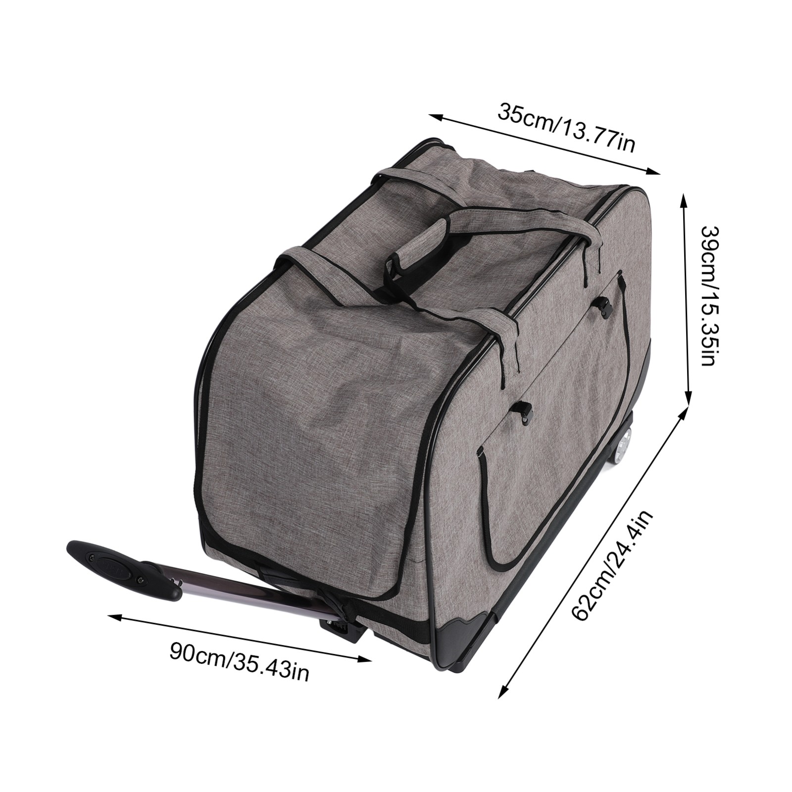Rolling Pet Carrier Breathable Mesh Foldable Cat Dog Travel Bag with Detachable Wheels for Within 17.5kg Animals Grey