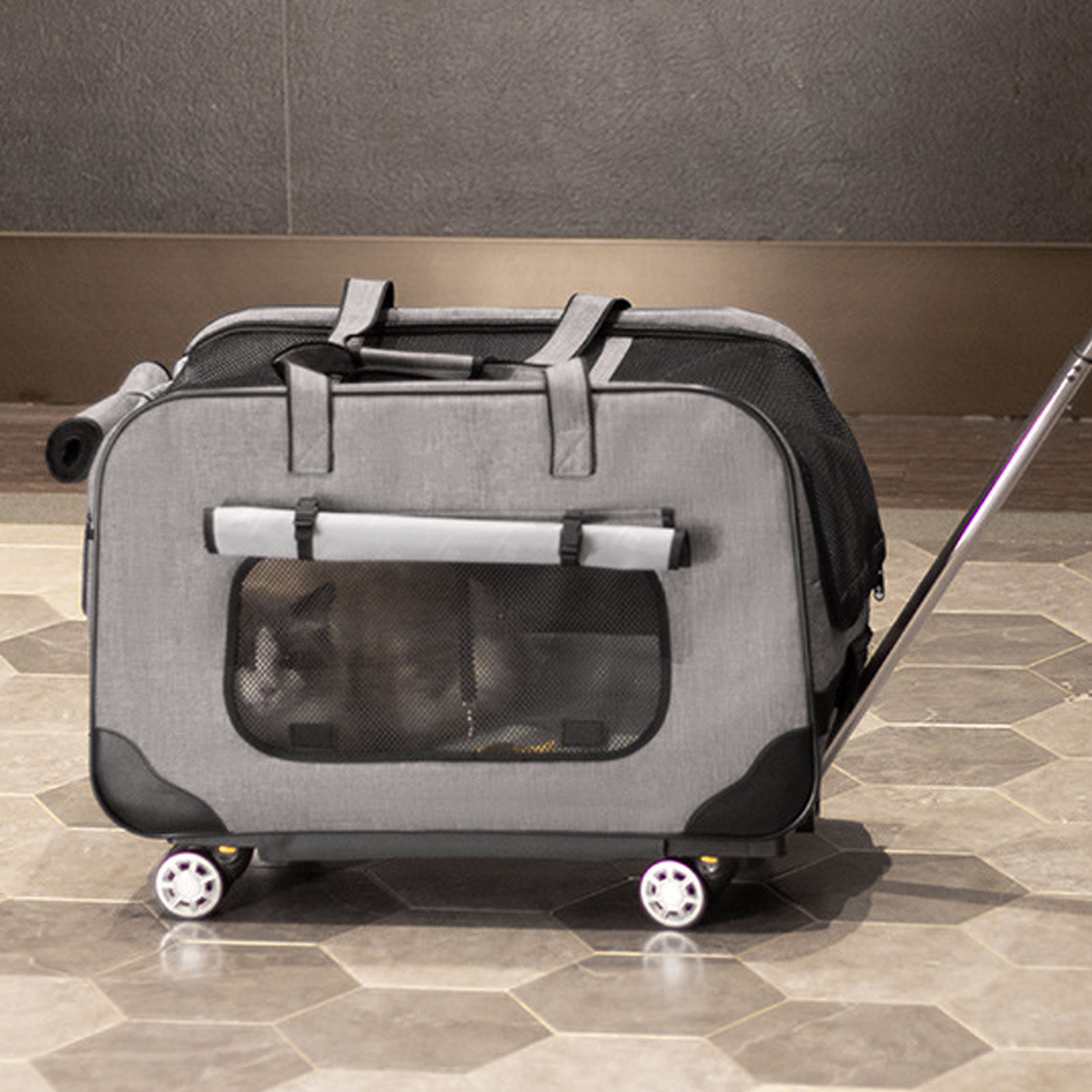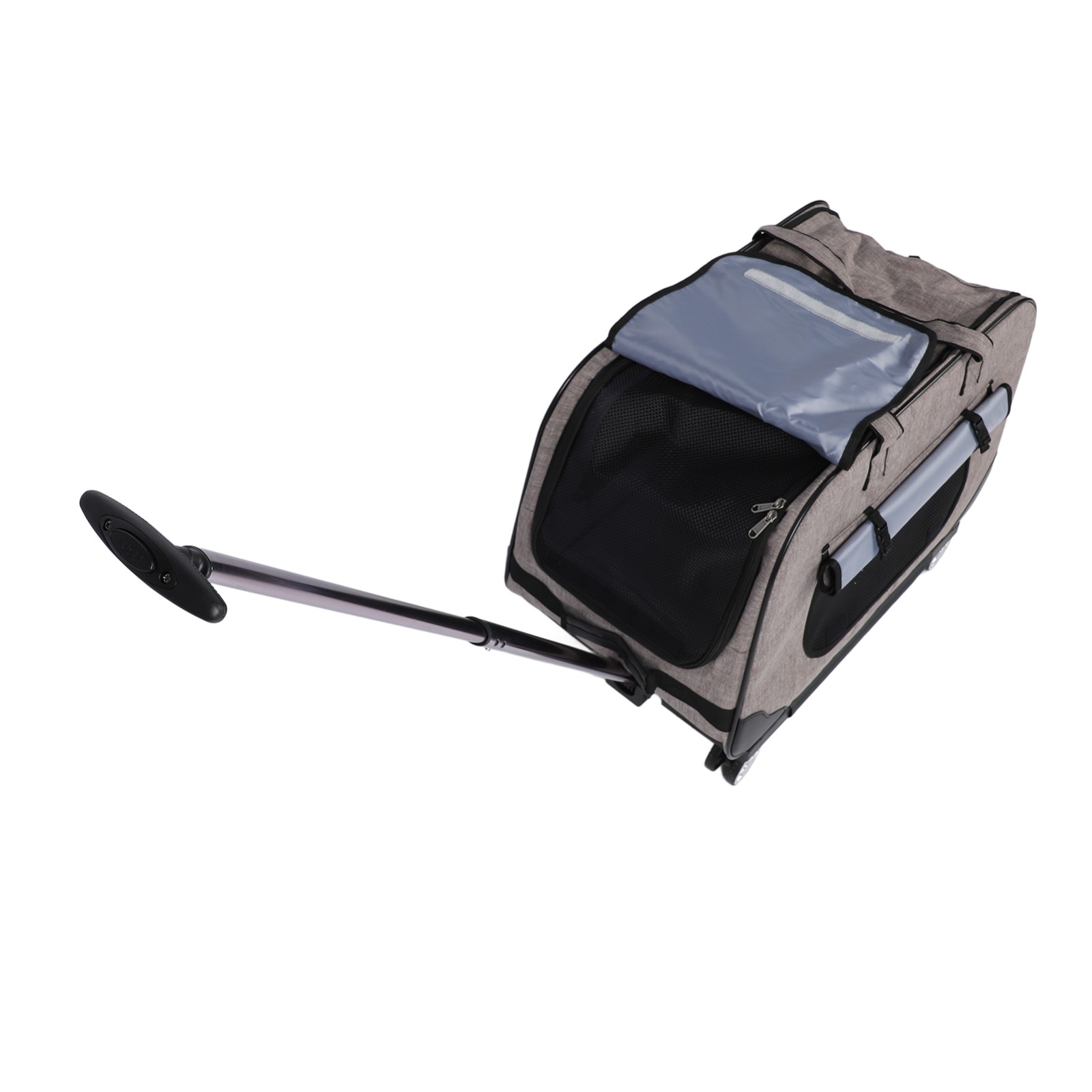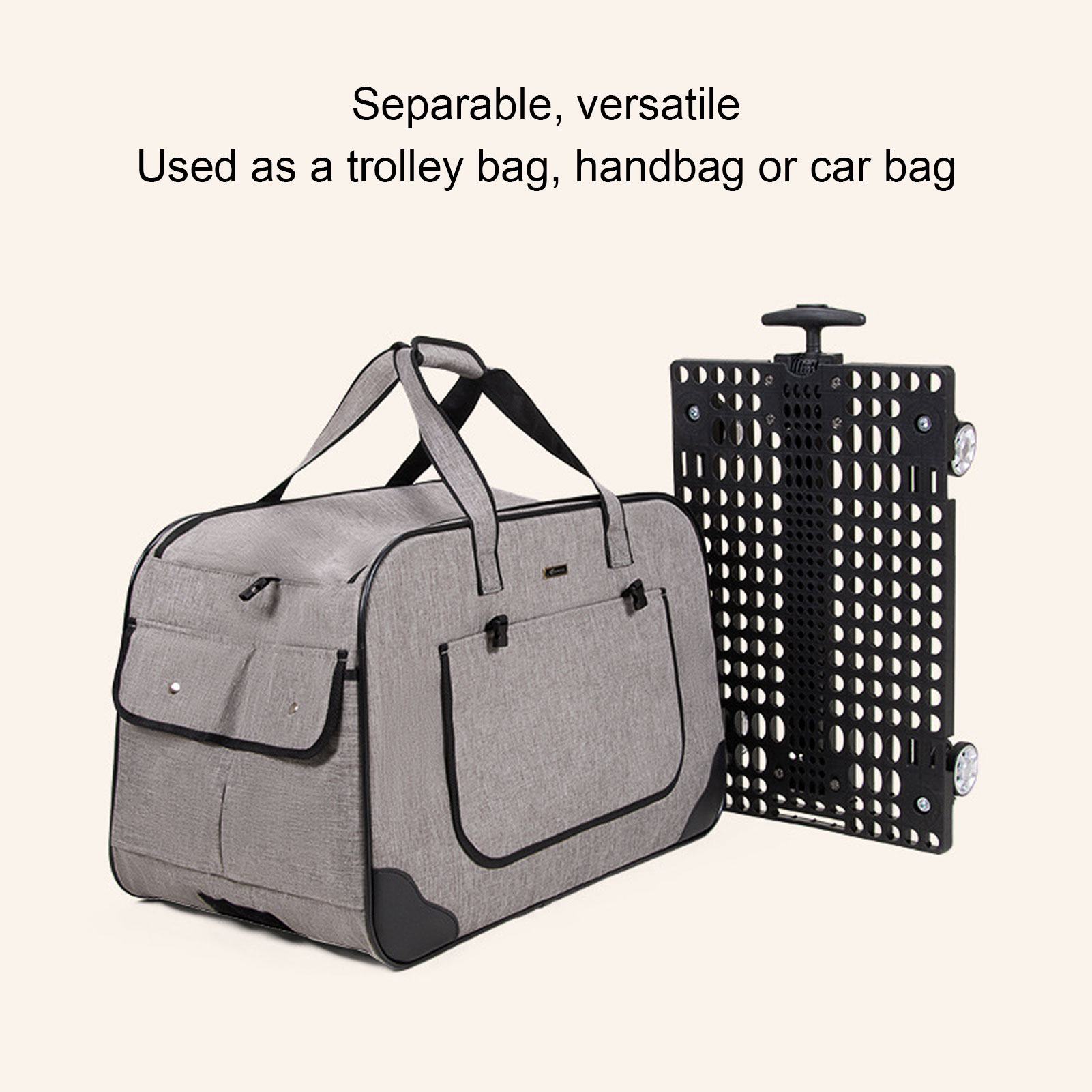 Rolling Pet Carrier Breathable Mesh Foldable Cat Dog Travel Bag with Detachable Wheels for Within 17.5kg Animals Grey
