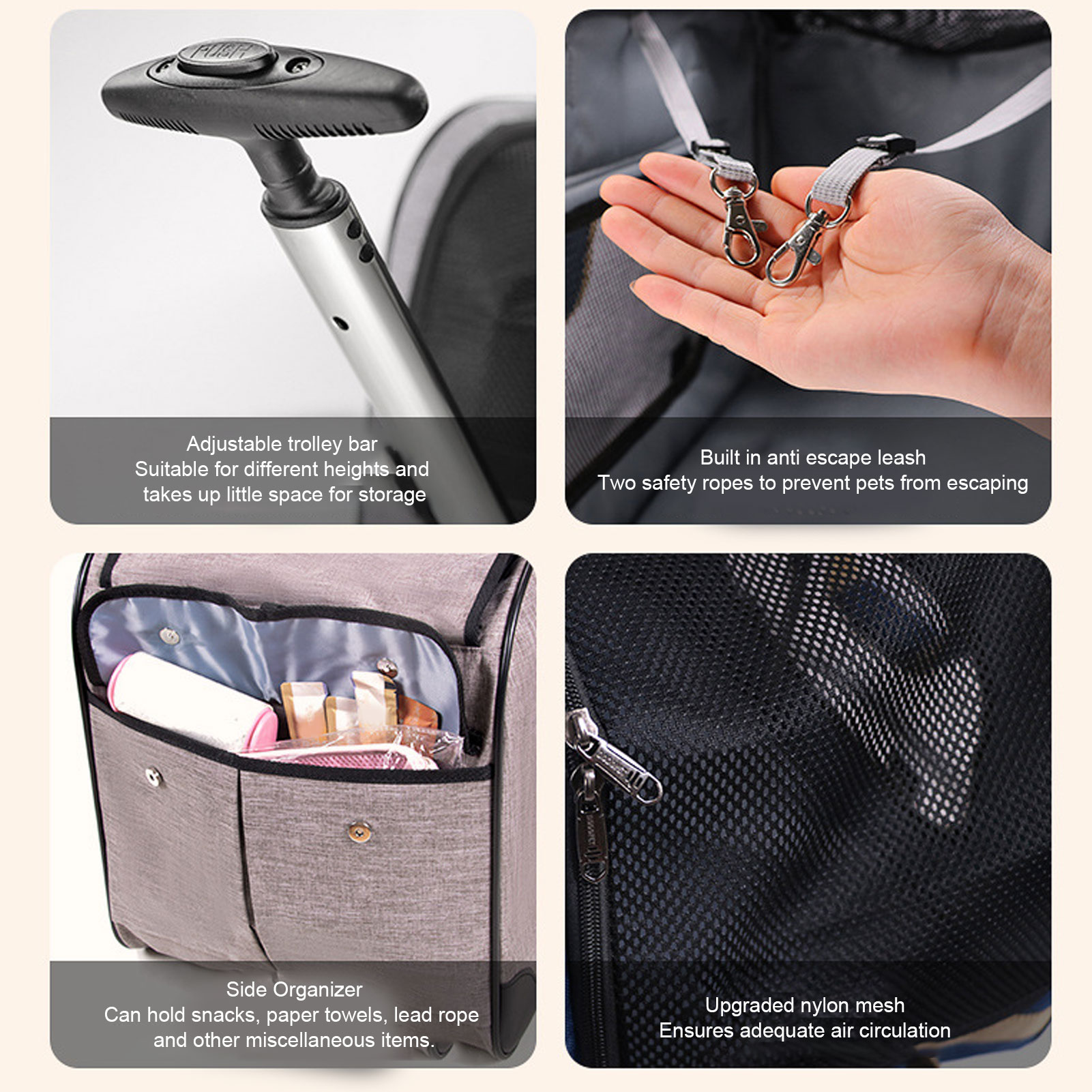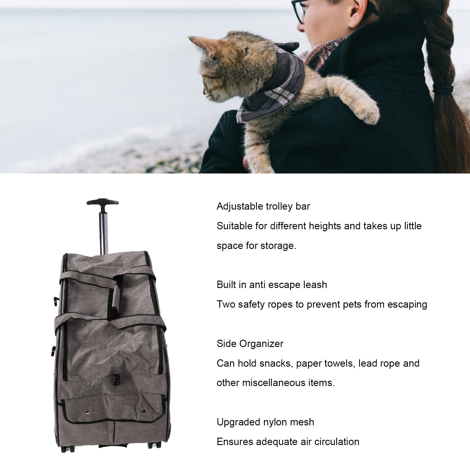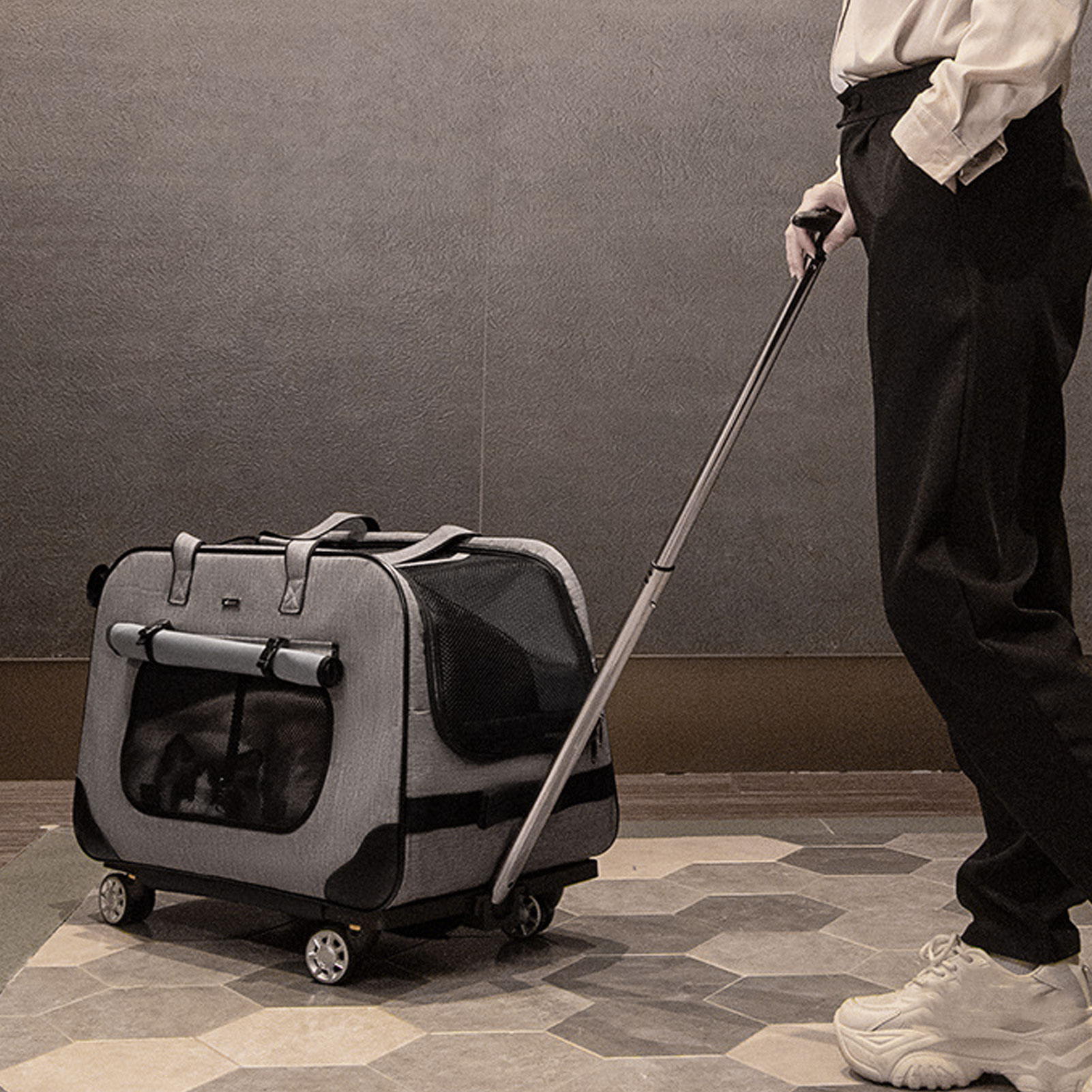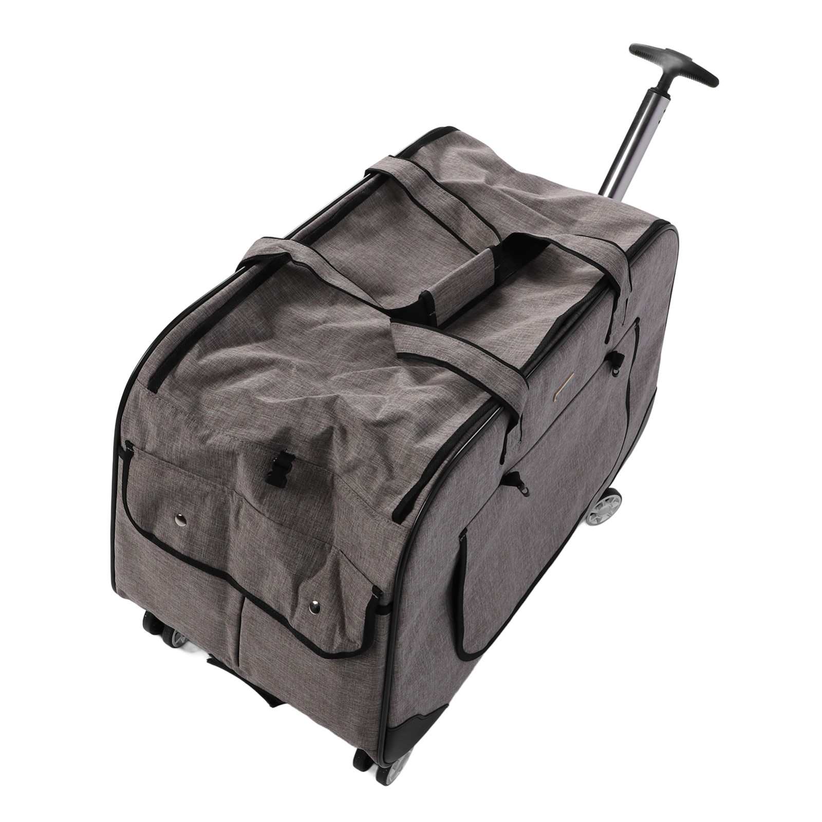 Rolling Pet Carrier Breathable Mesh Foldable Cat Dog Travel Bag with Detachable Wheels for Within 17.5kg Animals Grey