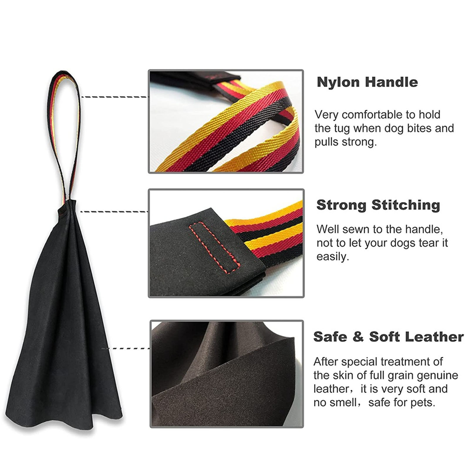 Dog Bite Rag Train Bite Grip Build Prey Drive Leather Interactive Tug of War Toy with Handle for Dog Training