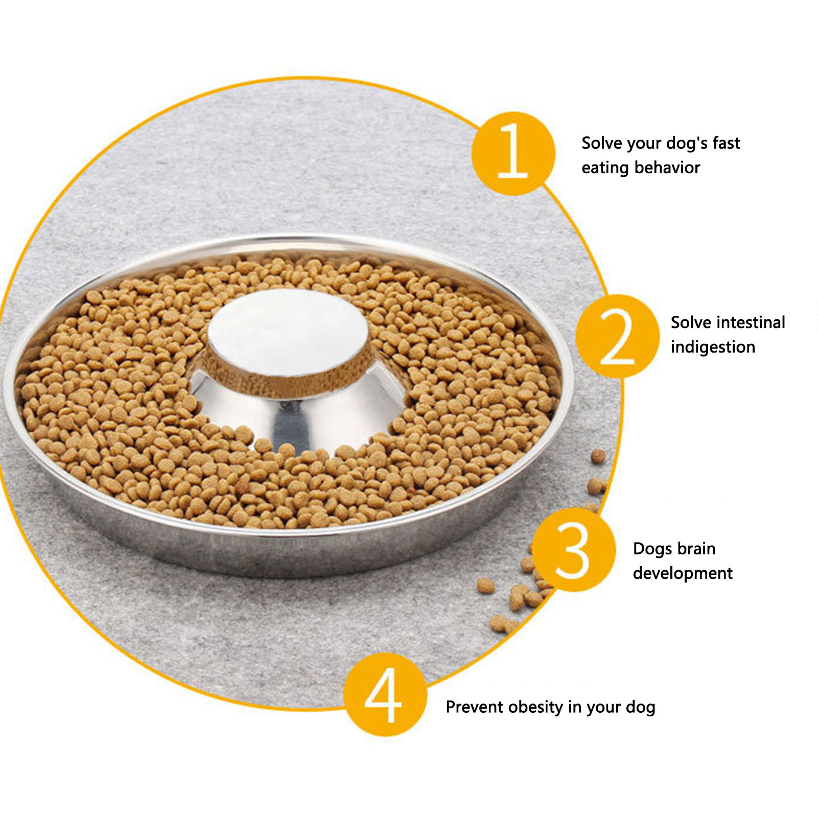 Dog Slow Feed Bowl Stainless Steel Anti Tipping Smoother Surface Puppy Pet Slow Feeder Food Bowl for Home Indoor L Size, 34 X 8cm / 13.4 X 3.1in