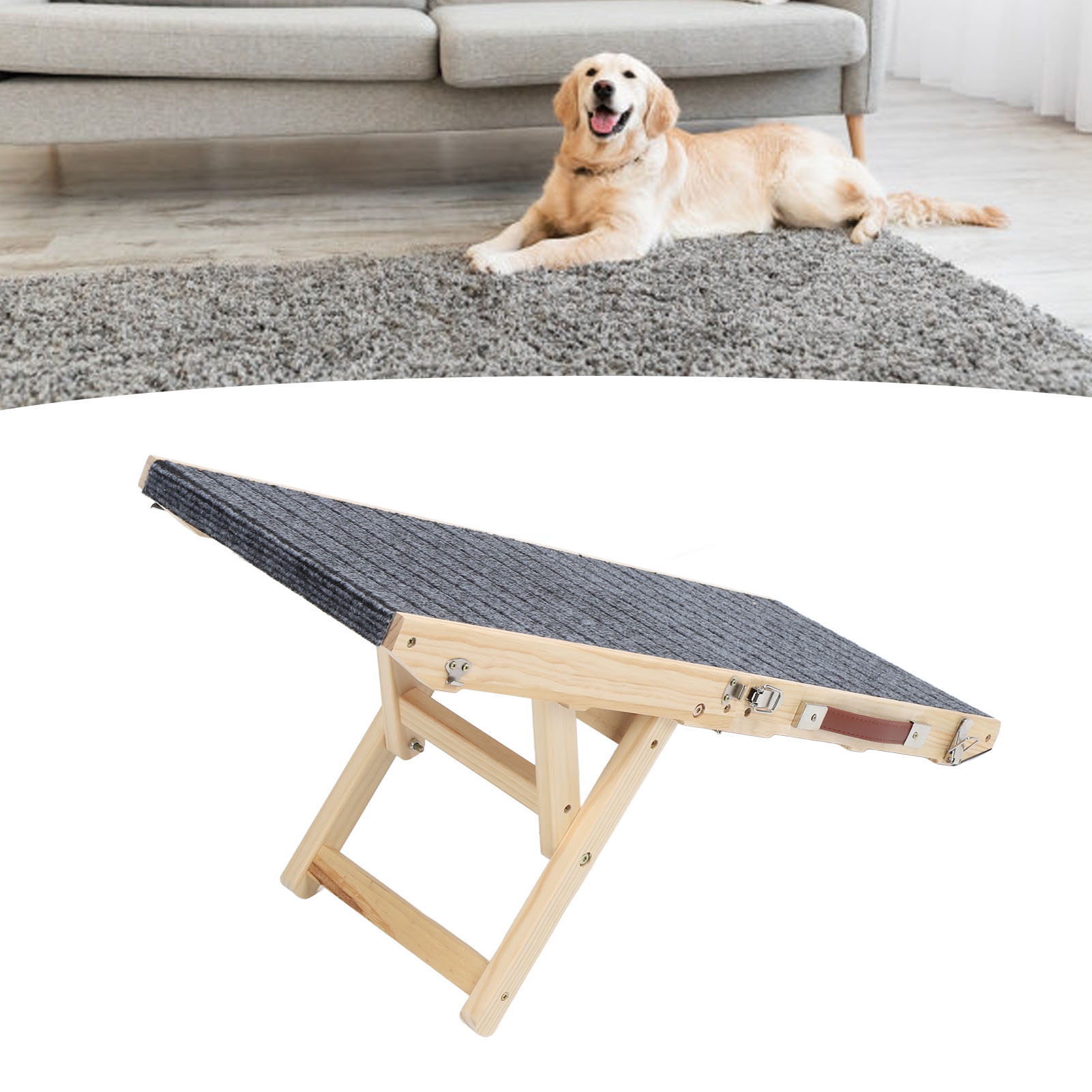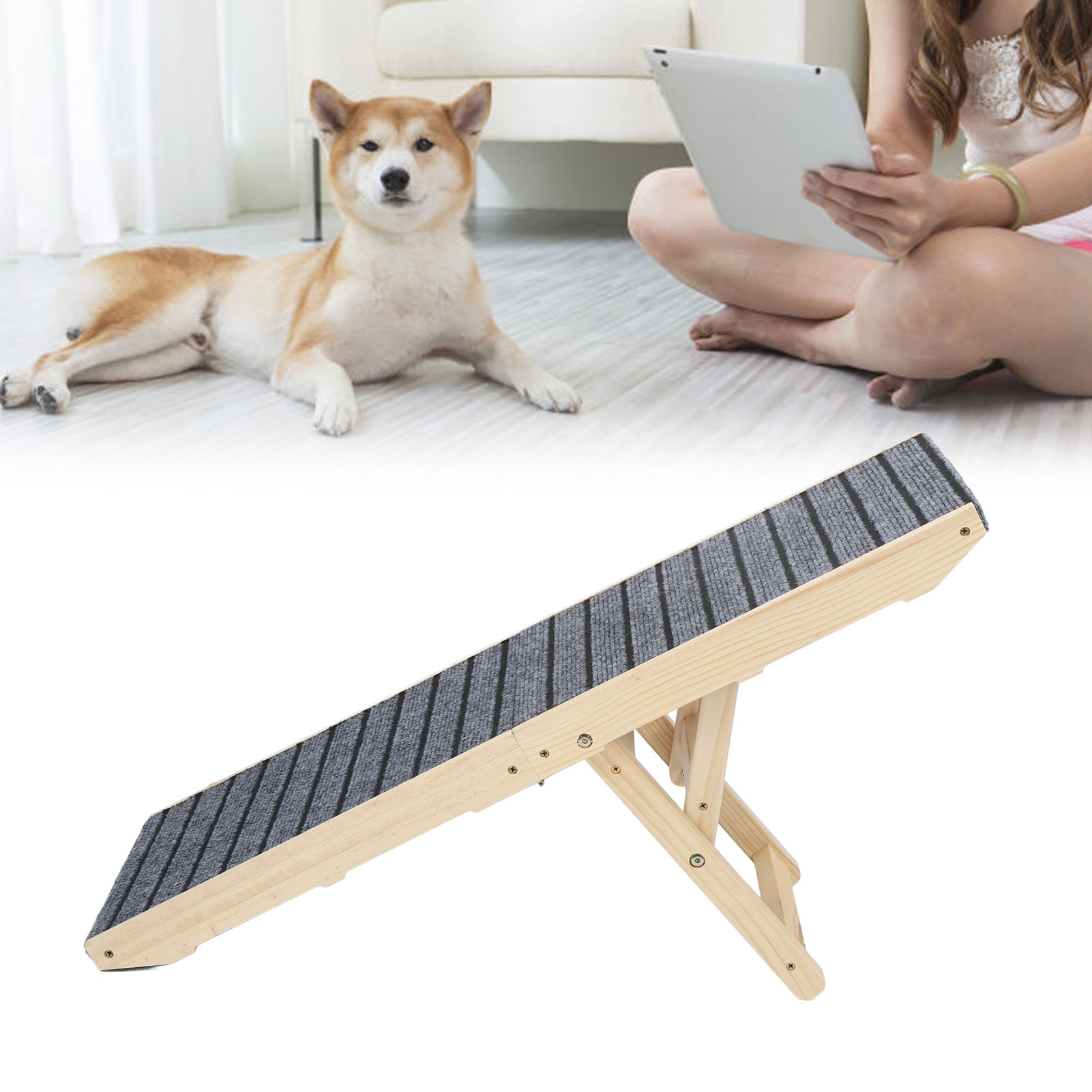 Pet Foldable Ramp Strong Support Slip Resistant Space Saving Wood Adjustable Portable Dog Ramp for Car Sofa