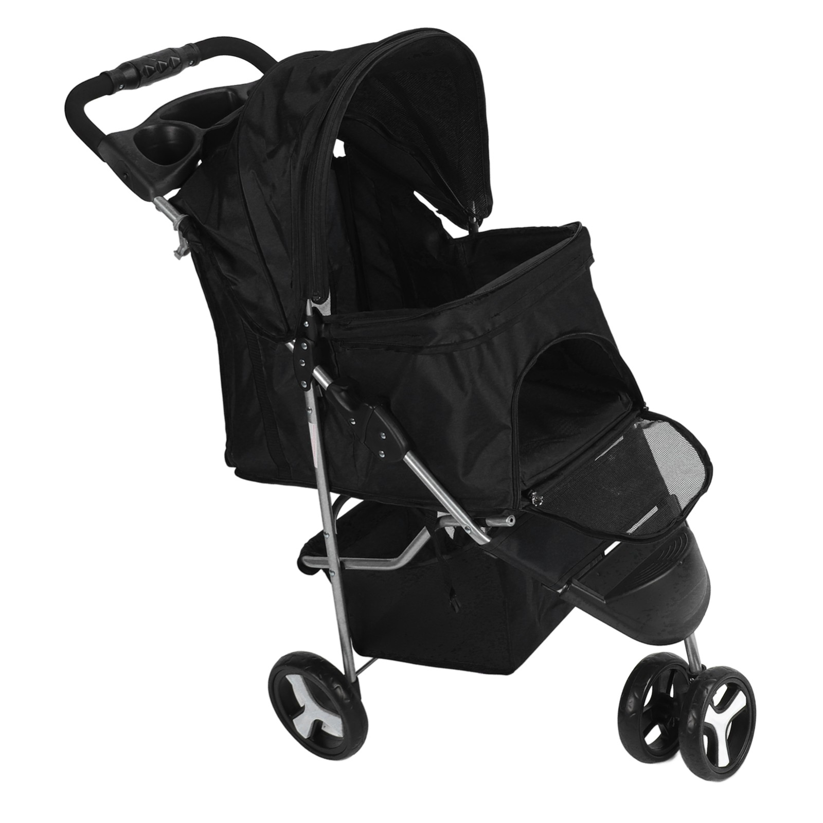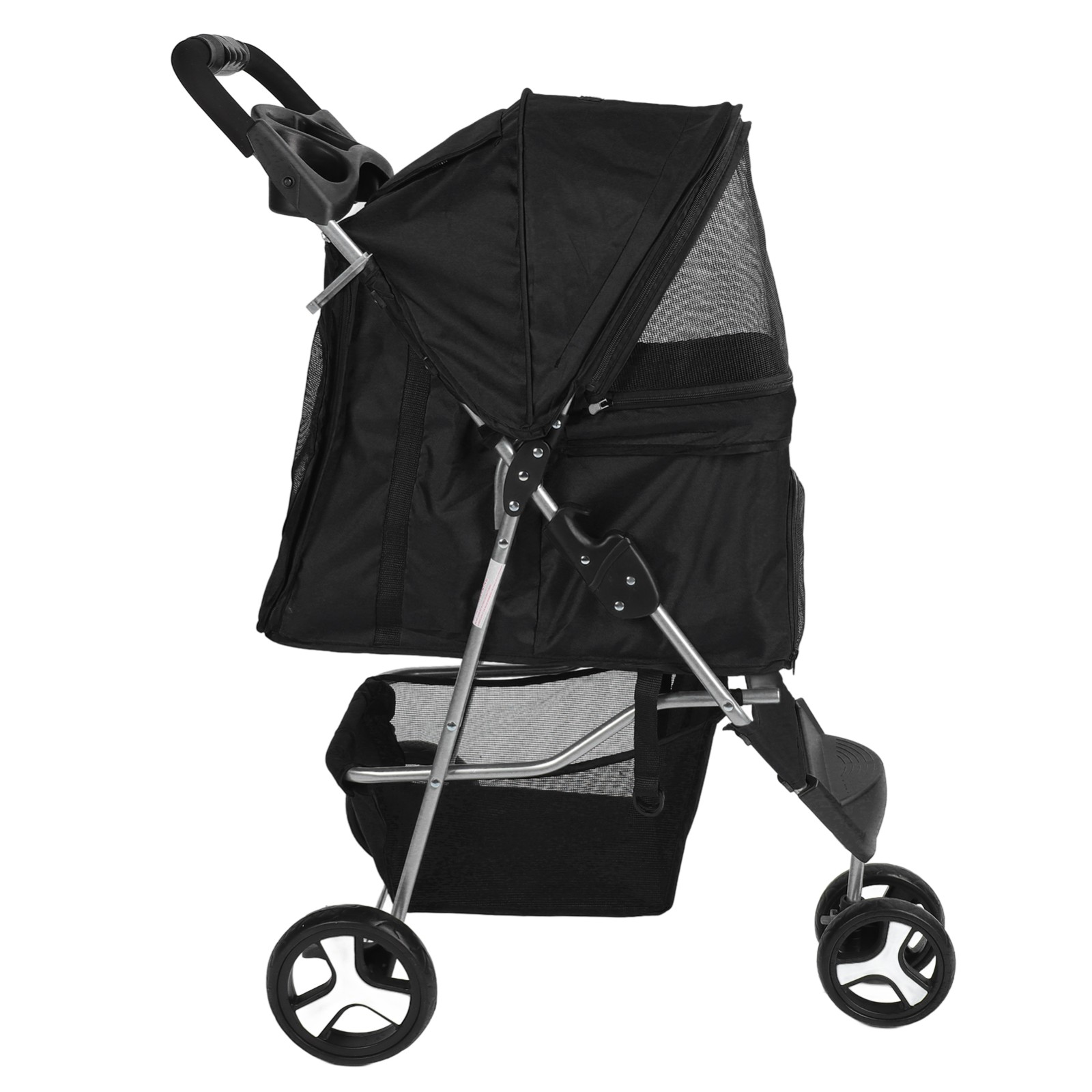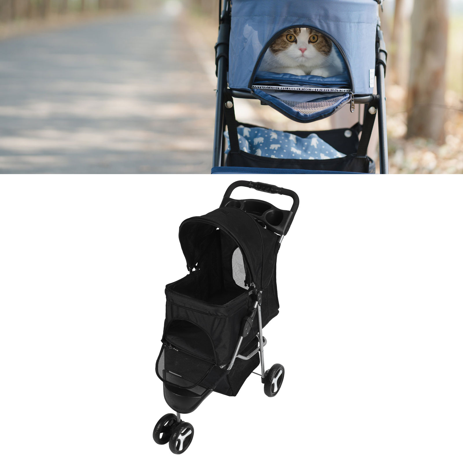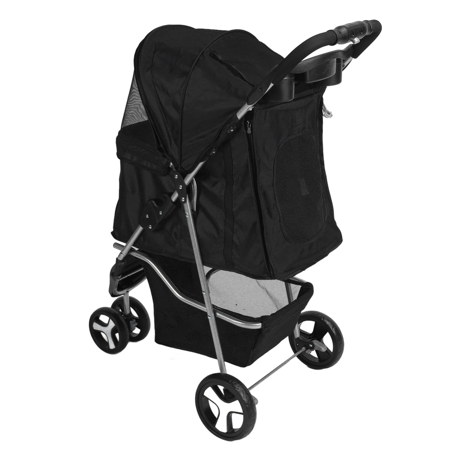 Pet Stroller Foldable Breathable Visible Mesh Dog Cat Carrier Cart with Storage Basket and Cup Holder for Outdoor Black