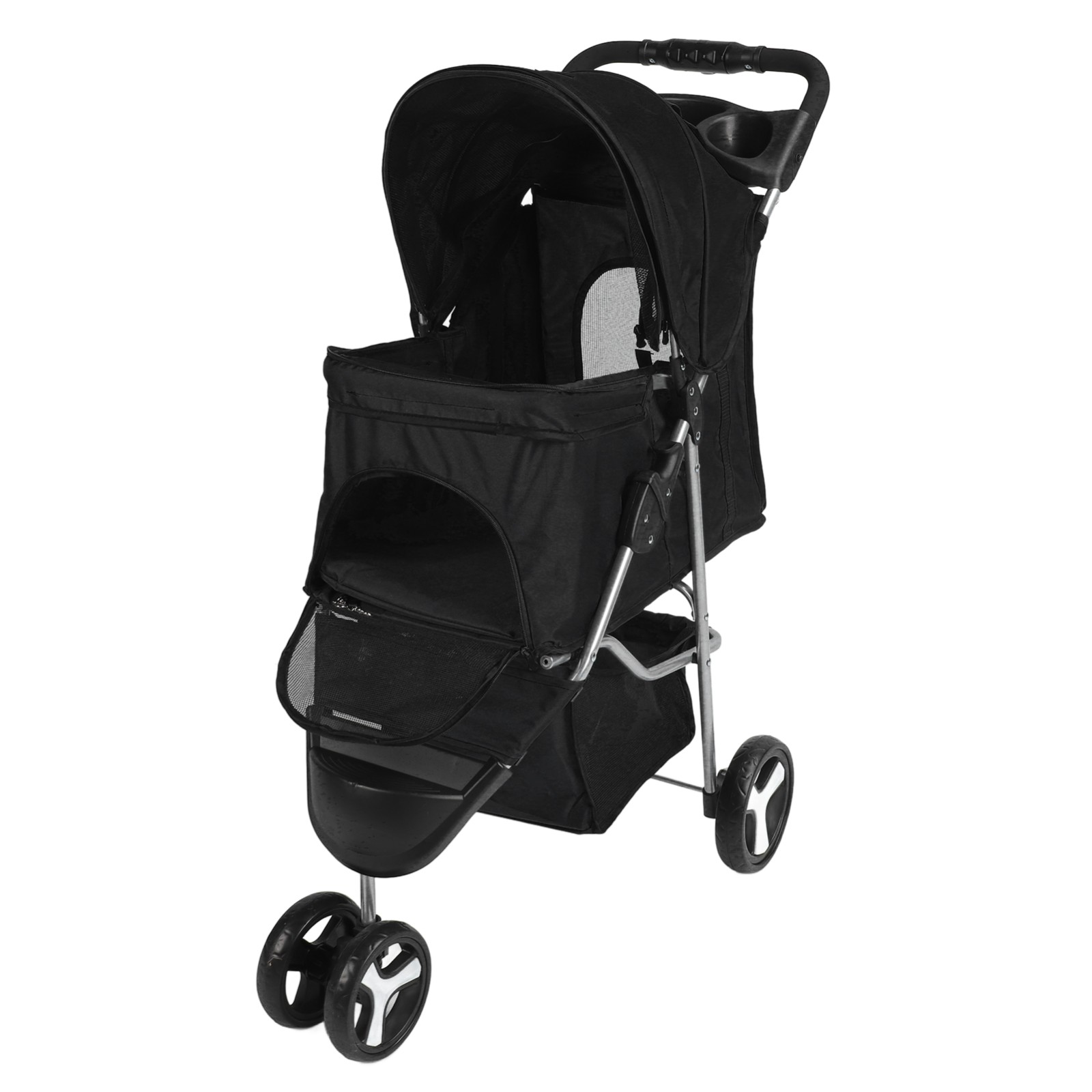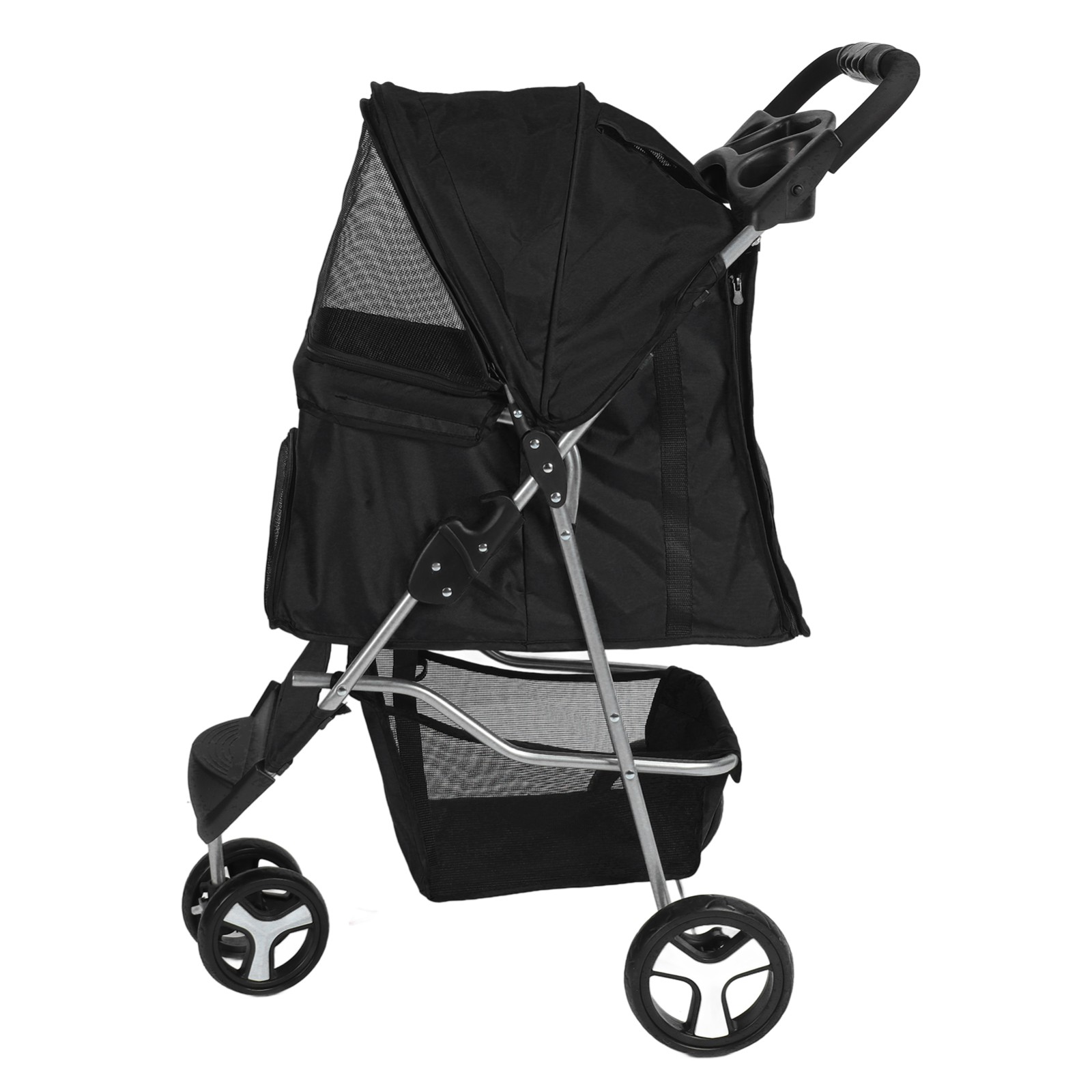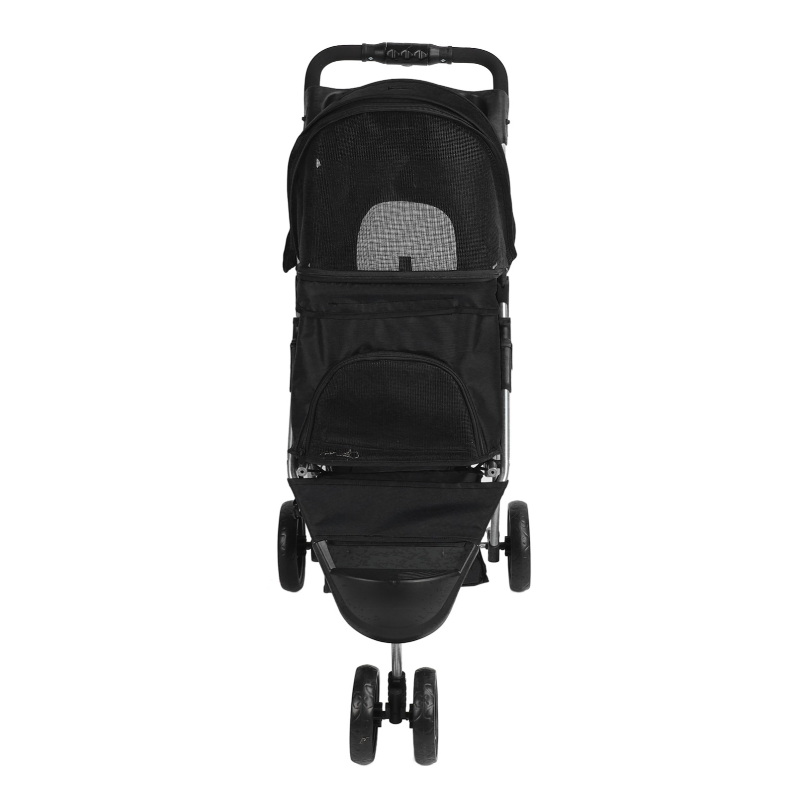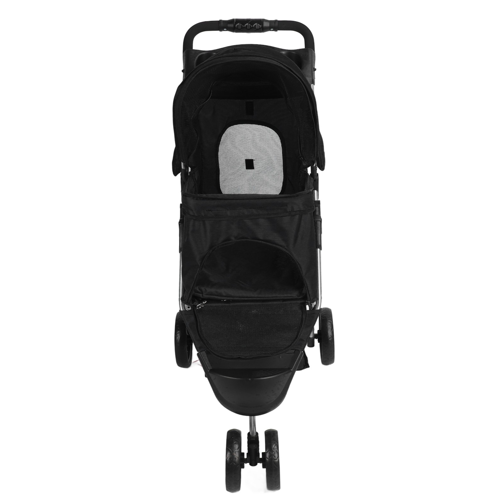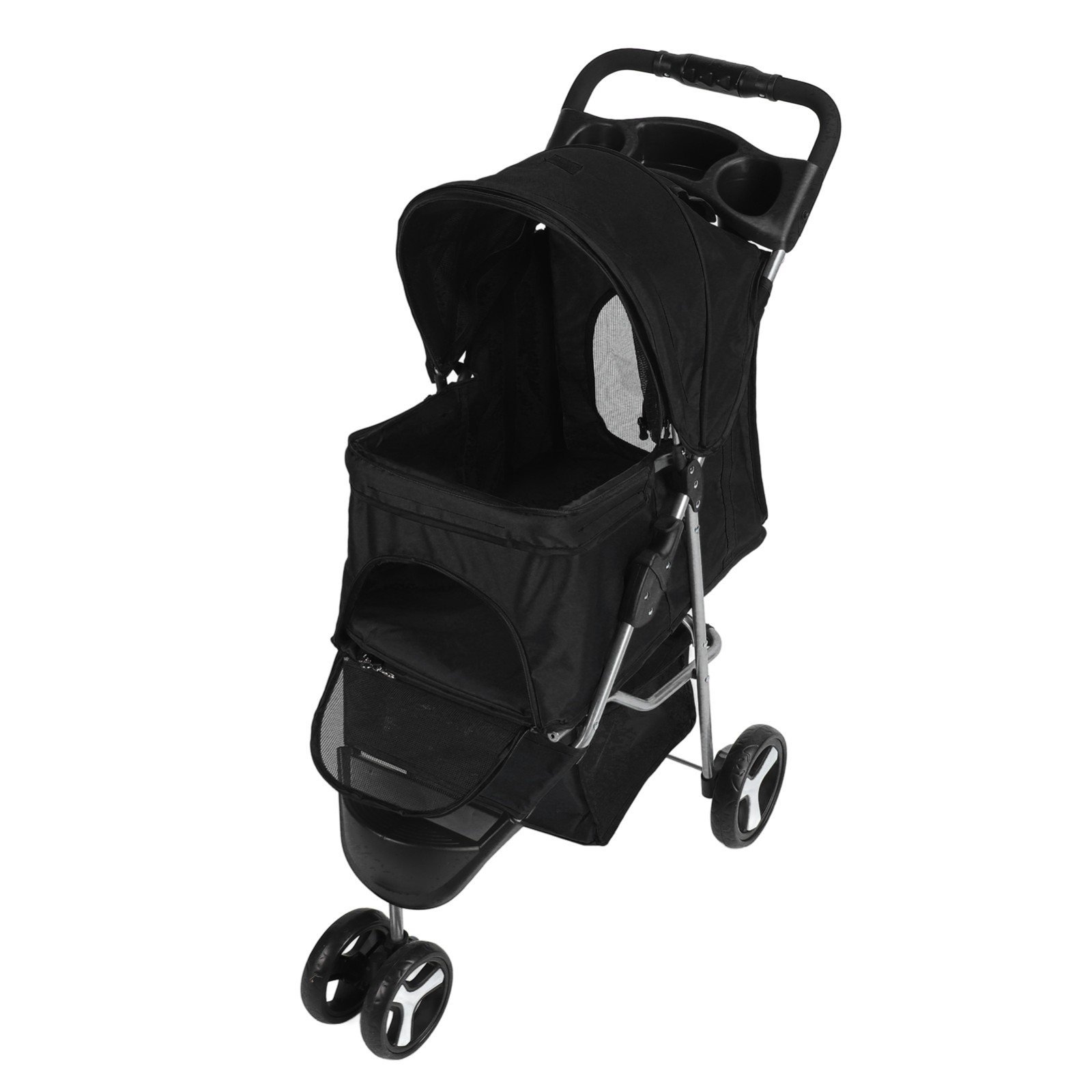 Pet Stroller Foldable Breathable Visible Mesh Dog Cat Carrier Cart with Storage Basket and Cup Holder for Outdoor Black