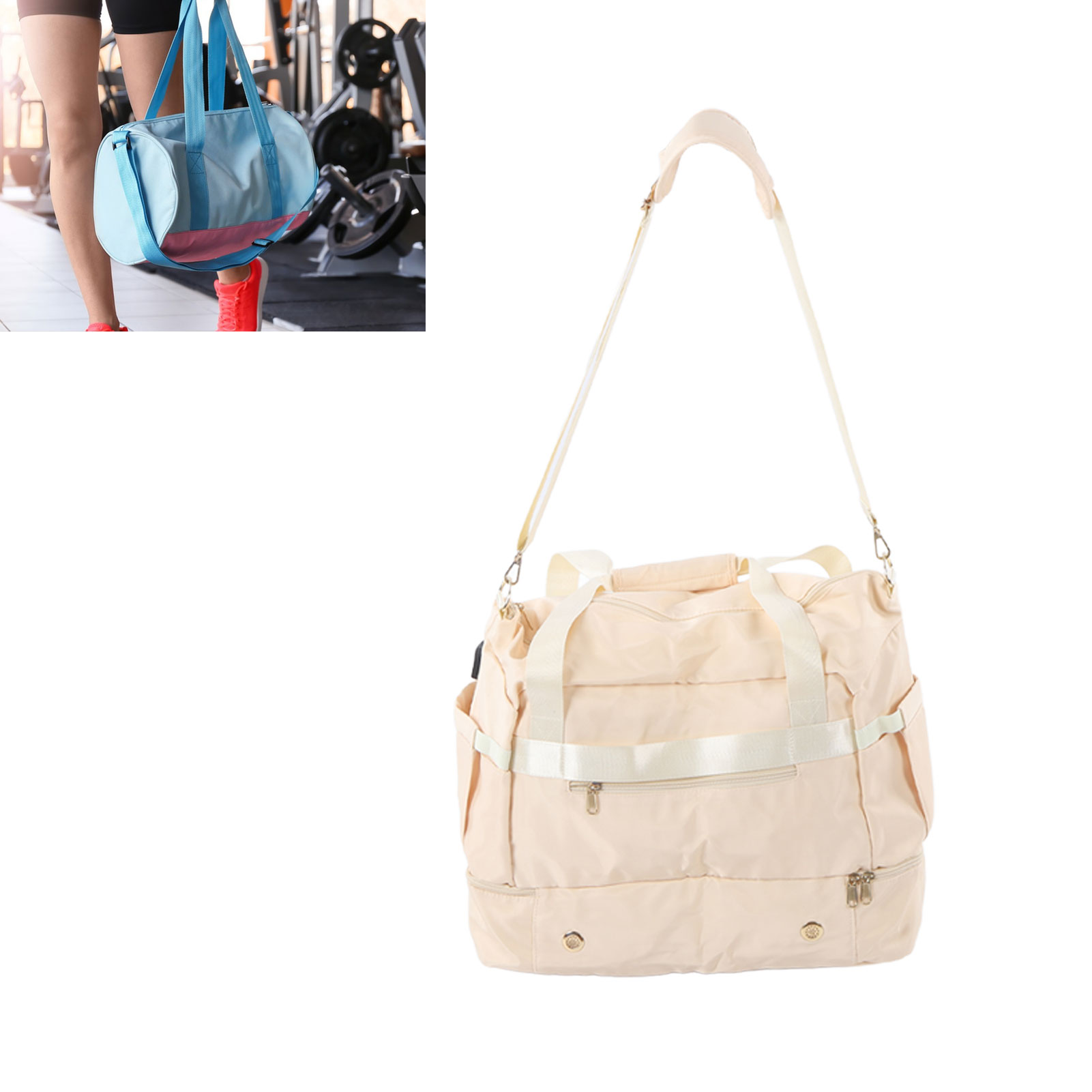 户外女式健身包 带USB充电端口的运动旅行行李袋 瑜伽包象牙白 YM2719230080711 K