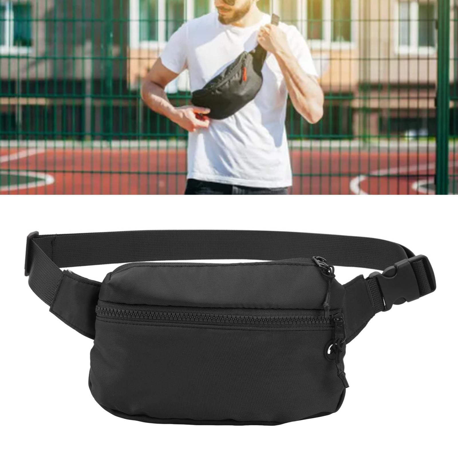 Sports Waist Bag Large Capacity Waterproof Nylon Fanny Pack Belt Bag with Headphone Hole for Workout Running Traveling Black