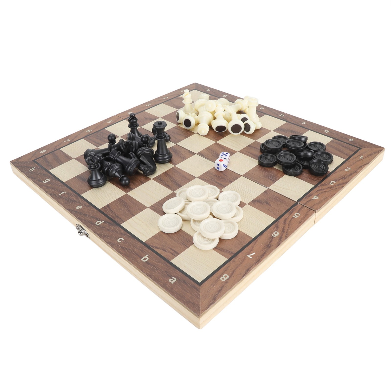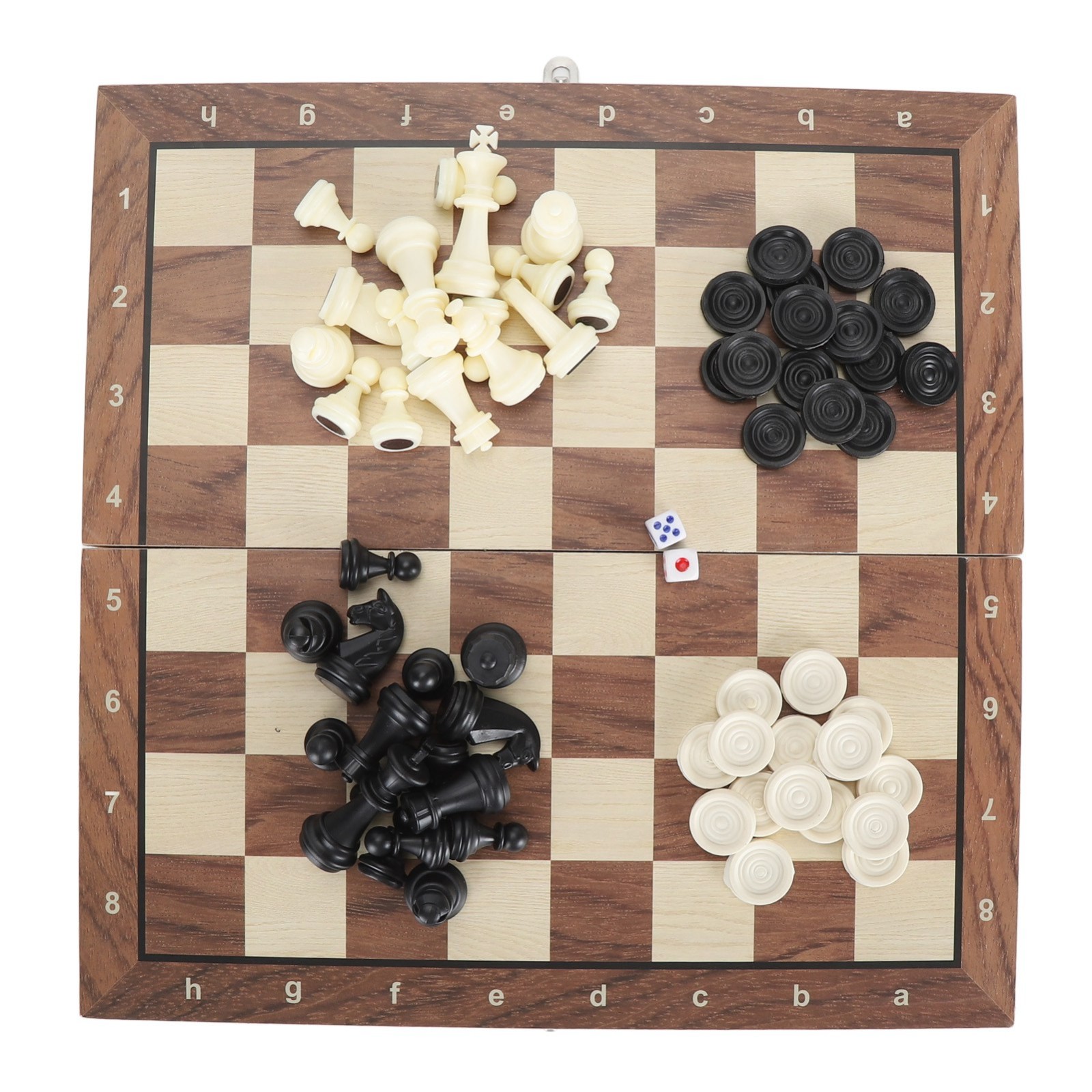 3 in 1 Chess Checkers Set Foldable Portable Strategy Chess Board Game Toy for for Adults Kids