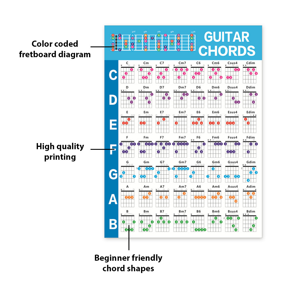 吉他和弦指法图 指法谱 和弦表 音乐理论和弦图适用于初学者/吉他手 小号 吉他 YMI9732-G G