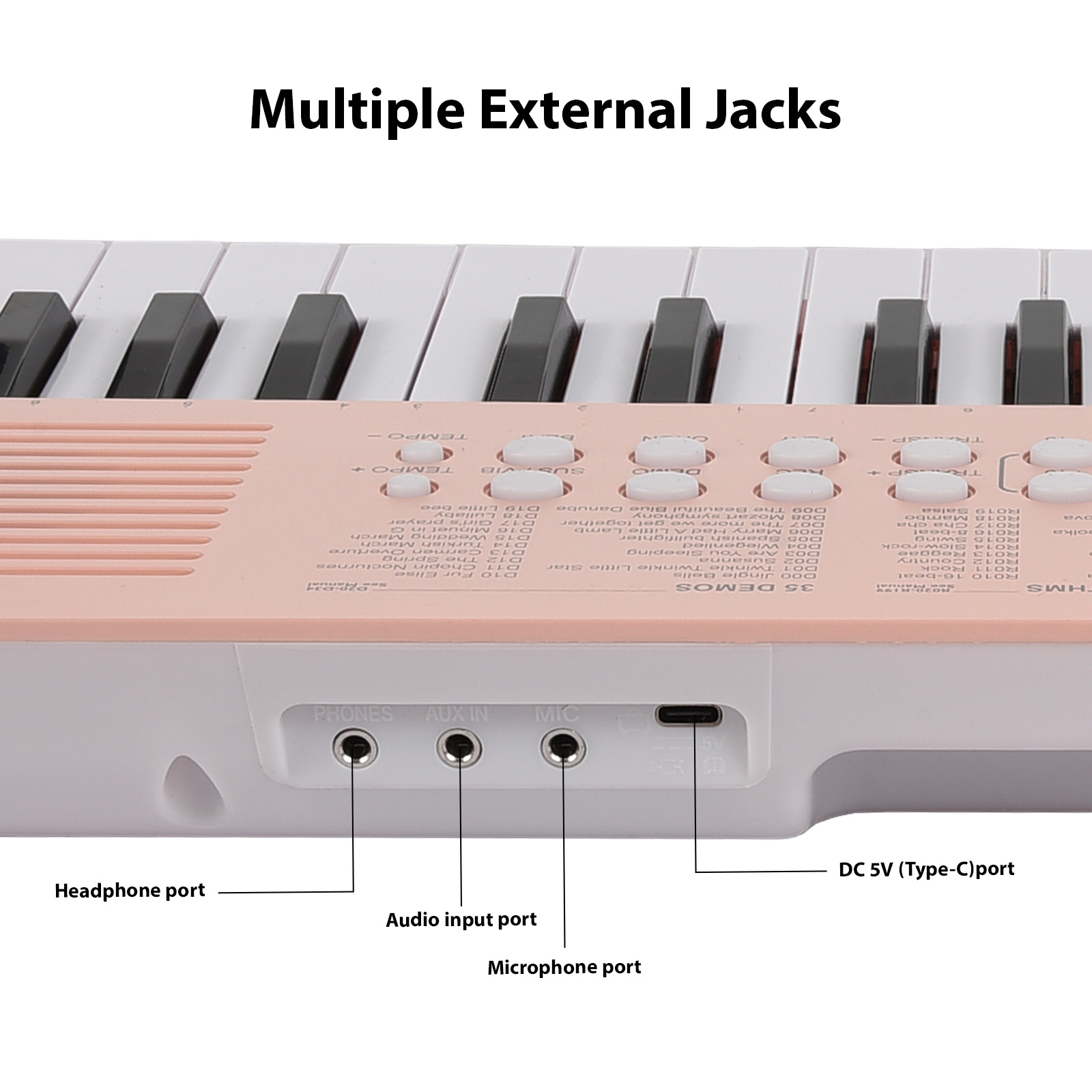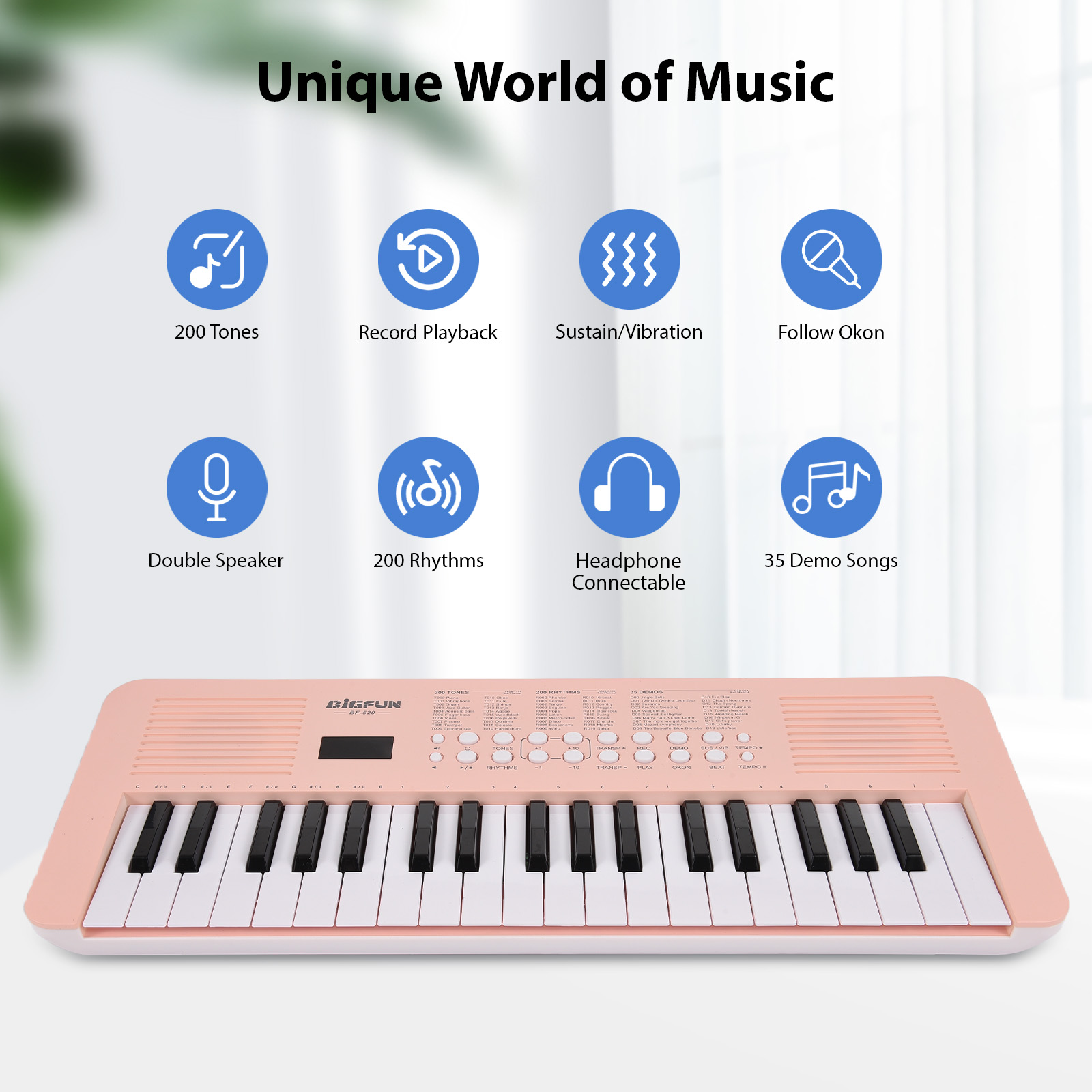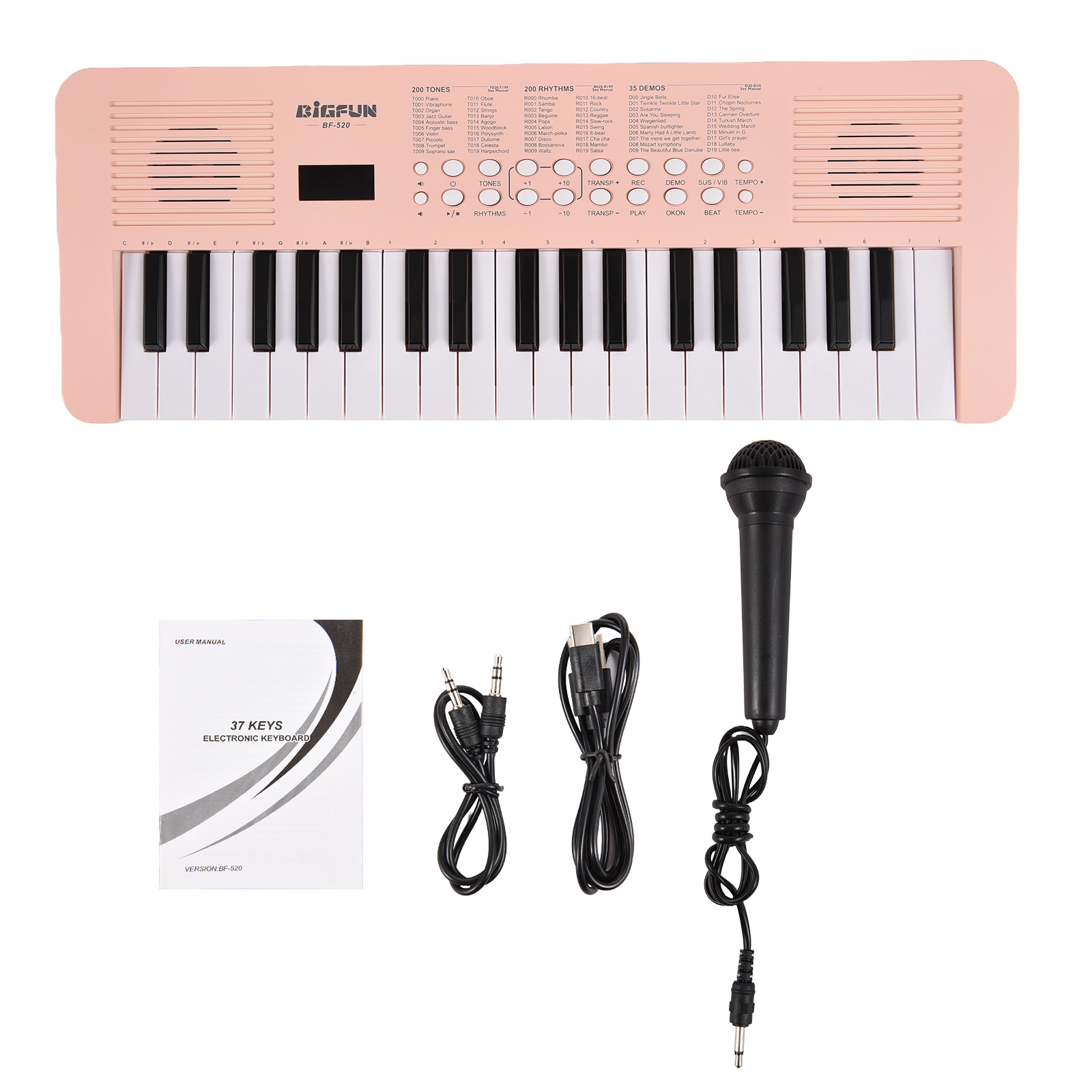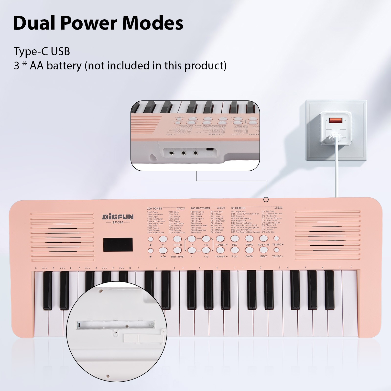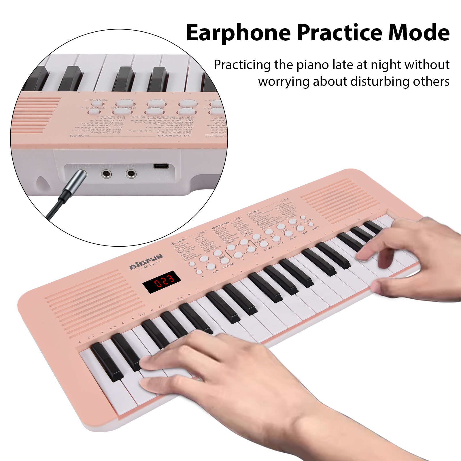 Bigfun 37键 电子琴迷你琴键 便携电子琴 乐器音乐礼物 双供电模式USB供电或电池供电(3*AA电池出货不带) BF-520 粉色 YMI9634P G