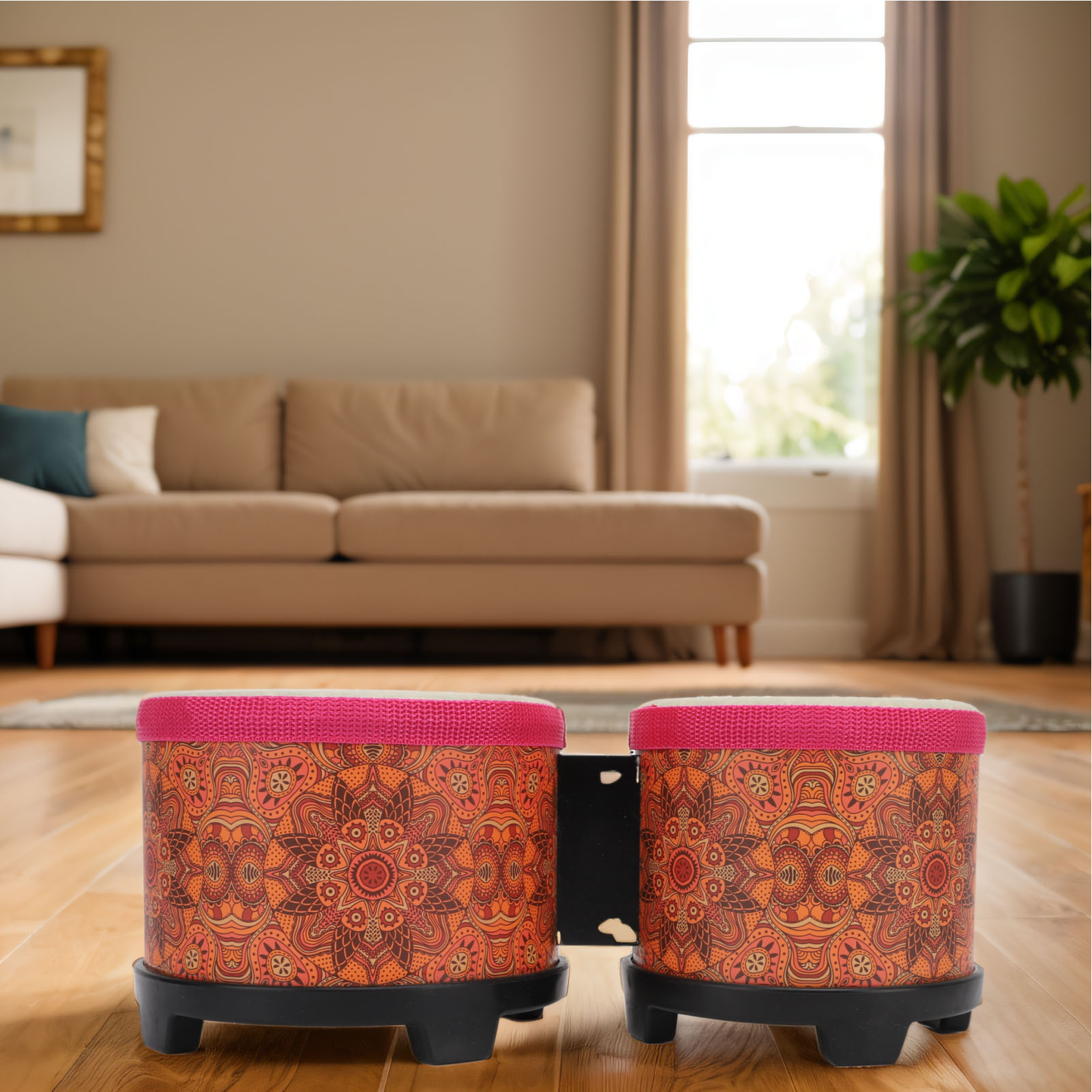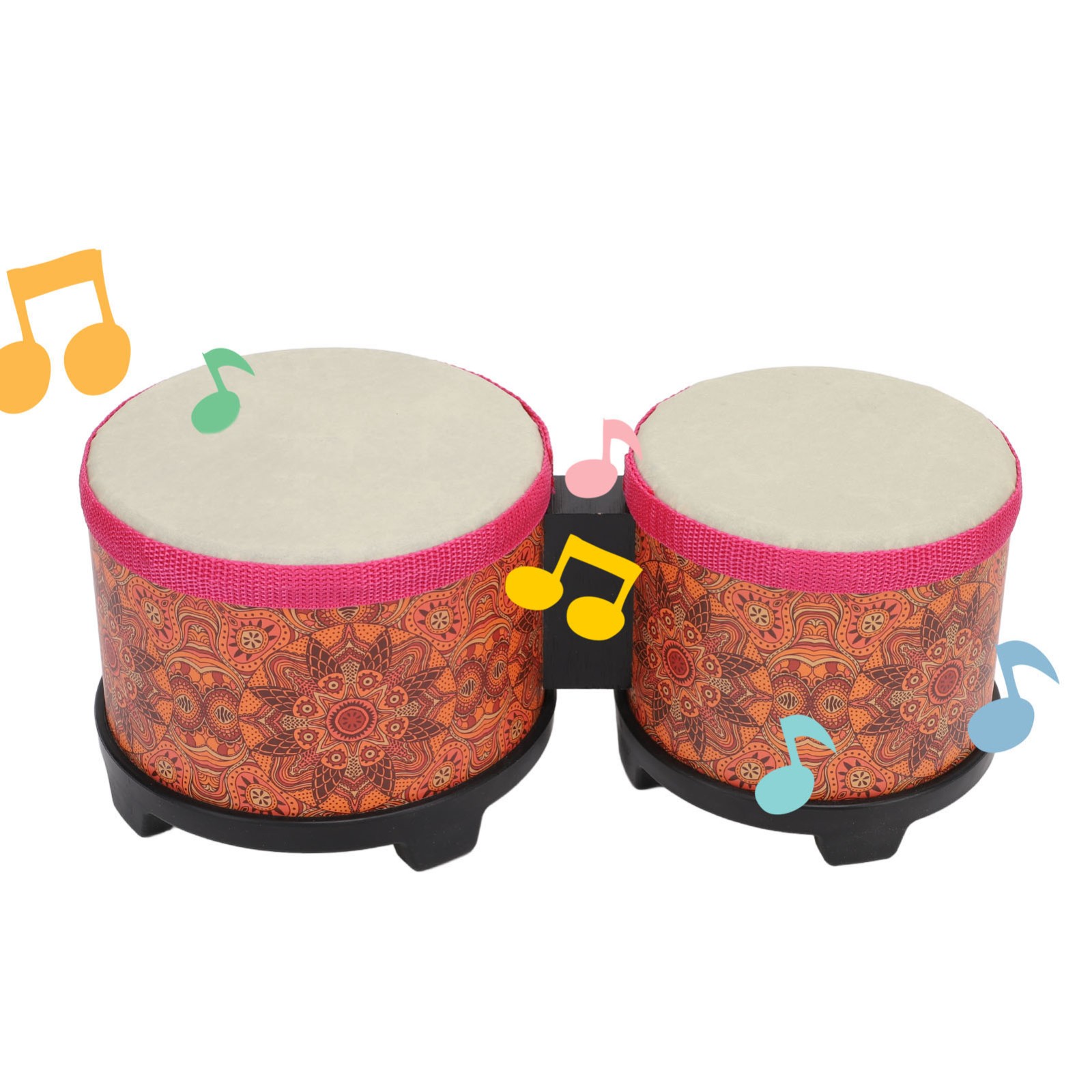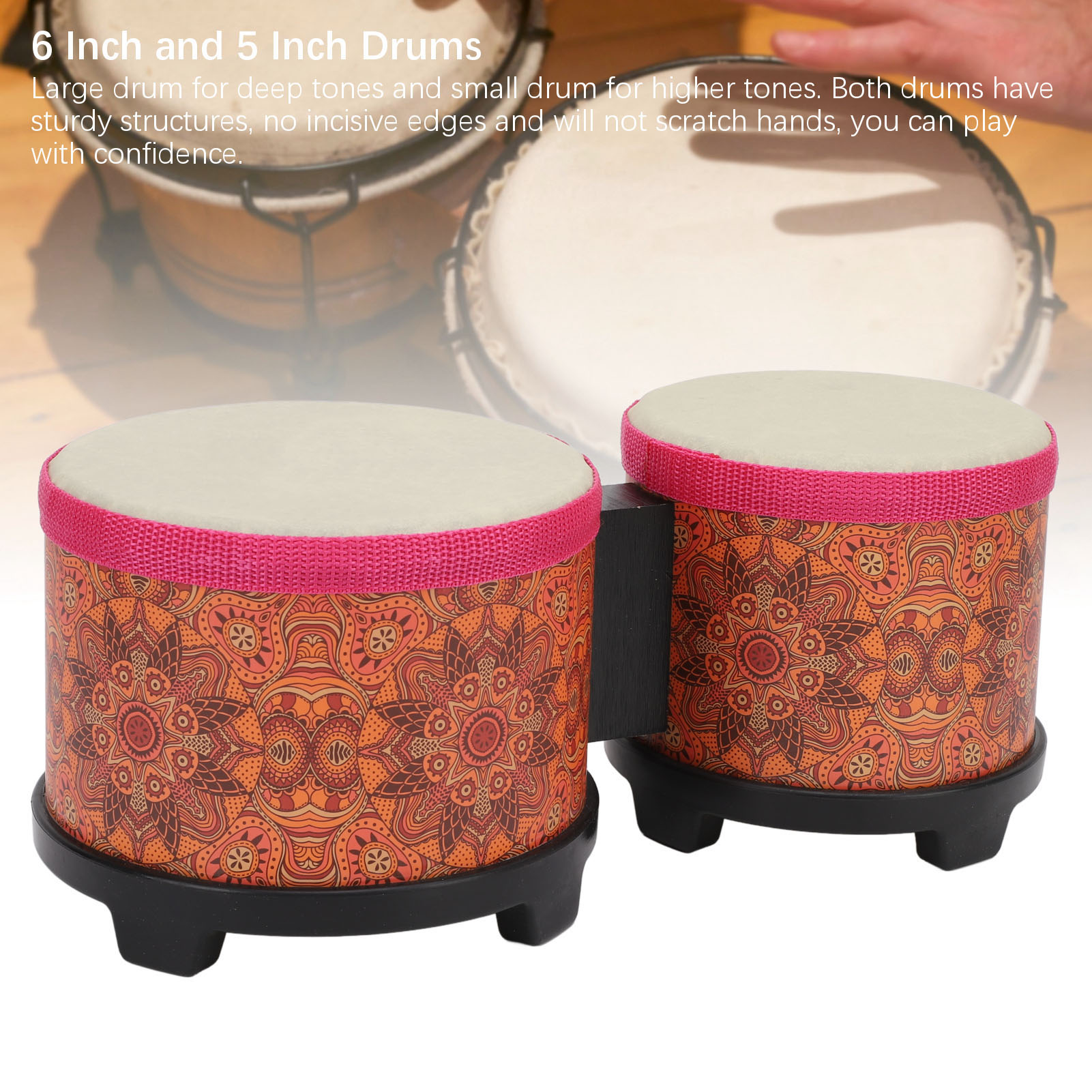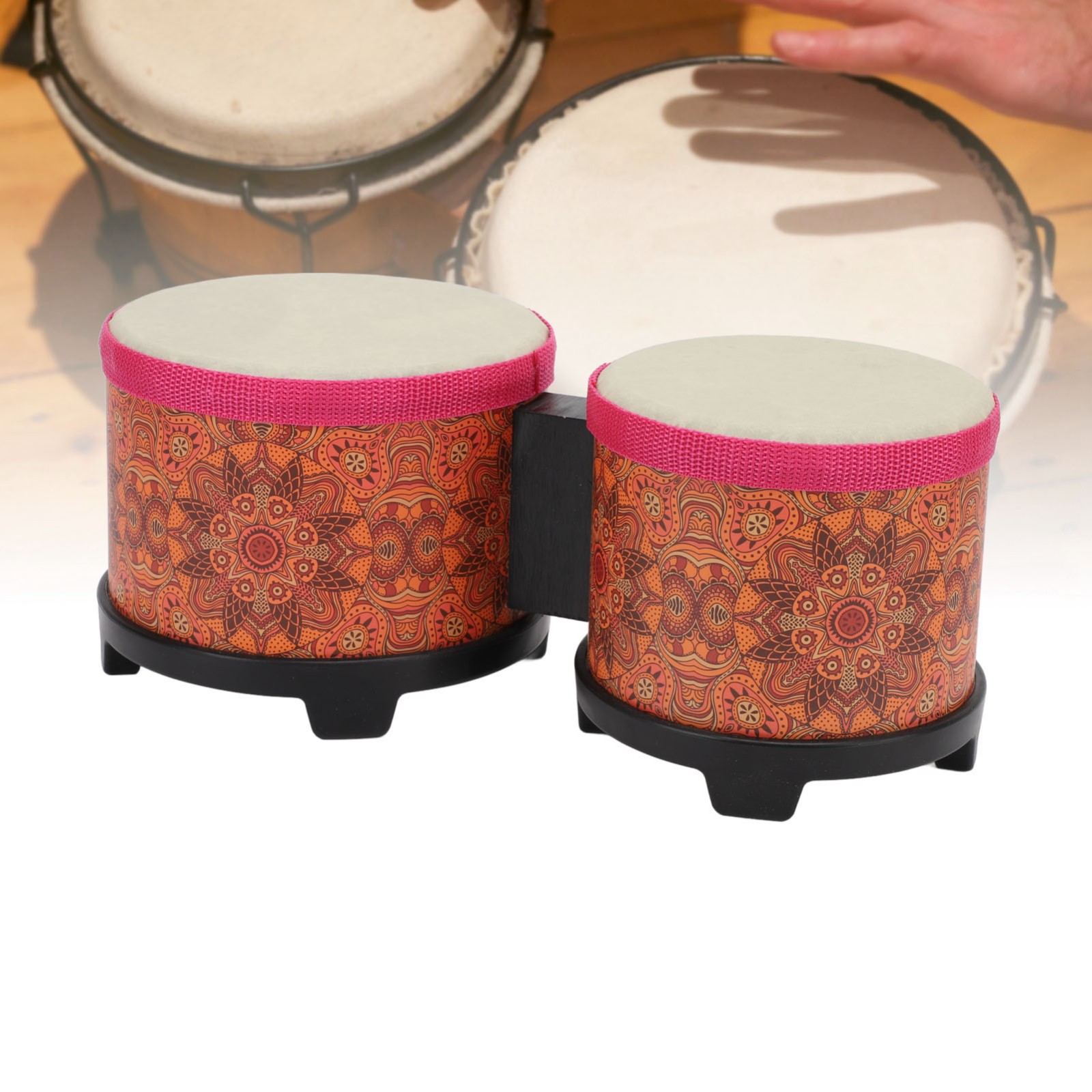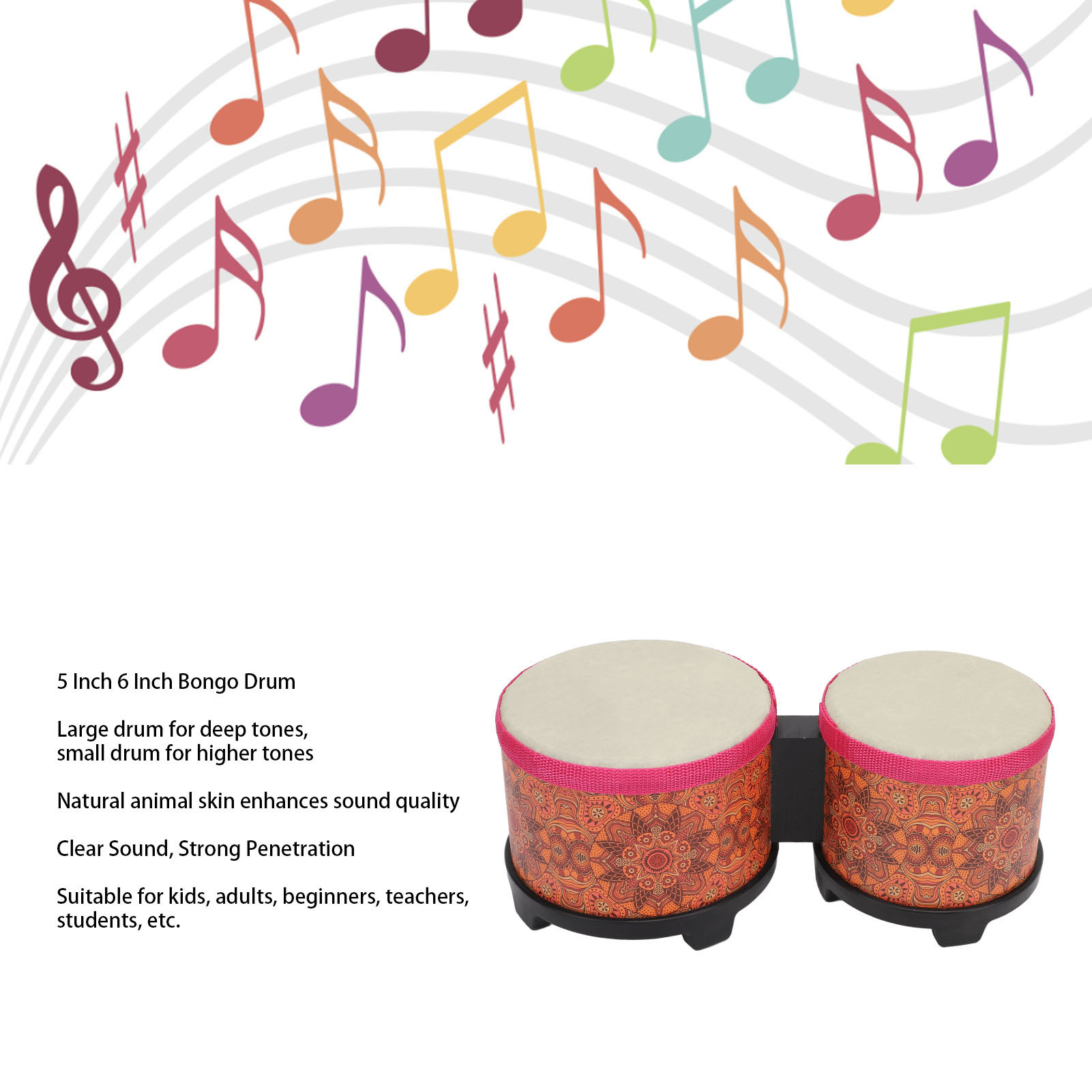 邦戈鼓5英寸6英寸连体鼓儿童成人伴奏羊皮手敲鼓打击乐器 橙色纹理 YM1311240010611 K
