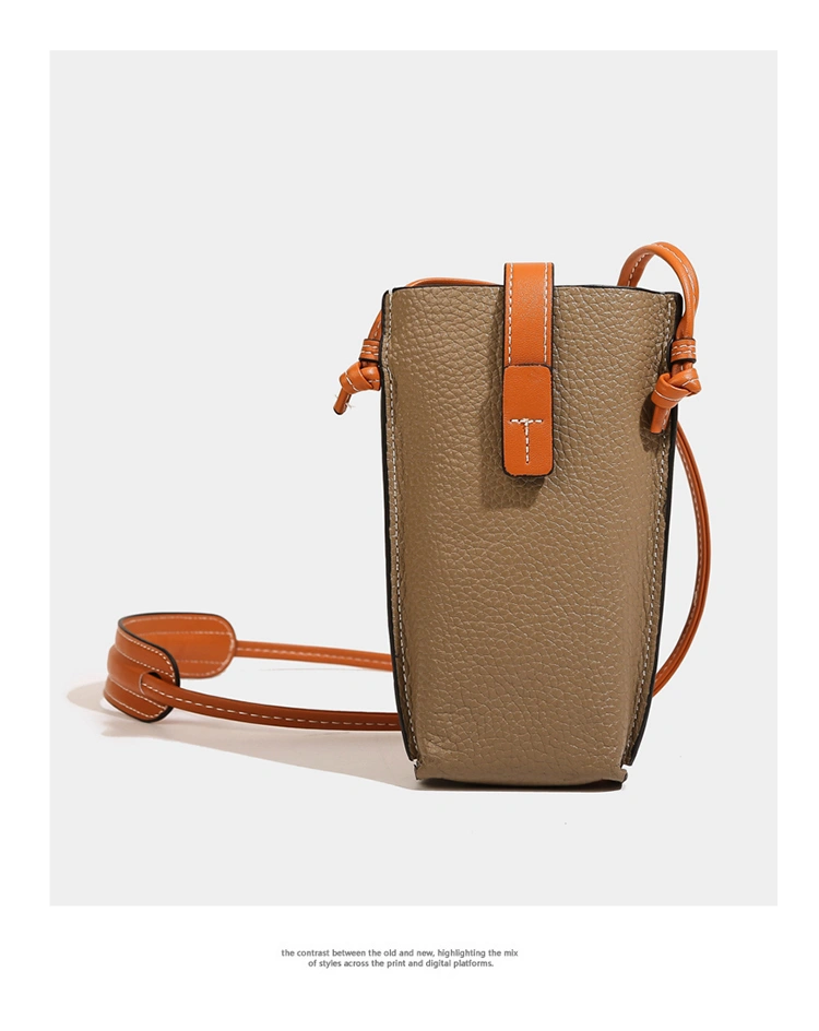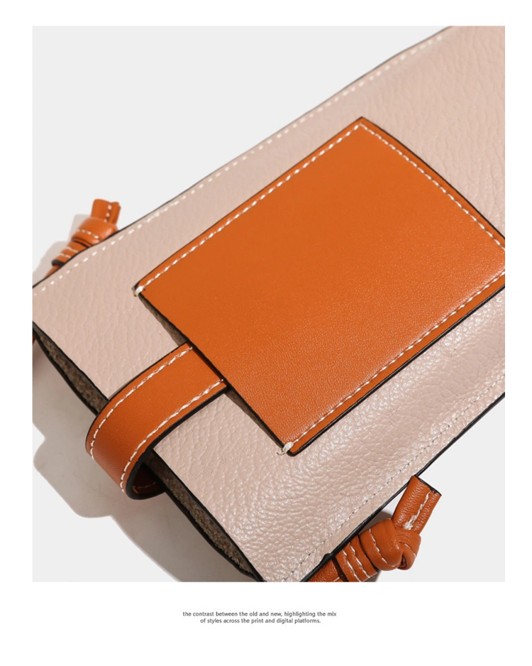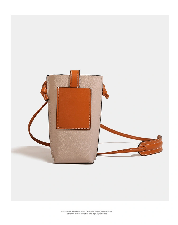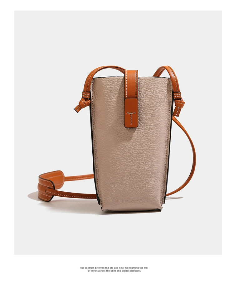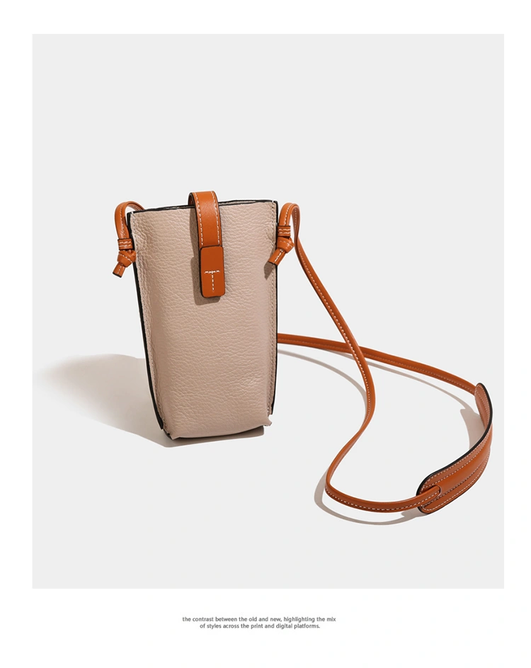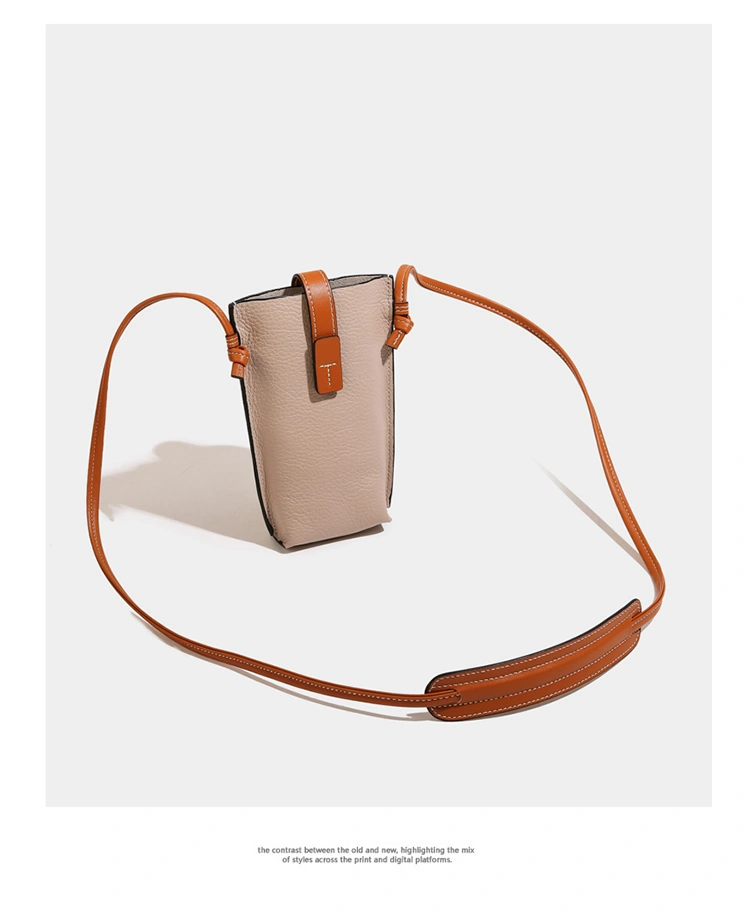 【样品预售】头层牛皮手机包 简约竖款单肩斜挎包 时尚撞色便携女包11*17*3.5cm 9131(mingheng)