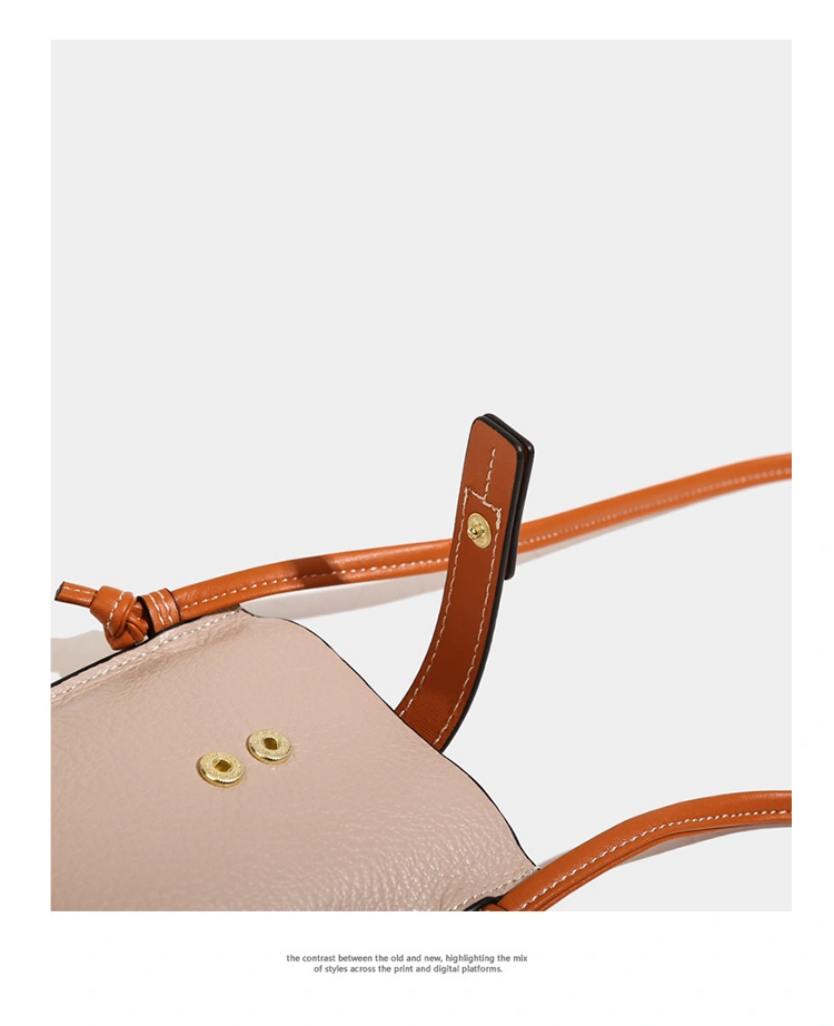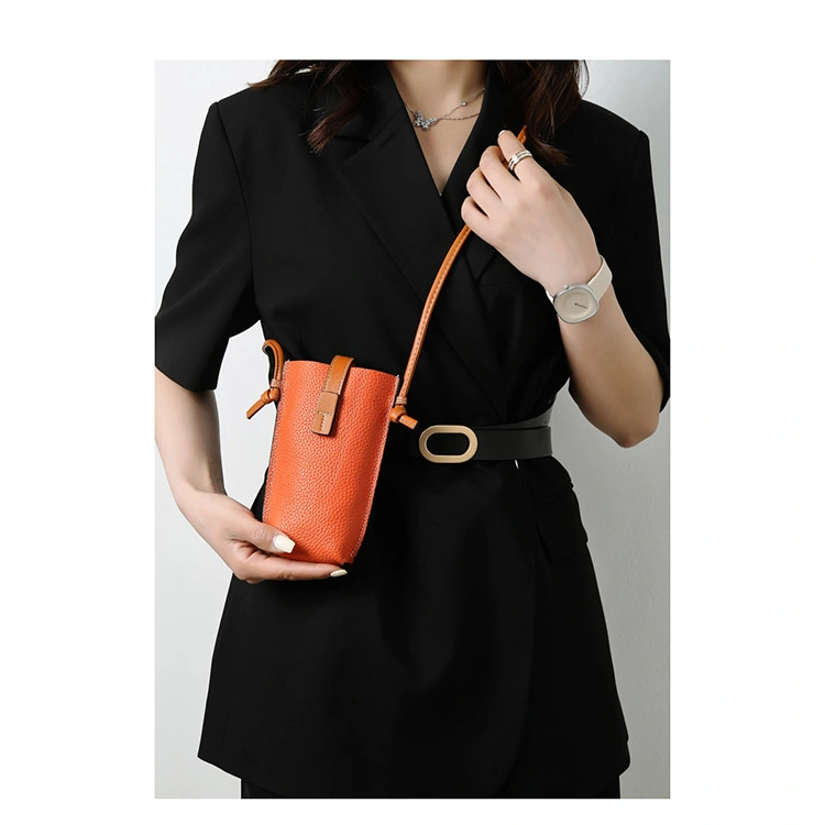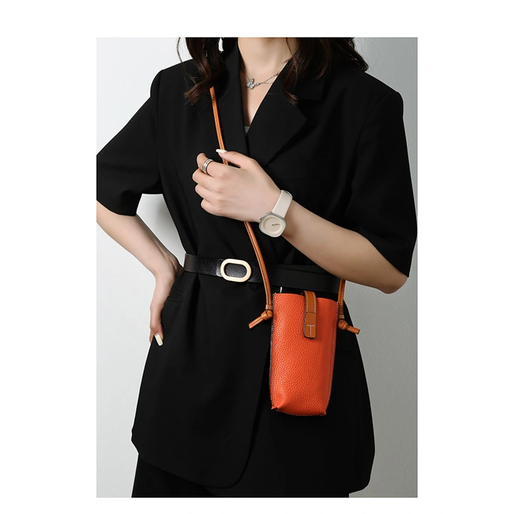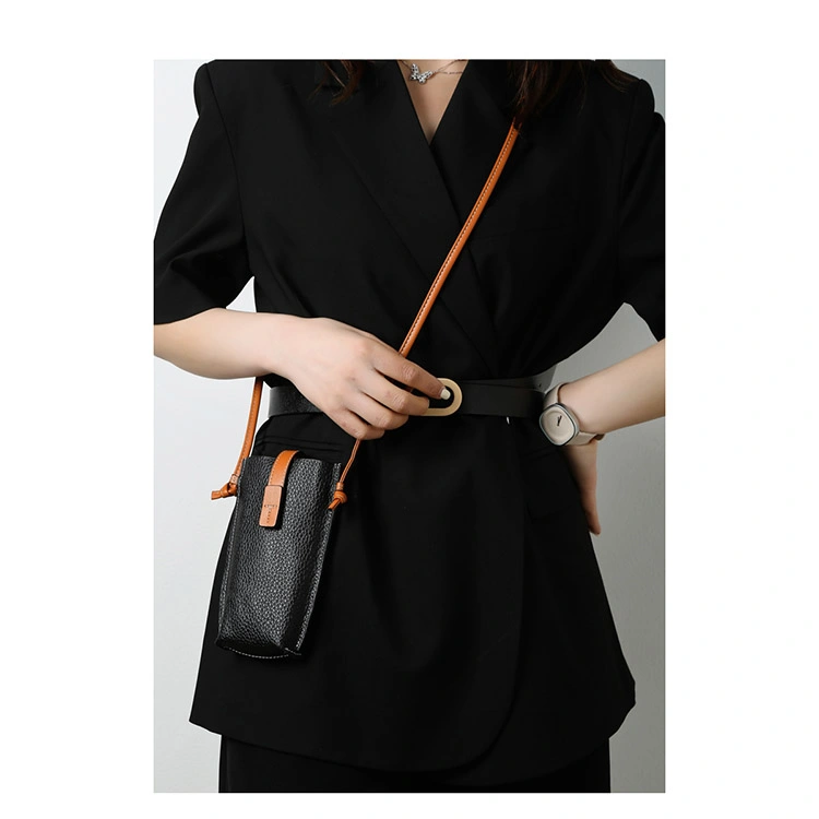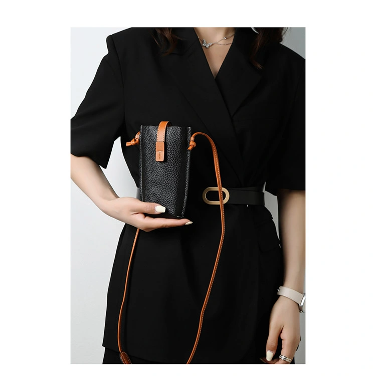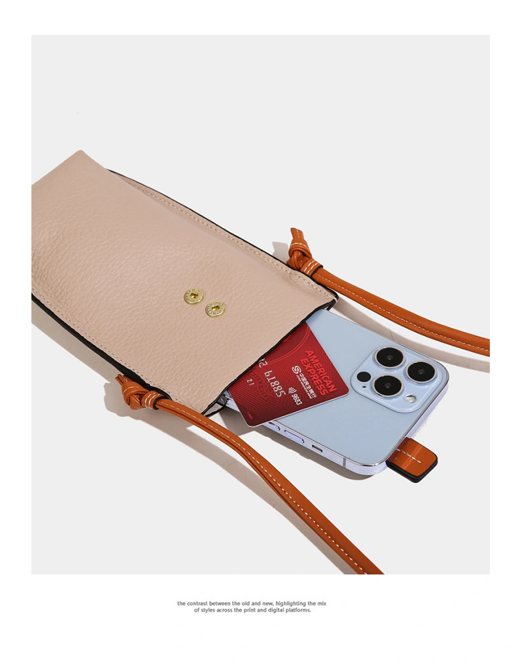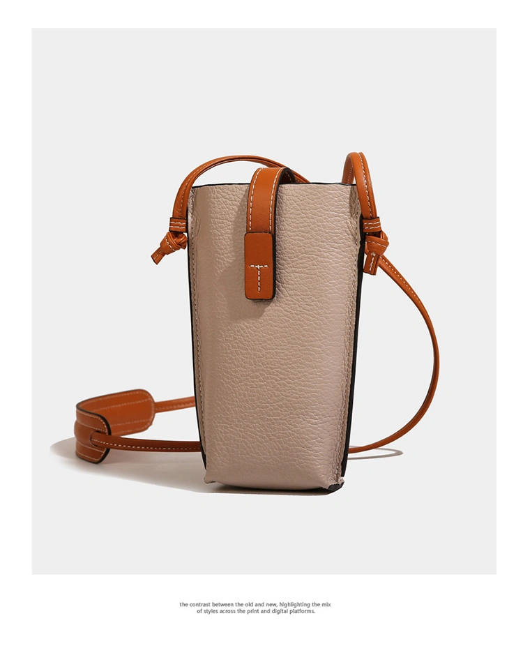 【样品预售】头层牛皮手机包 简约竖款单肩斜挎包 时尚撞色便携女包11*17*3.5cm 9131(mingheng)