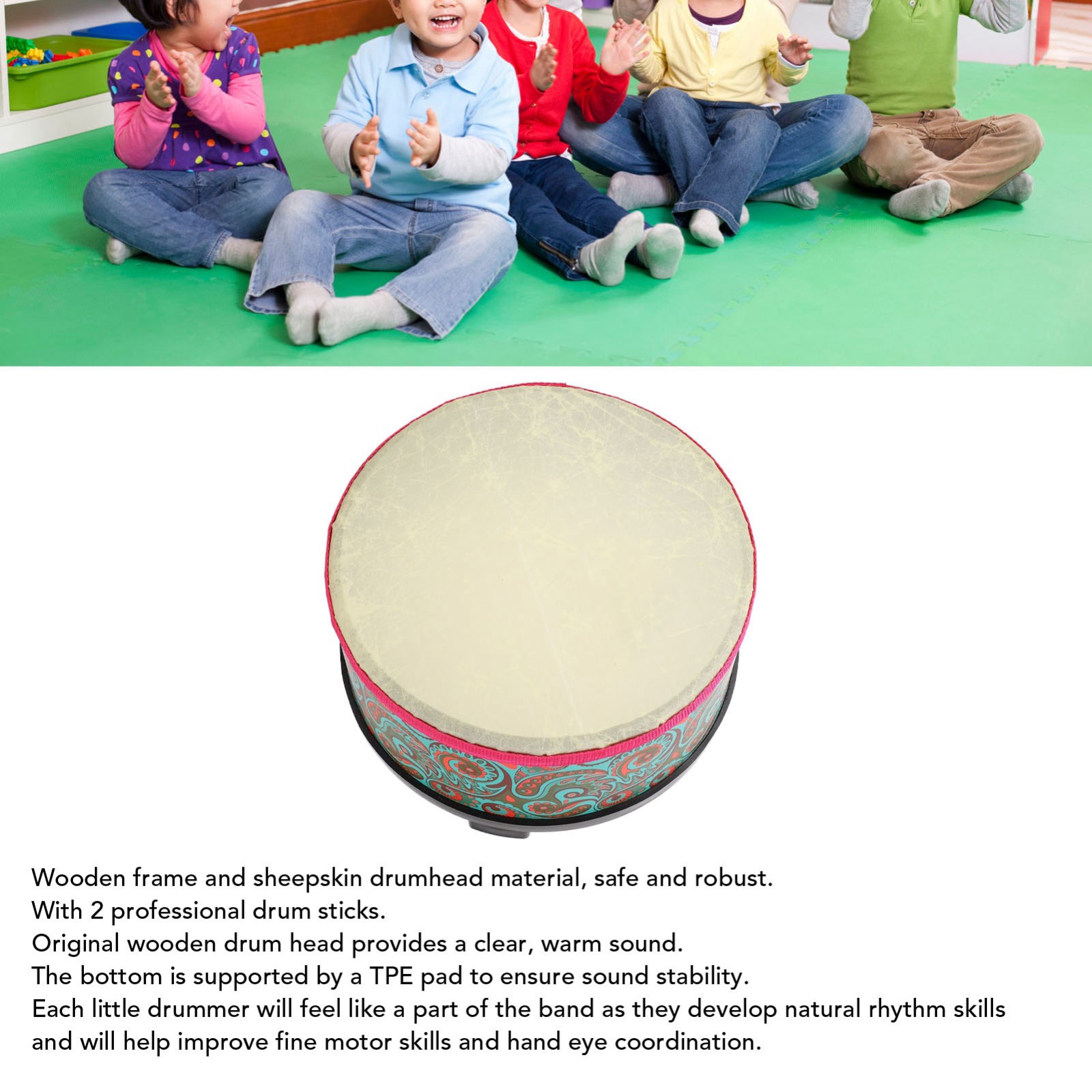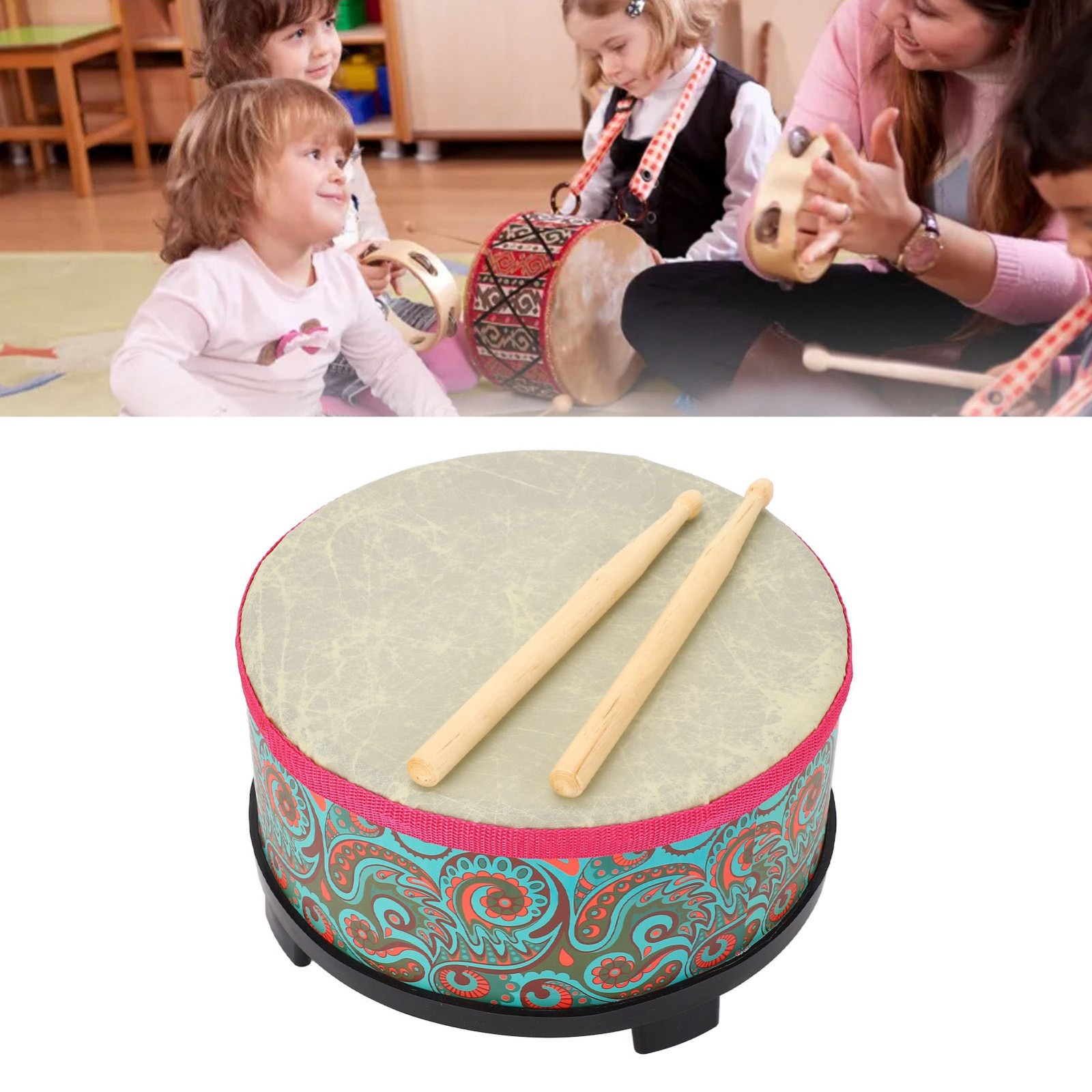 奥尔夫小鼓敲鼓手鼓儿童打击乐器幼儿园早教教具地鼓 蓝色纹理 YM 1311240010412 K