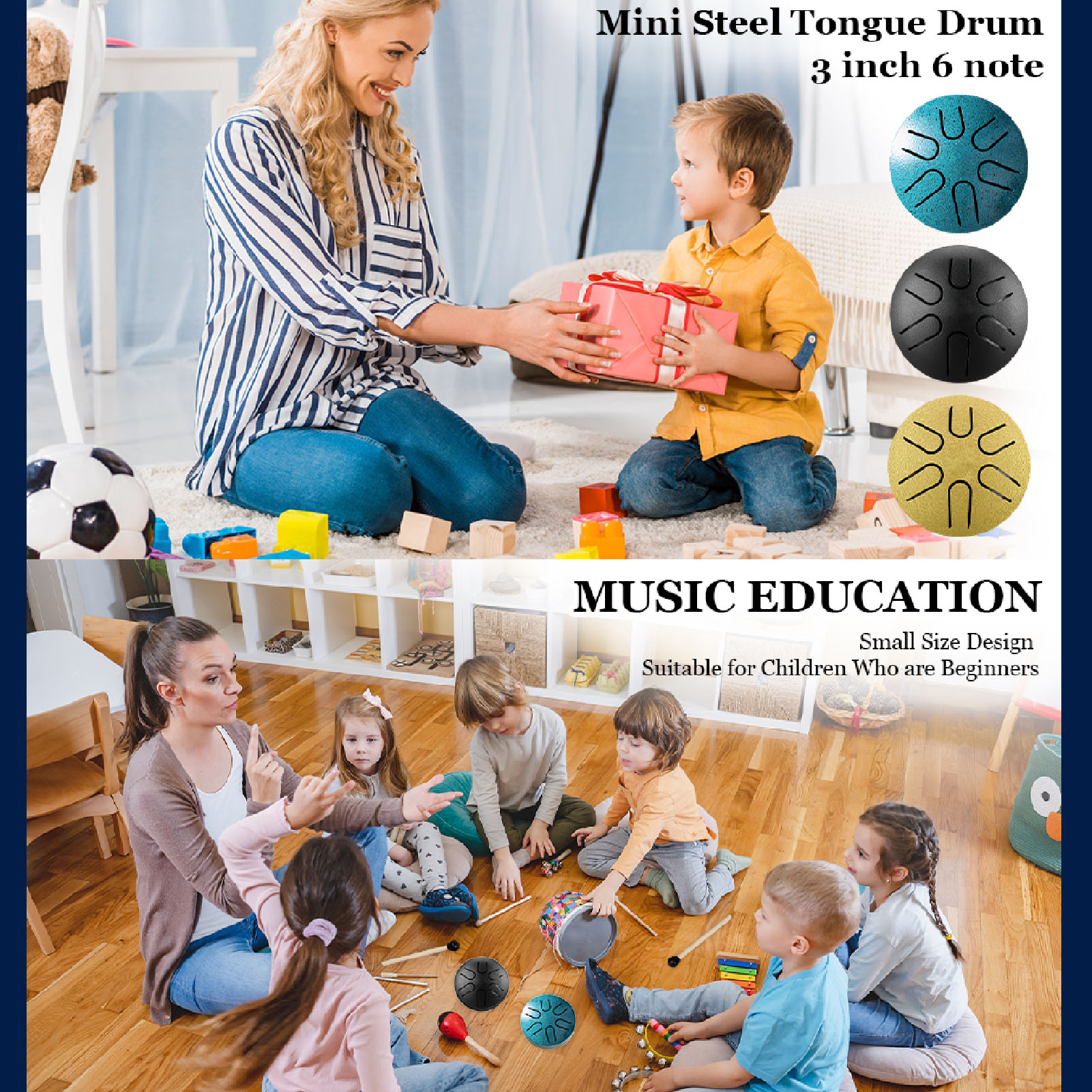 迷你空灵鼓3英寸6音钢舌鼓儿童打击乐器 绿色 YM 1311240009711 K