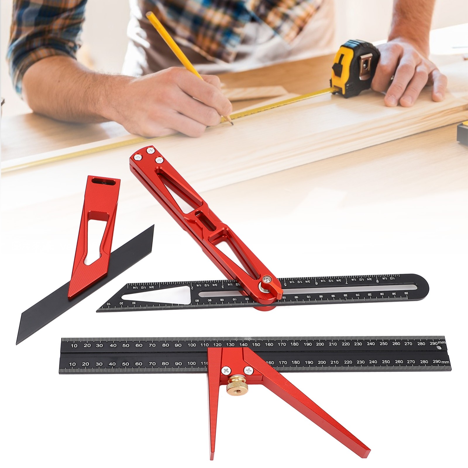 【三件套】折叠尺 多功能组合角尺 45°/90°多角度划线尺 用于角度的测量和绘画 YM K