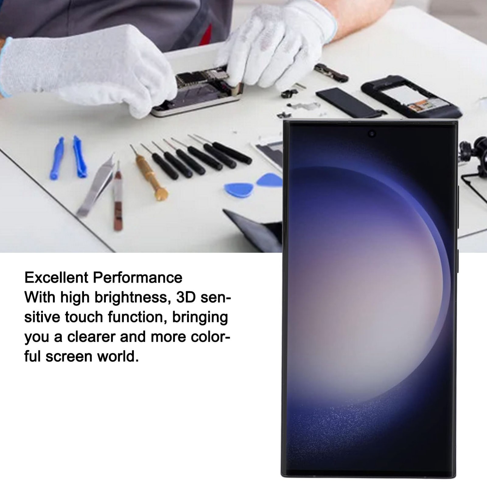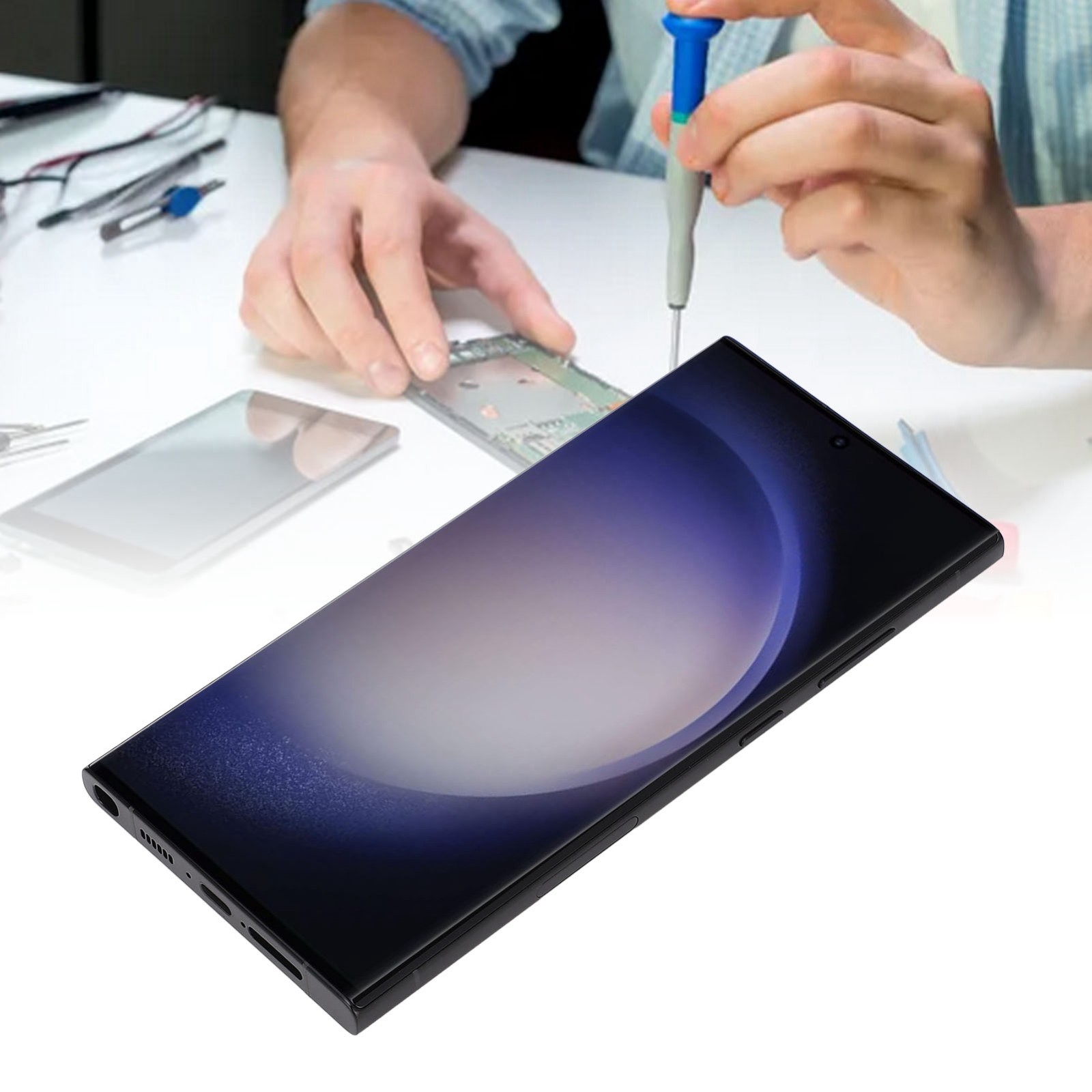 Samsung Galaxy S23 Ultra OLED液晶屏幕 显示屏 数字化仪组件替换件 带指纹适用于Galaxy S23 Ultra 5G SM-S918B 带框架和技术维修工具套件 电光黑 YM2611240089712 G