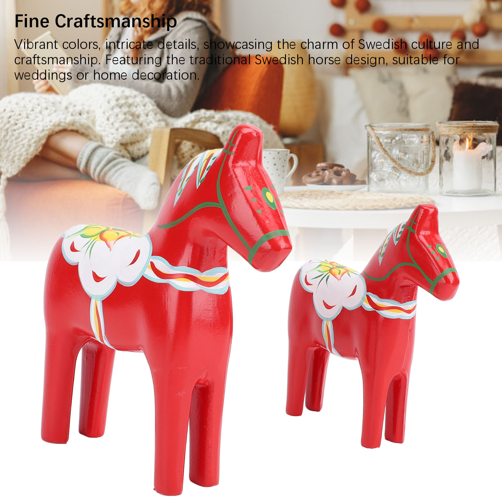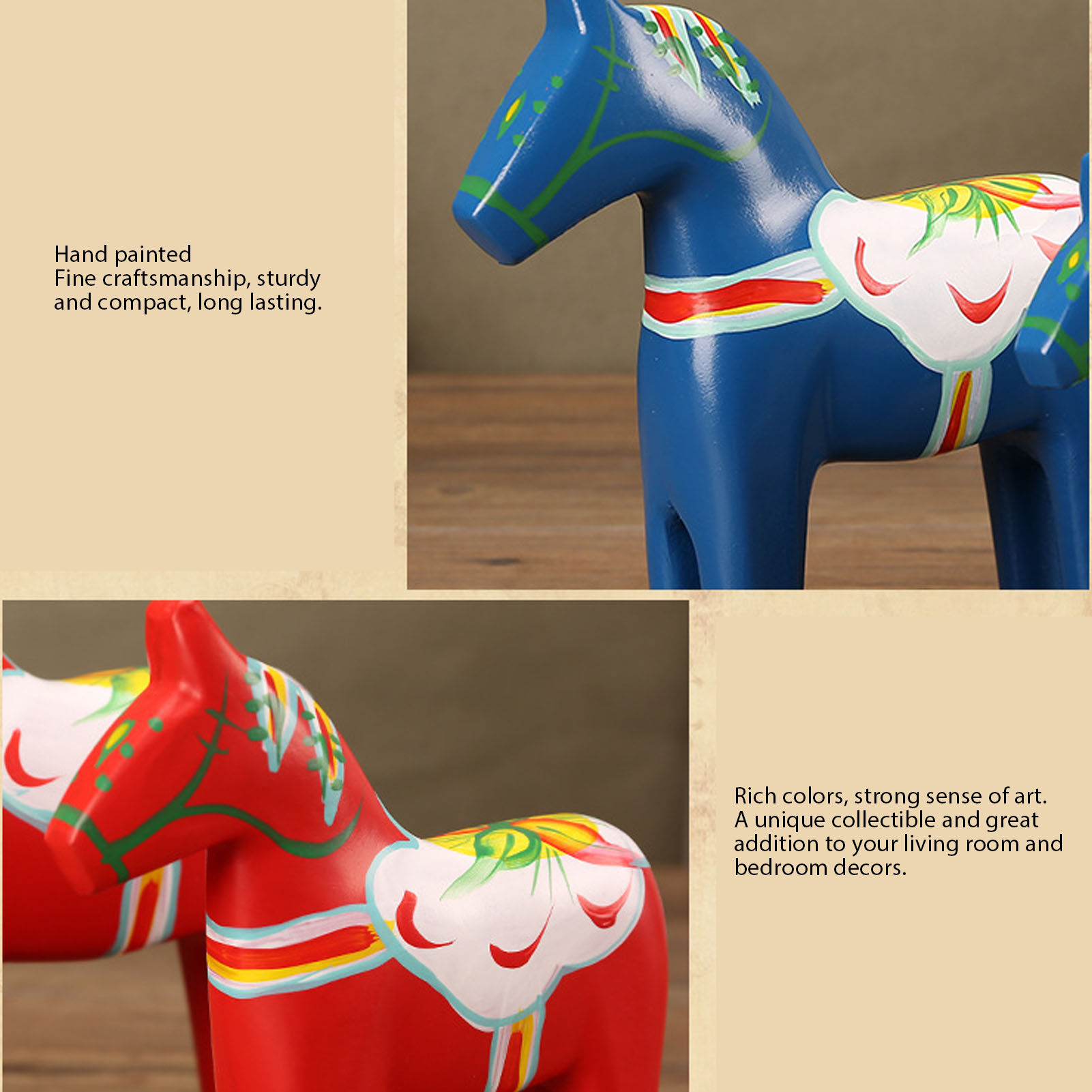 达拉彩绘木马摆件 创意木质手绘工艺品动物婚庆用品 7203A-06-红色 YM 3115240105211 G