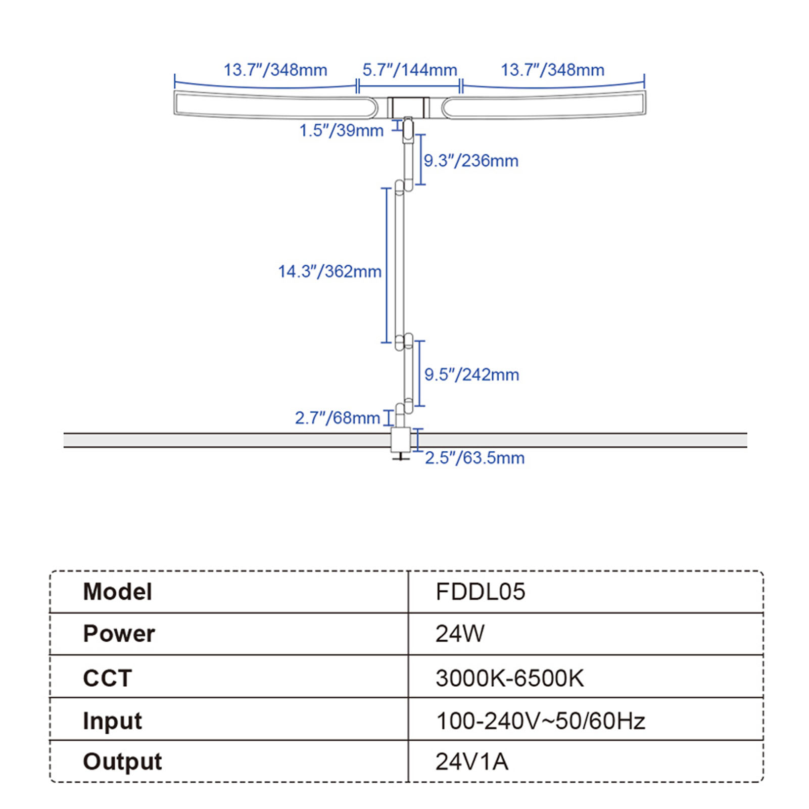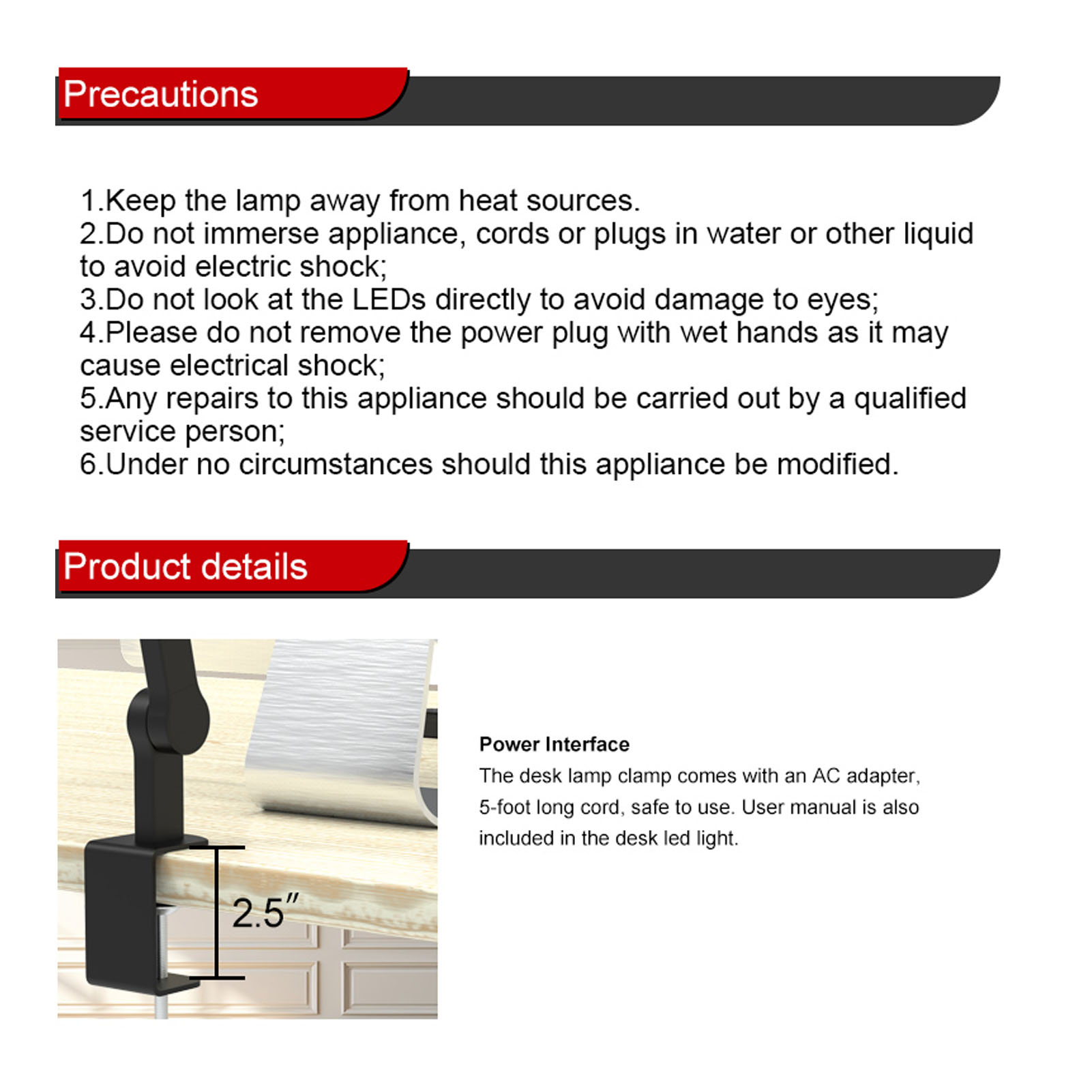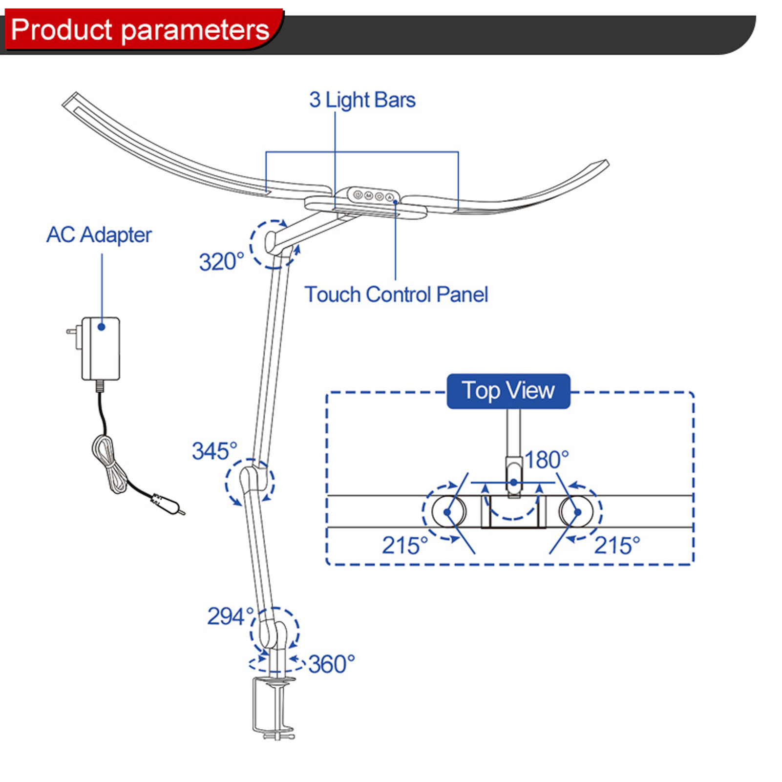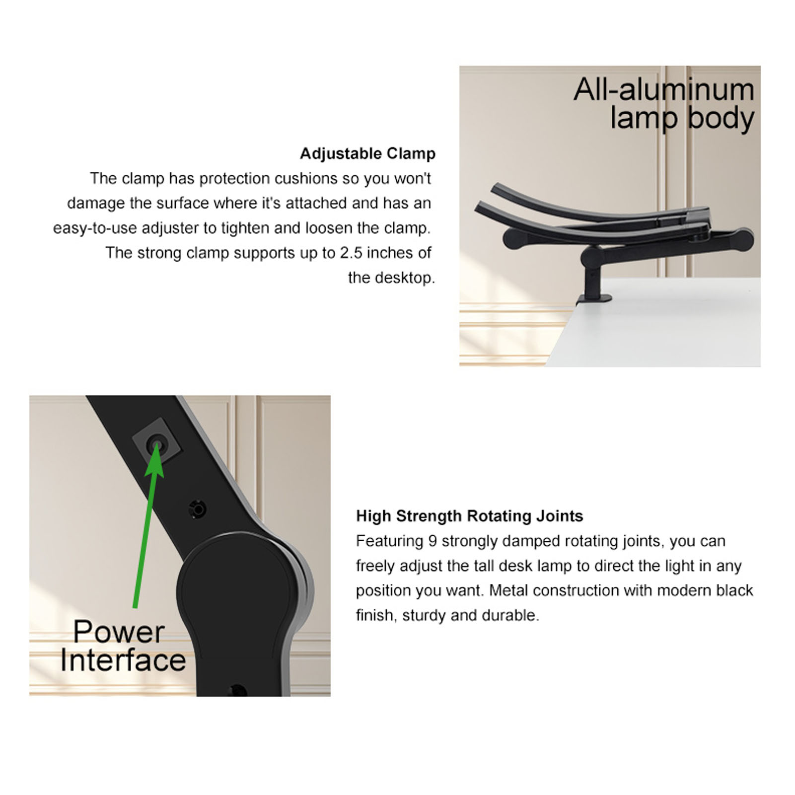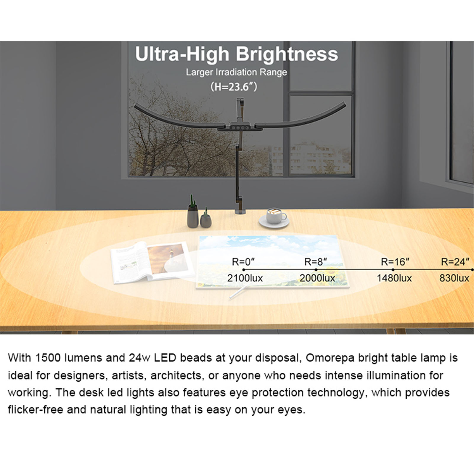 桌面学习阅读台灯 专业工程师建筑师模型师台灯 多角度自由调节灯光支架 3000-6500K无极调光 可智能自适应调光 100-240V 欧规 YM 3119240118012 G