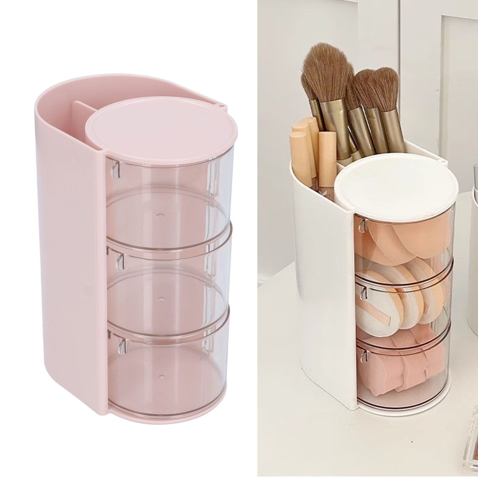 粉扑收纳盒桌面透明防尘旋转收纳盒 粉色 YM 3117240278311 G