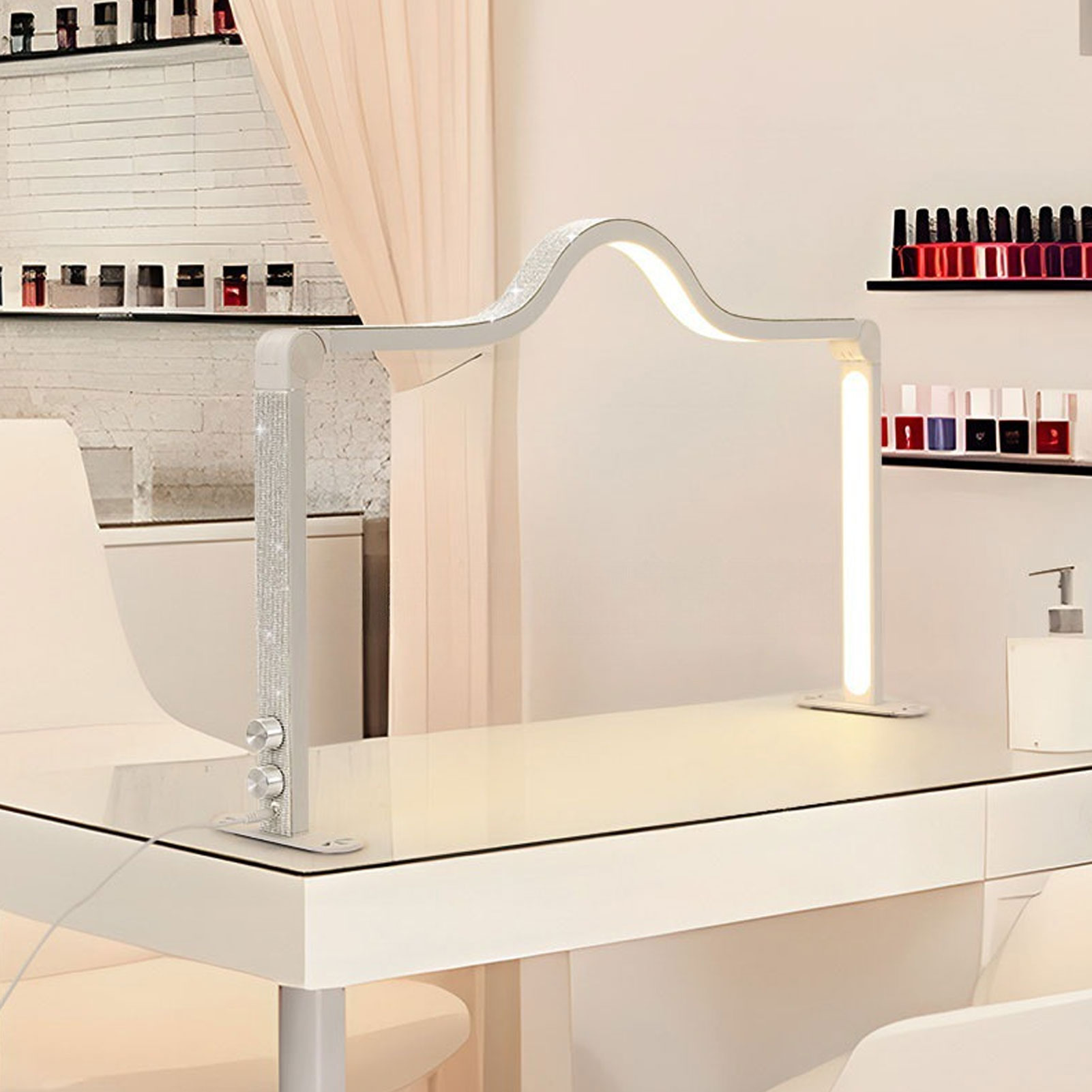 (白色贴钻款)美甲台灯 美甲补光灯 可折叠美甲灯 美甲店美容灯 弧形桌面无影灯(100-240V) 欧规 YM 1414240063011 K