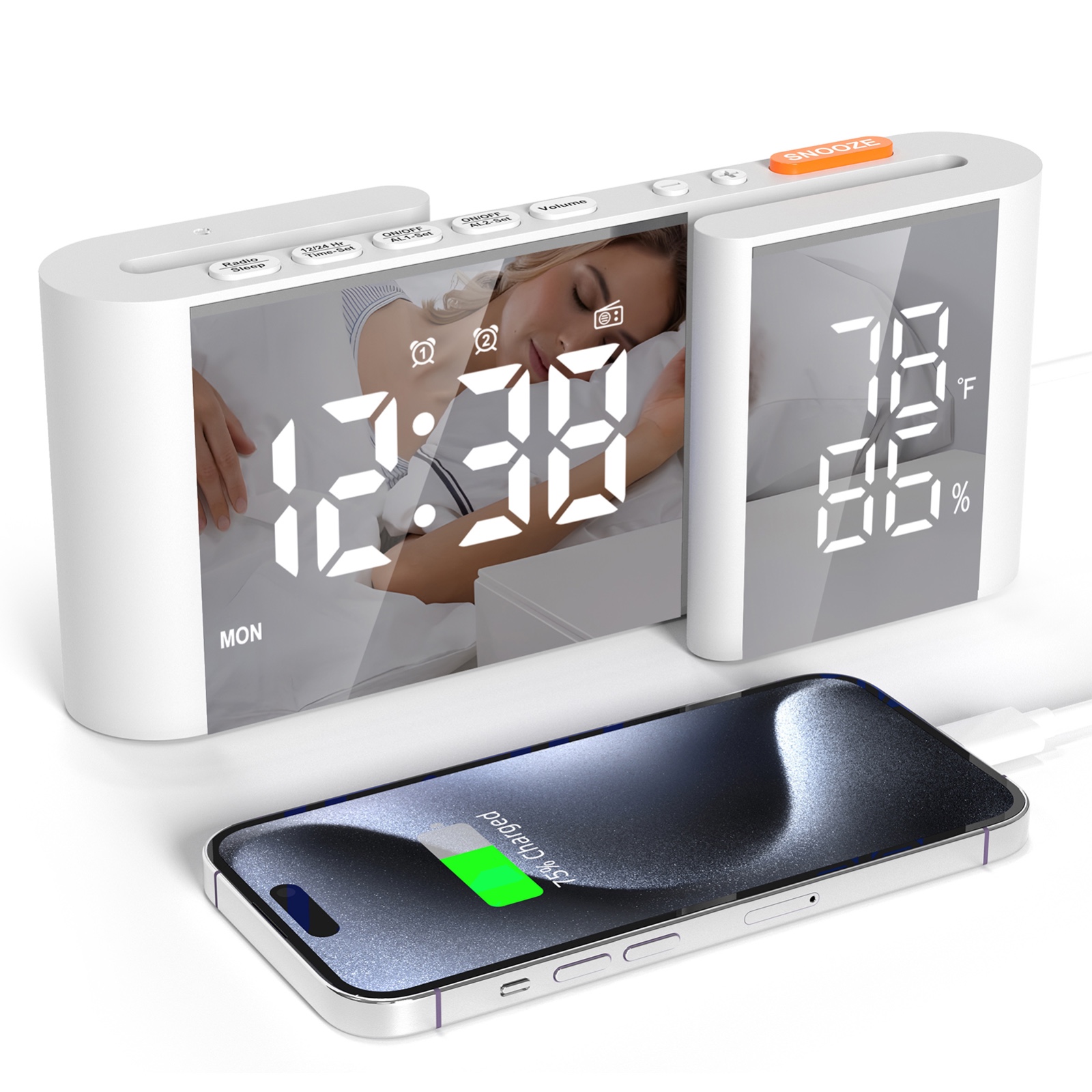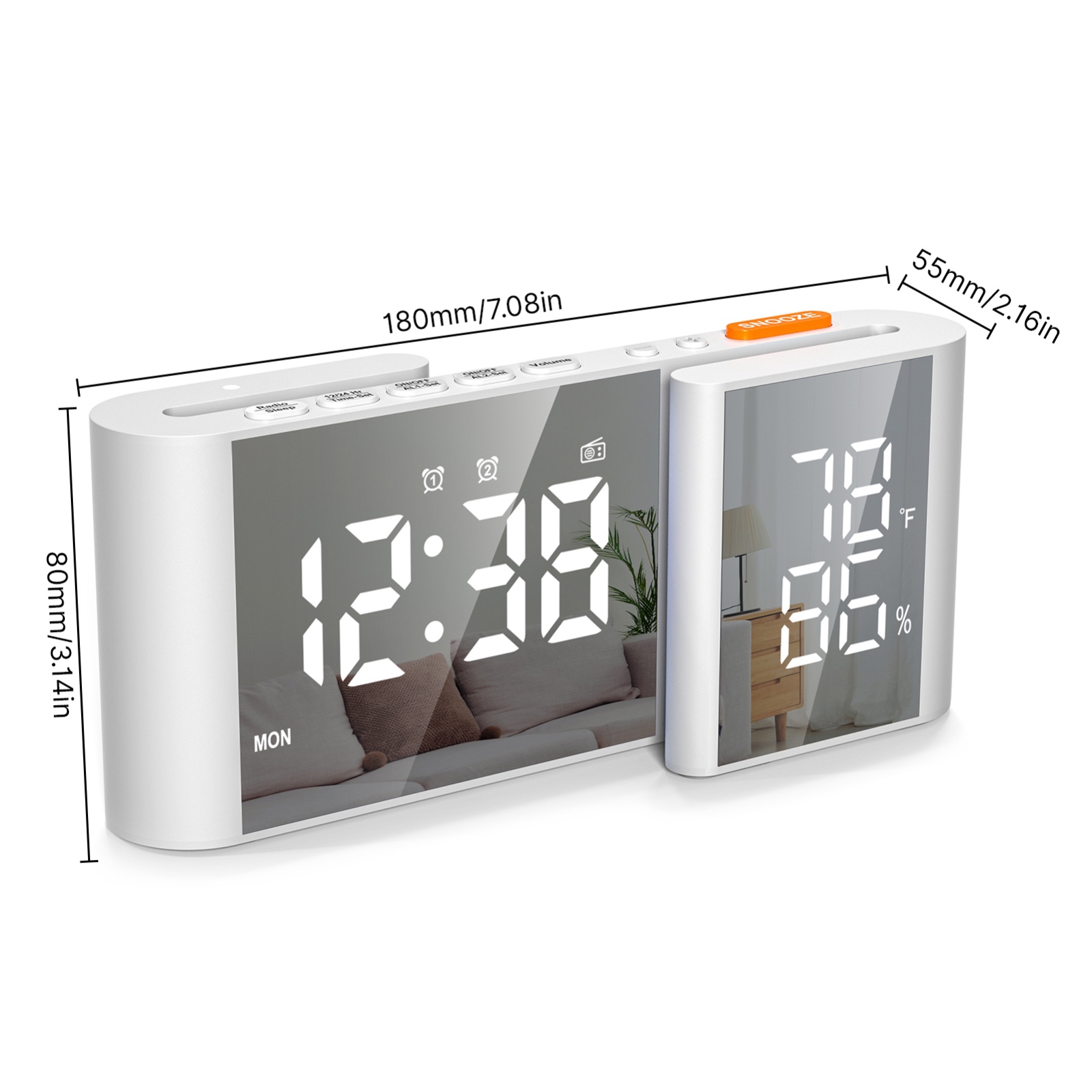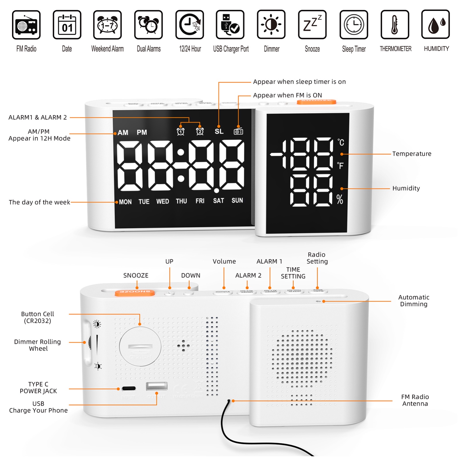 EN8837-A 新款S形双屏LED调光温湿度电子钟 收音机闹钟万年历台钟 带无极调光,双闹钟,收音机可存储70频道 简约高档现代装饰 适用于书桌墙壁客厅卧室宿舍学校 YM H48980W K