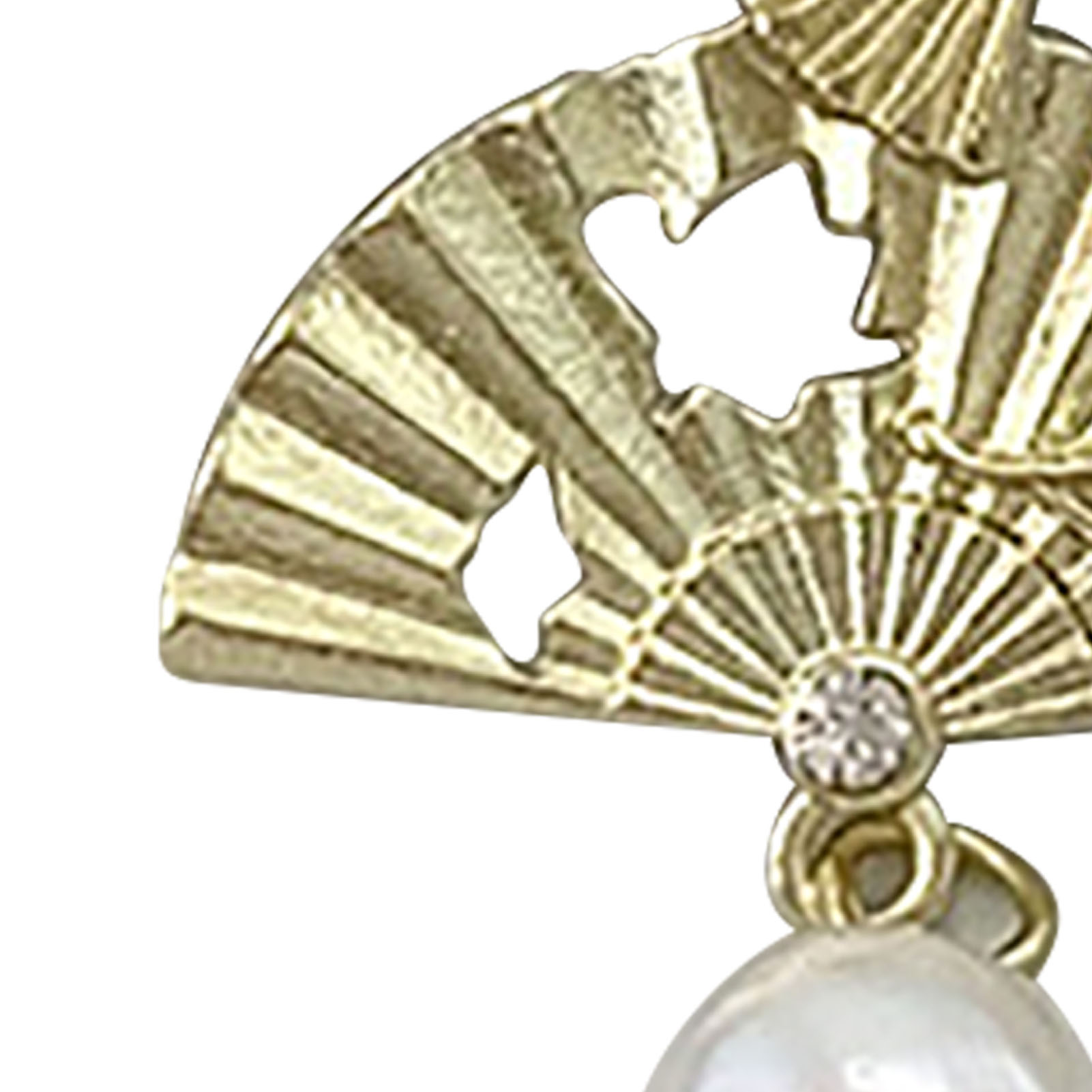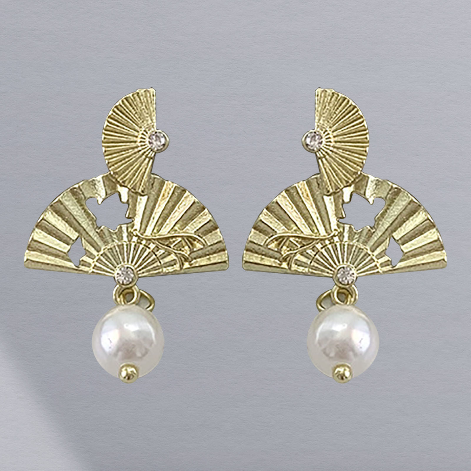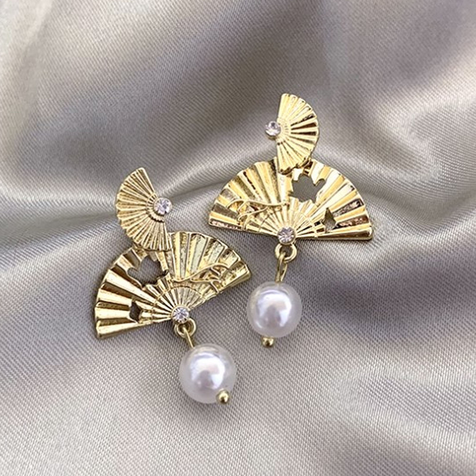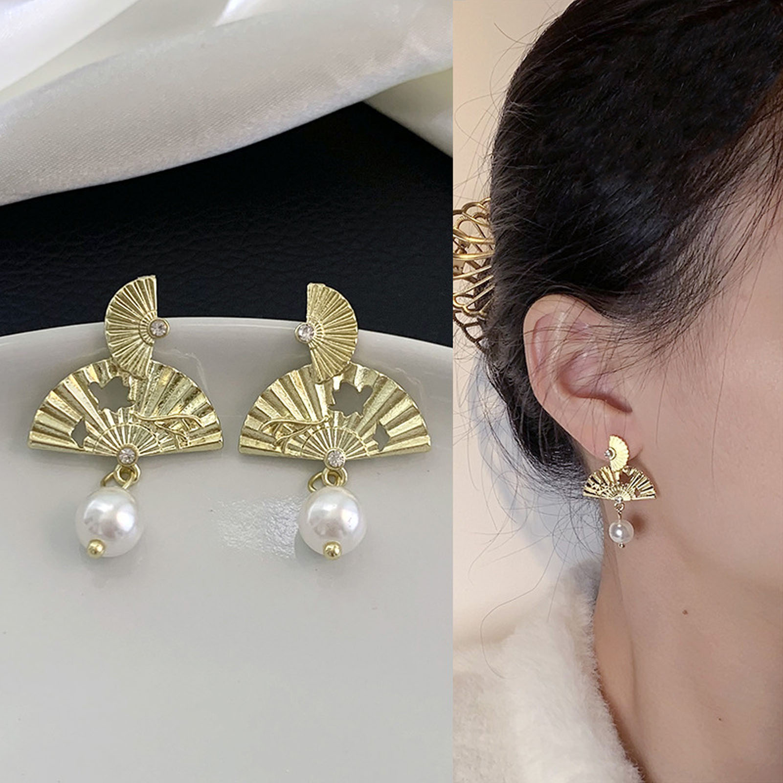 新中式耳环925银针高级感复古中国风耳钉国潮轻奢耳坠古风耳饰女(银针-扇面 珍珠)YM 1511230067311 K