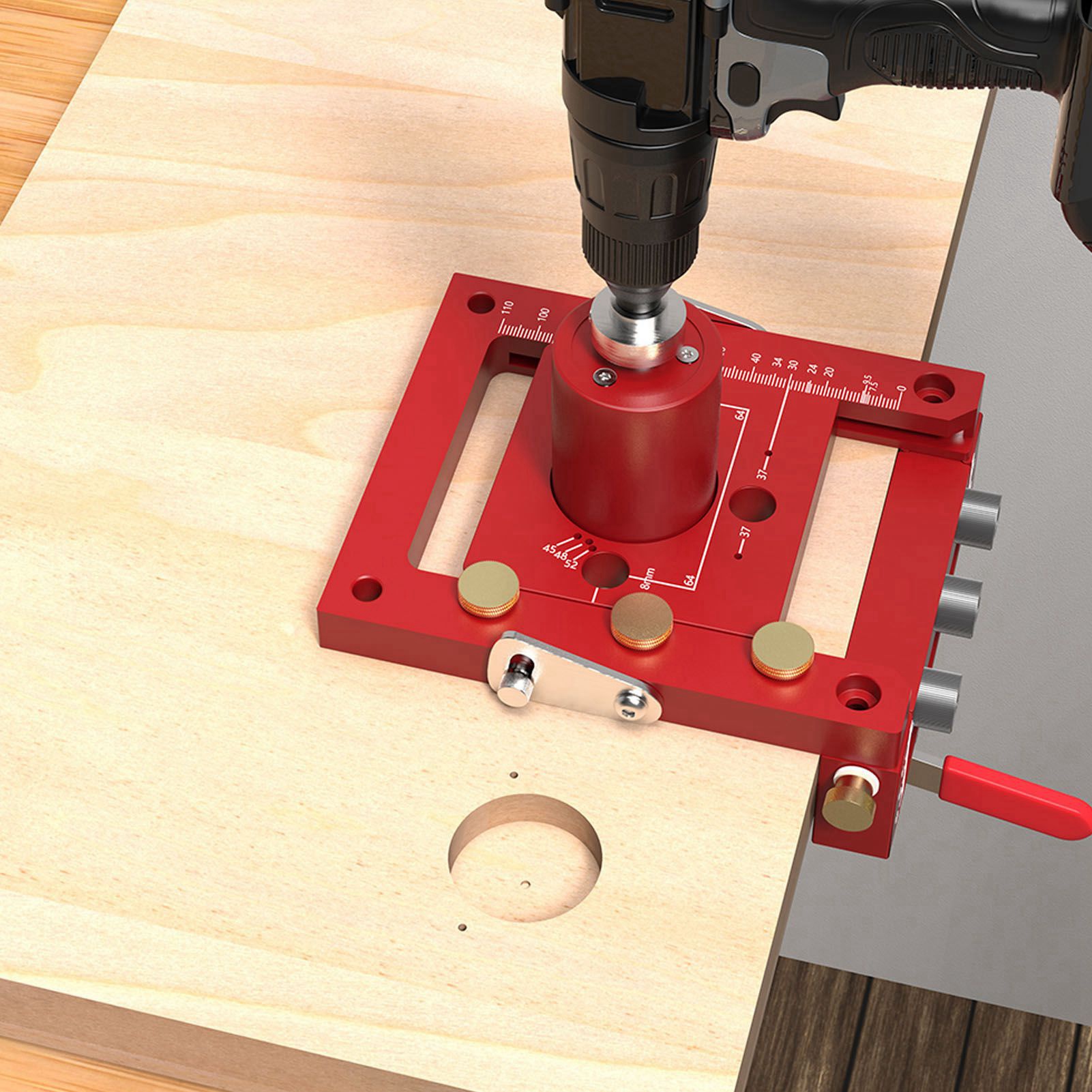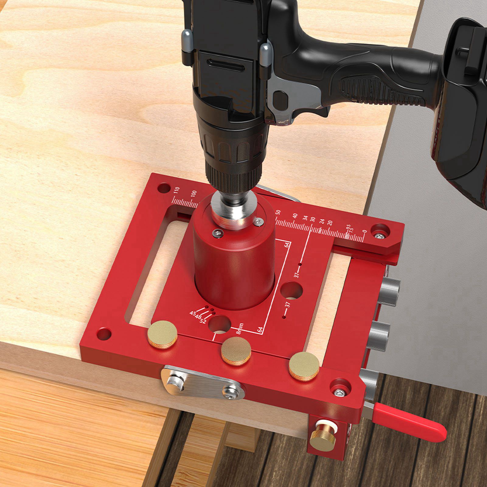 3合1木工铰链打孔器 可调开孔边距衣橱柜门板合页钻孔定位安装工具 货架夹具和橱柜五金夹具工具 YM 1011240173711 G