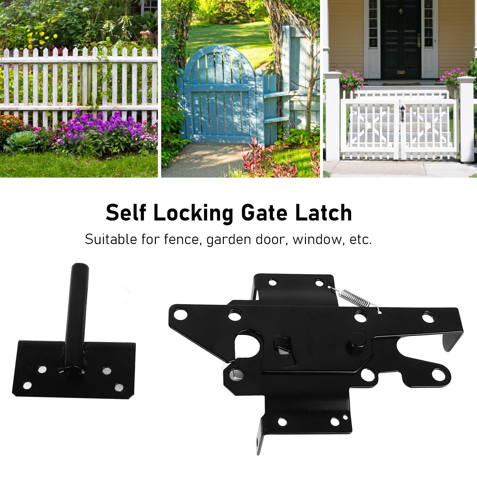 自锁门闩 Self Locking Gate Latch 栅栏围栏门窗五金插销(黑色不锈钢喷塑)YM 1015240006211 K