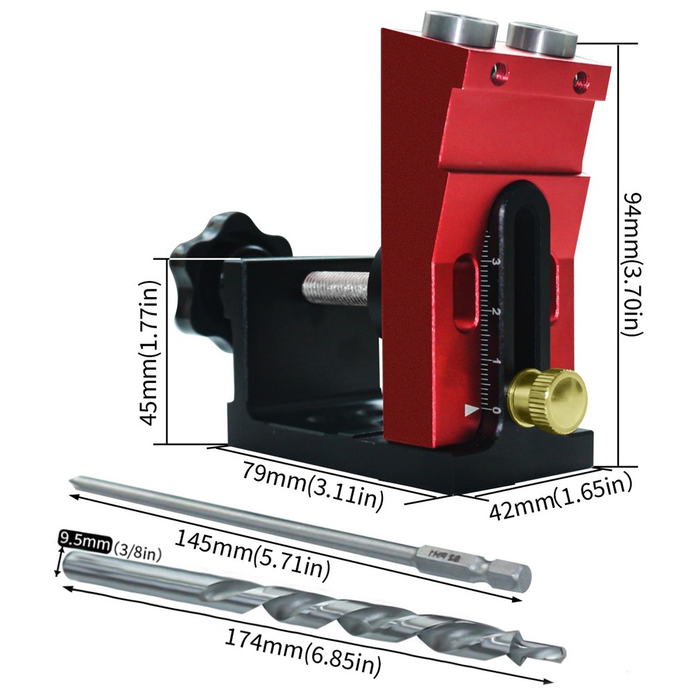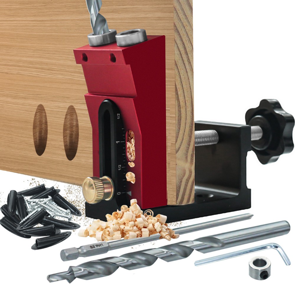 木工打孔器 可调节斜孔定位器 木板打孔 五金工具 柜子板式铝合金钻孔辅助工具 红色 YM ET00528RB K