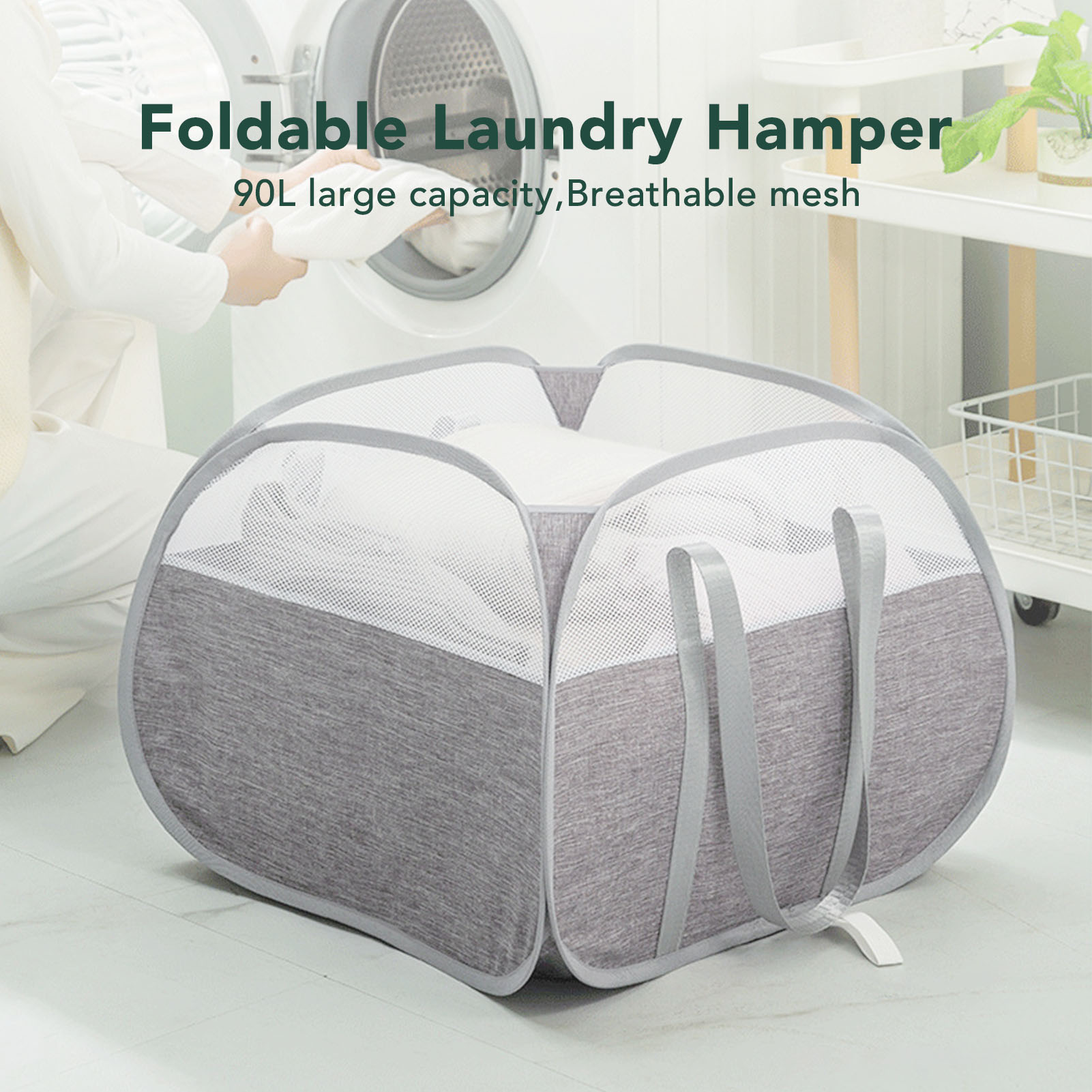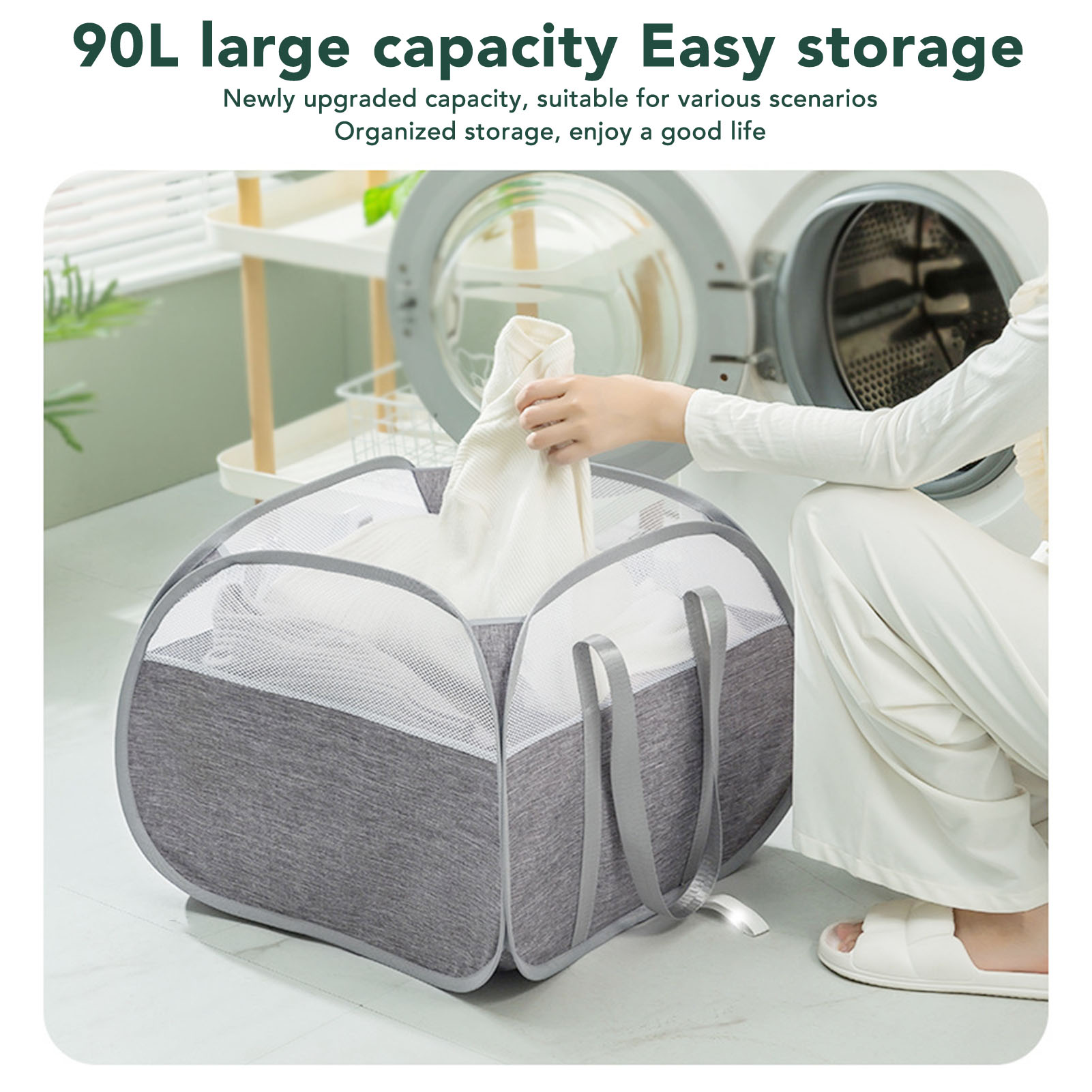 90L可折叠脏衣篓加厚牛津布脏衣篮卧室大容量收纳篮宿舍收纳筐洗衣篮 灰色 YM 3117240259012 K