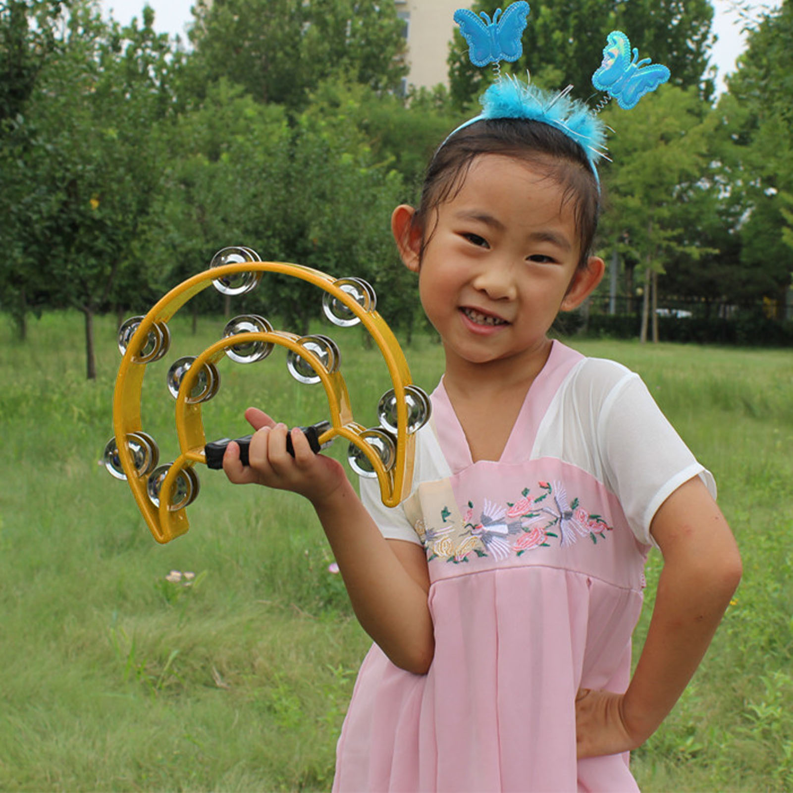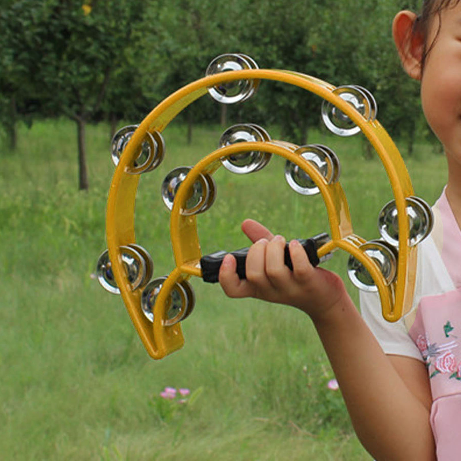 手摇铃打击乐器铃鼓酒吧娱乐助威大号塑料铃圈 双排花鼓圈黄色 YM 1311230038511 K