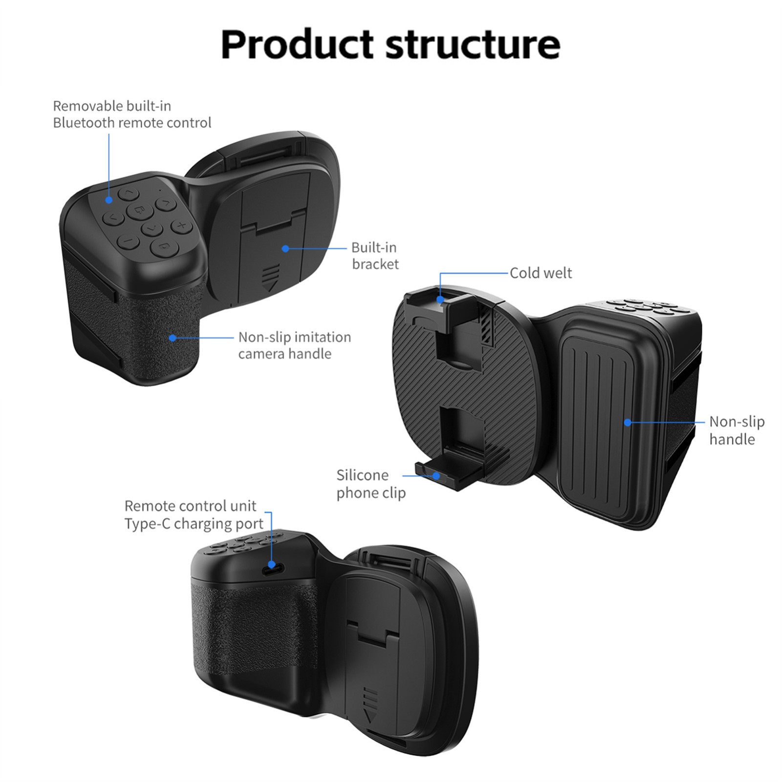 K01 手机助拍器 带冷靴座 可拆卸蓝牙遥控 手机夹可旋转(带内置锂电池出货)黑色 YM D13696 G