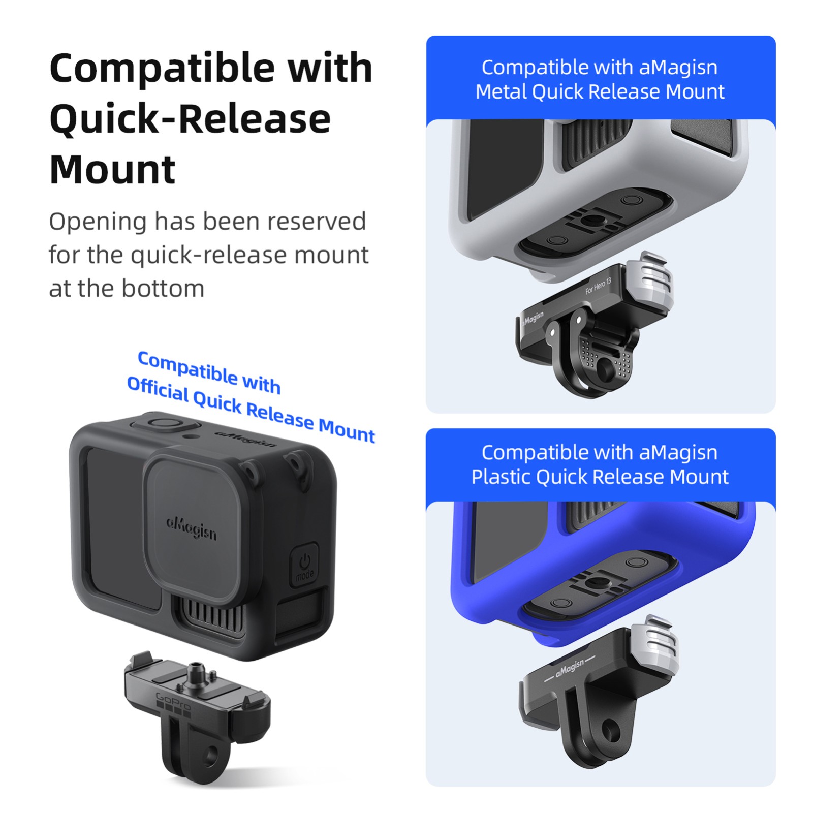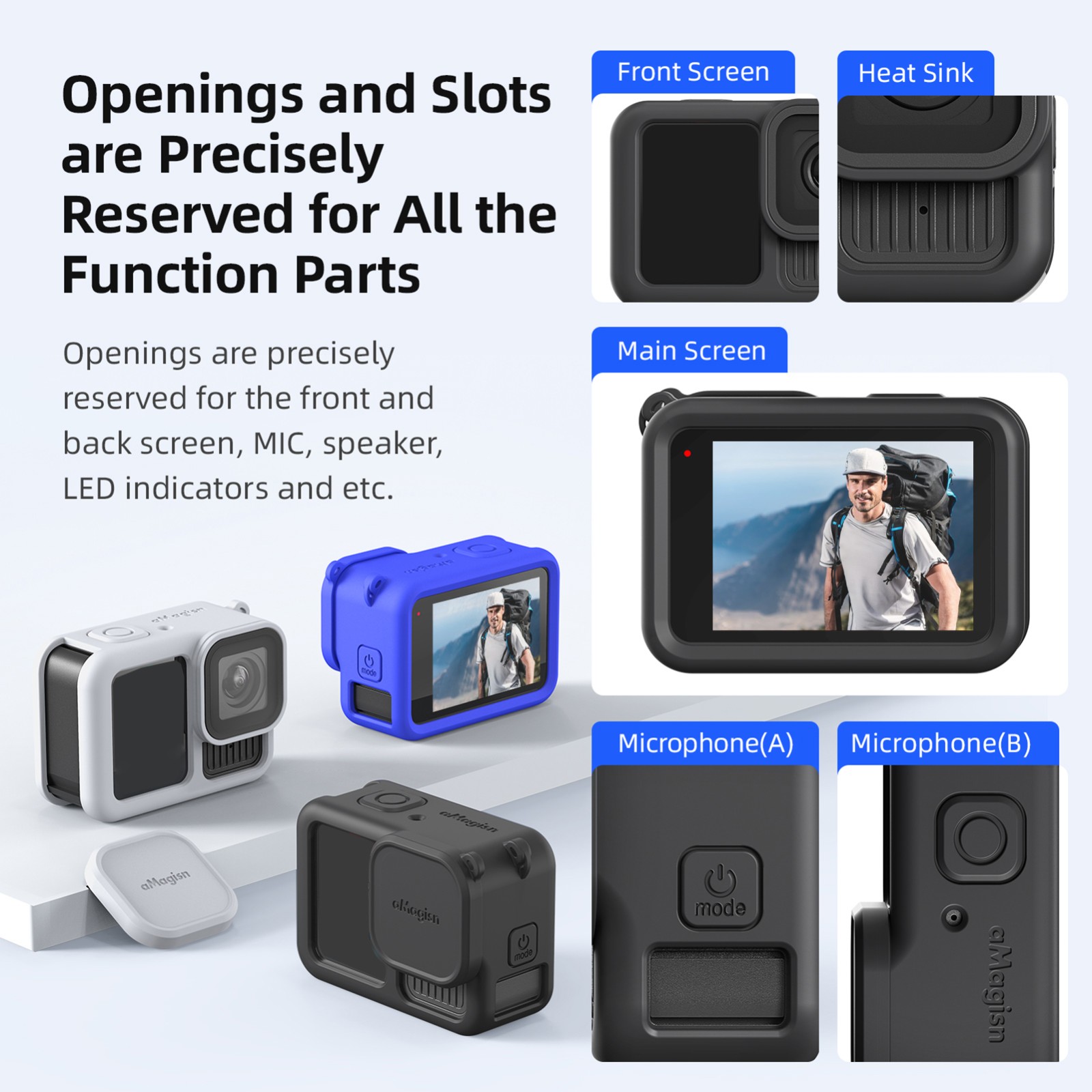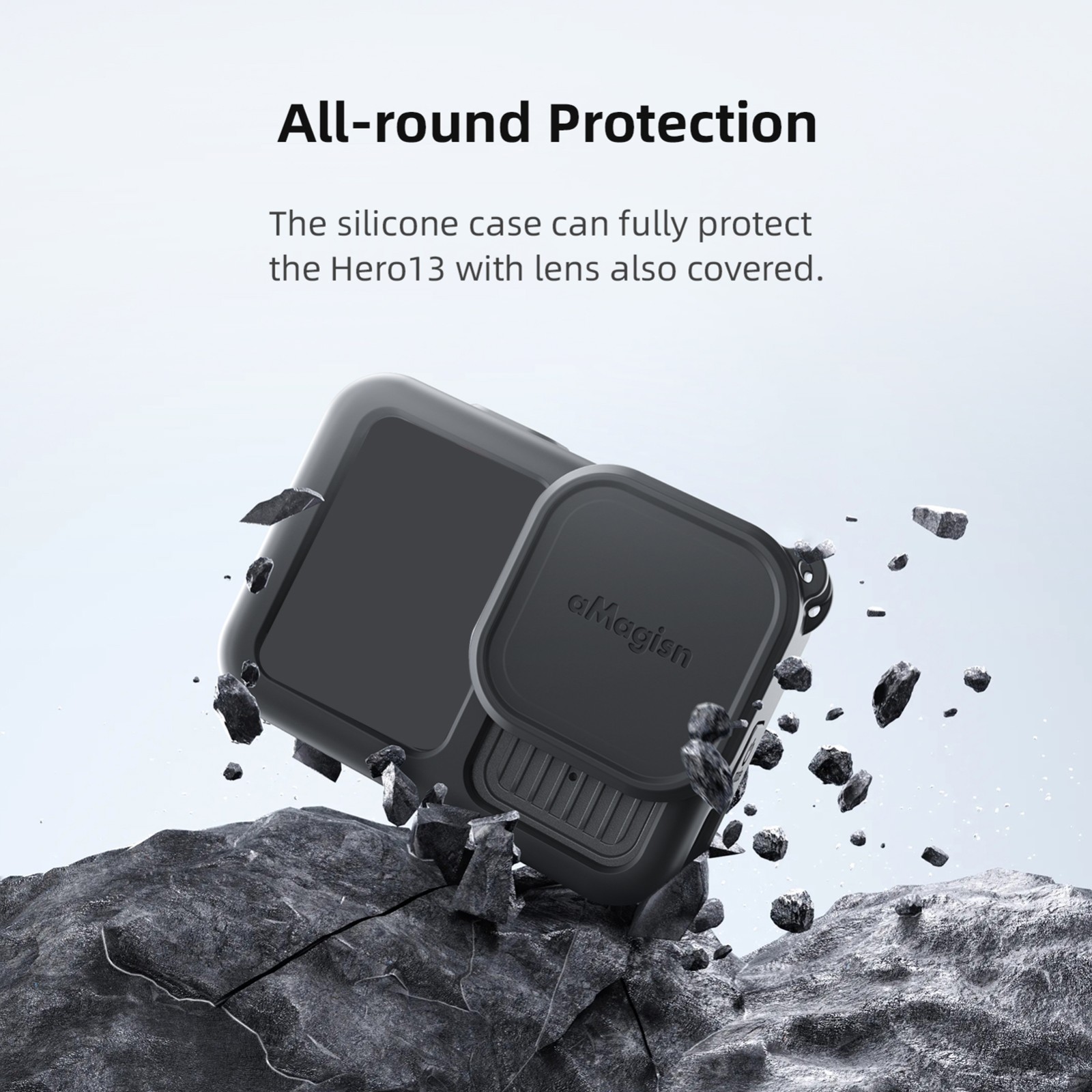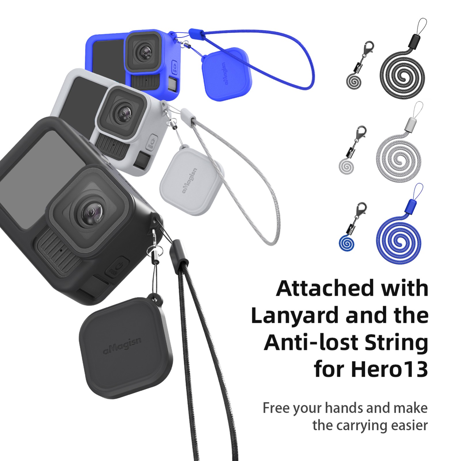 aMagisn AP11 运动相机硅胶机身保护套+硅胶镜头套 带挂绳 适配GoPro Hero 13 黑色 YM D13719B K