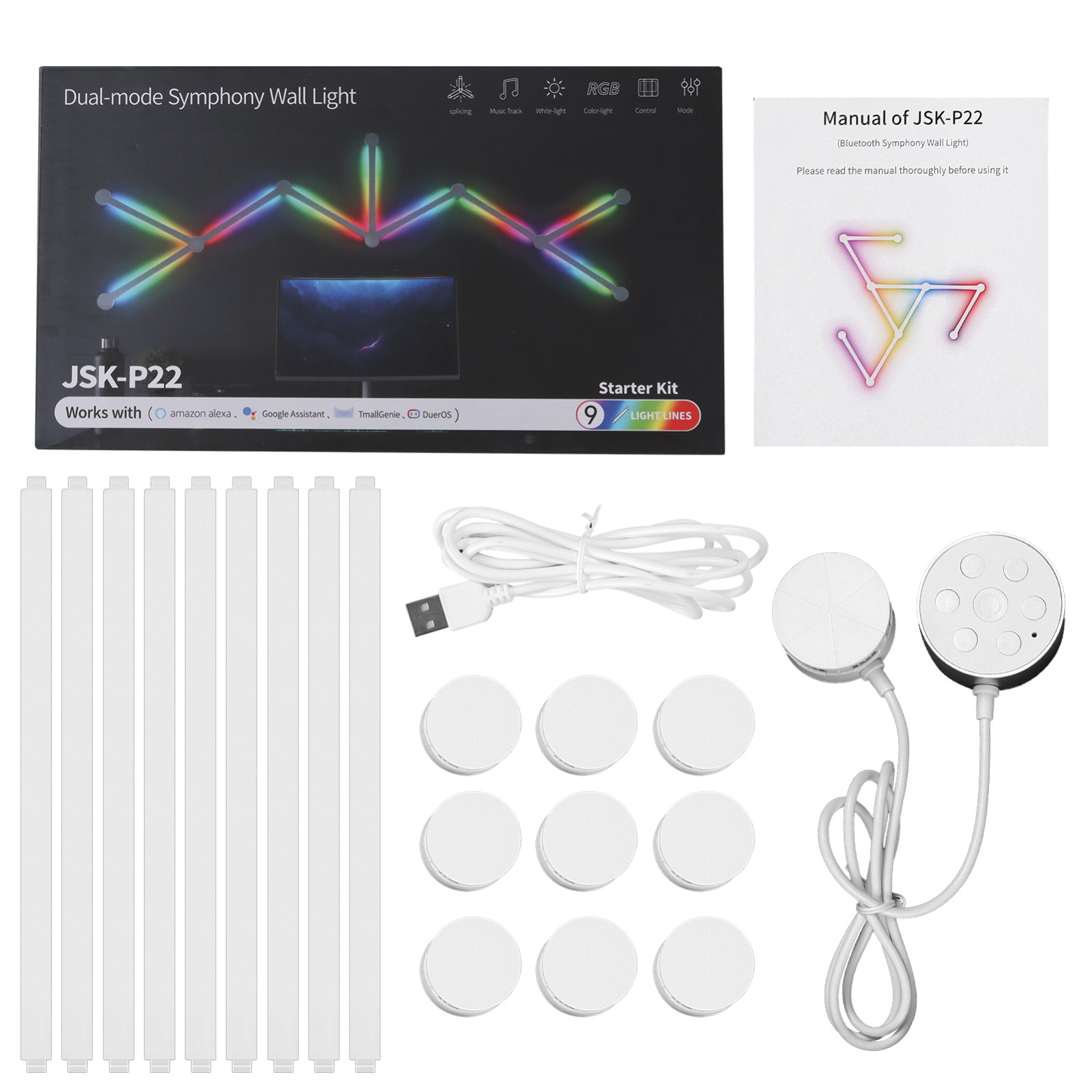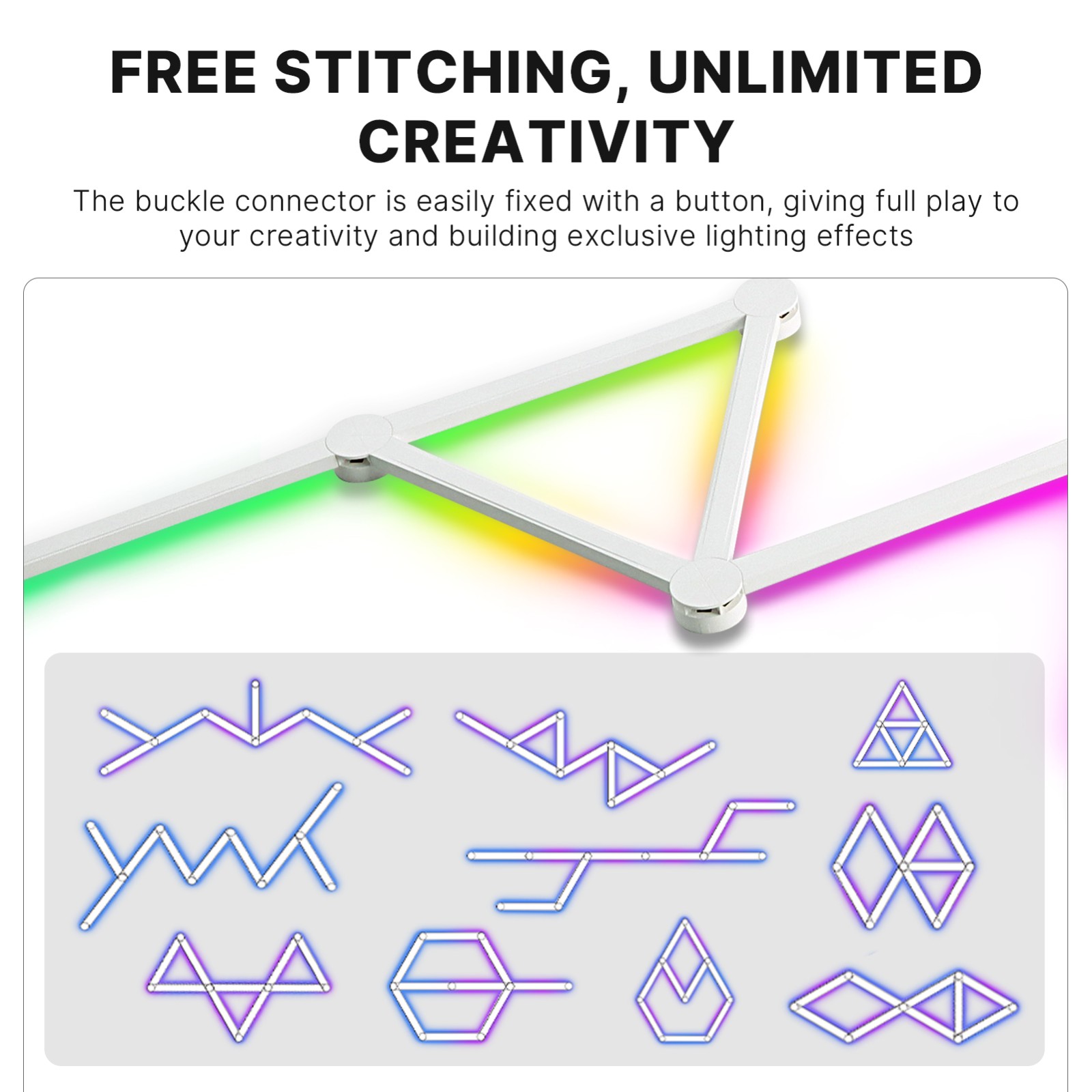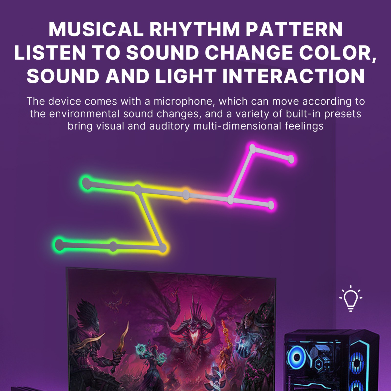 智能声控自由拼接墙面装饰灯 电竞房卧室客厅聚会互动氛围灯 1600万RGB灯效内置40+场景模式 APP和语音控制 wifi版 YM H49093US-9 G