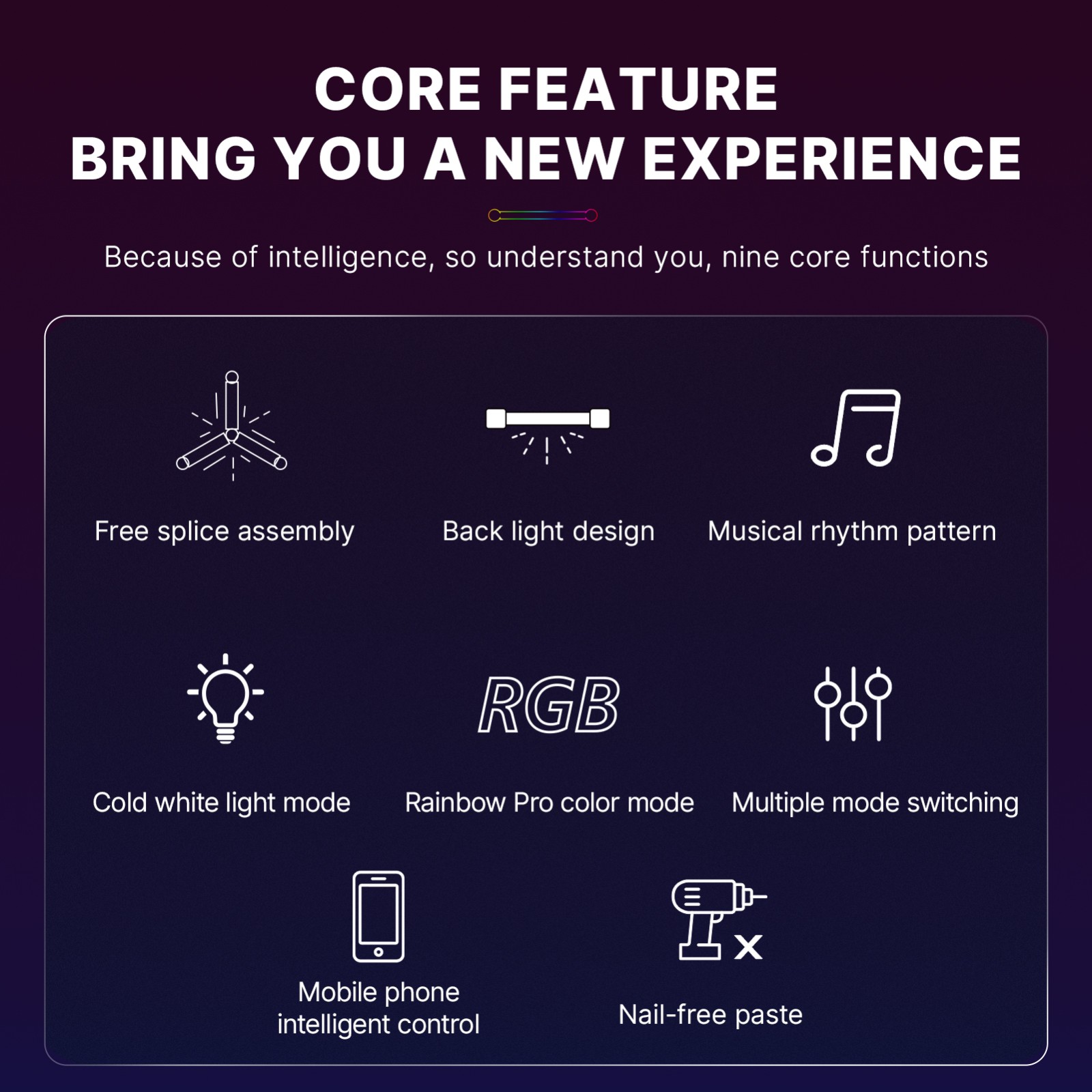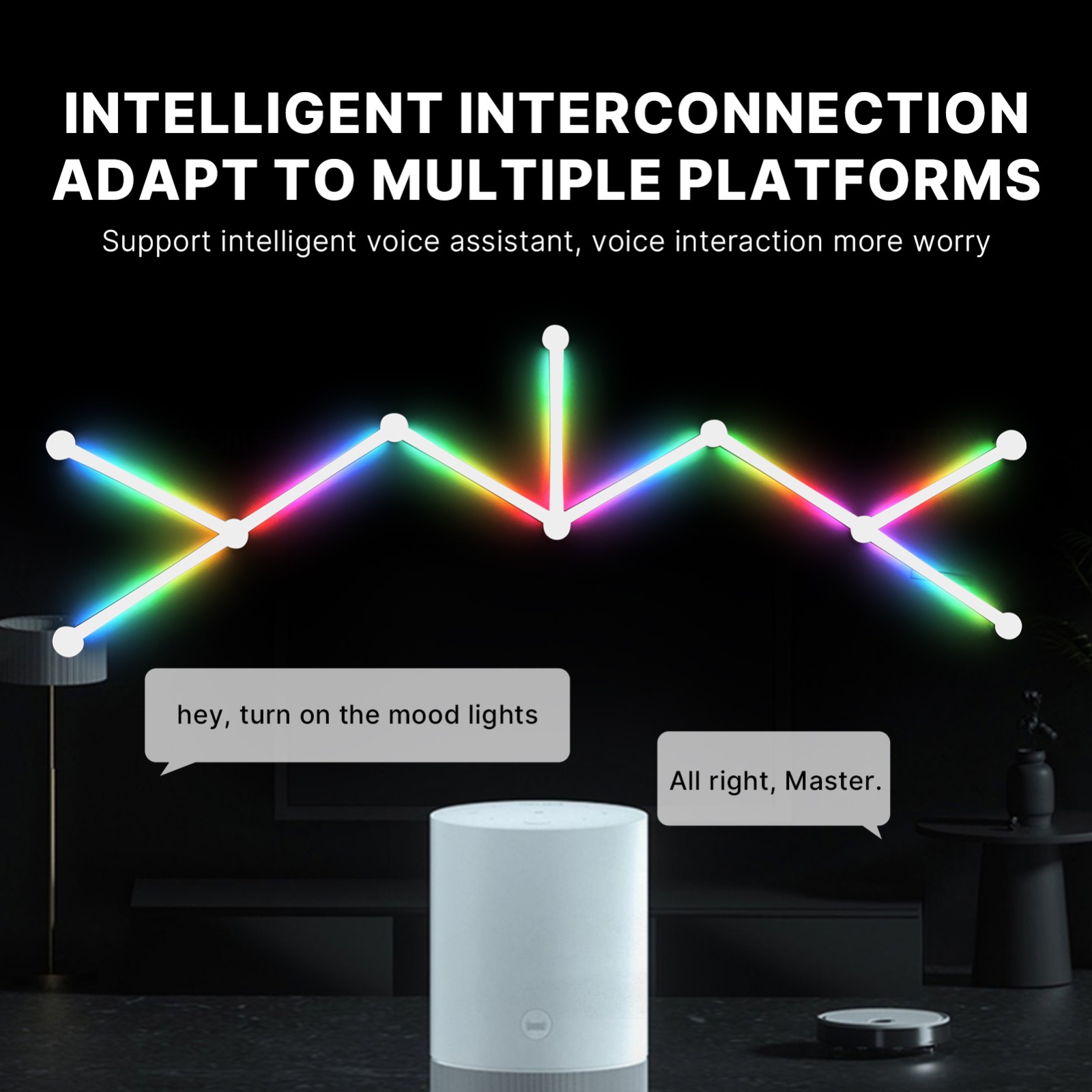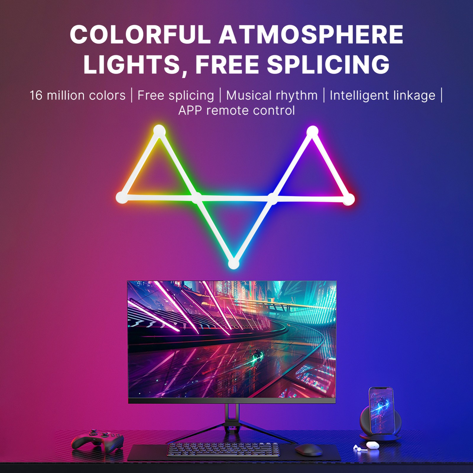 智能声控自由拼接墙面装饰灯 电竞房卧室客厅聚会互动氛围灯 1600万RGB灯效内置40+场景模式 APP和语音控制 wifi版 YM H49093US-9 G