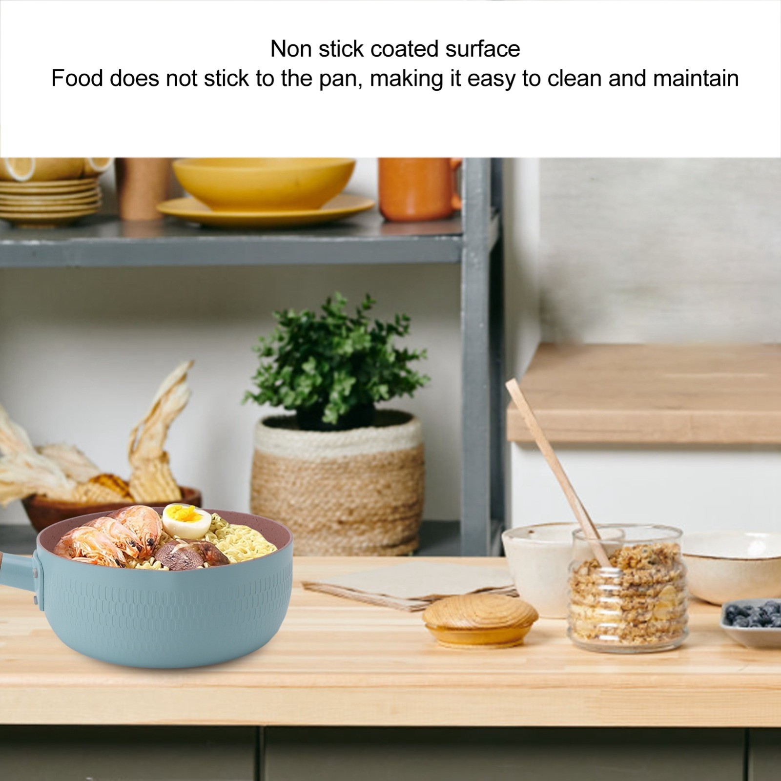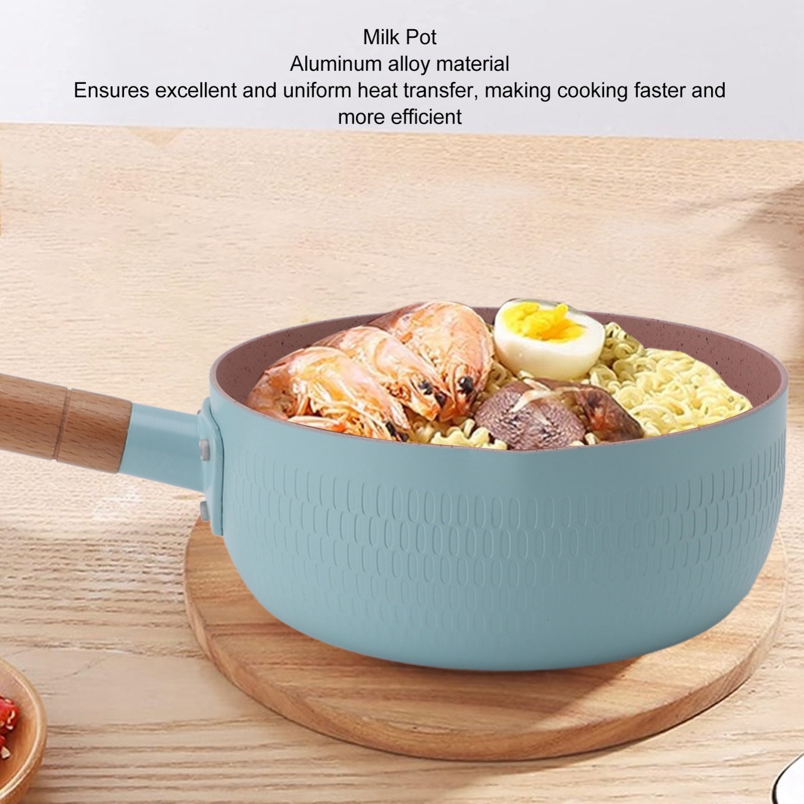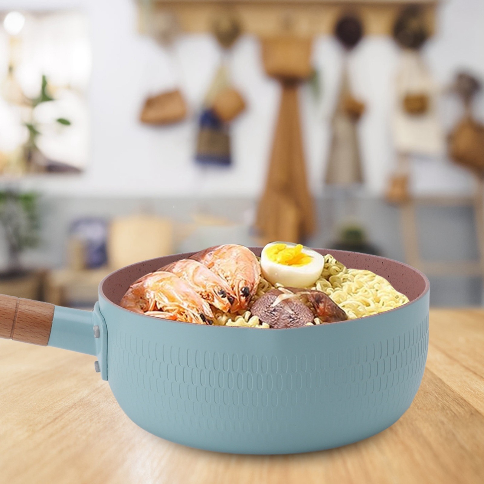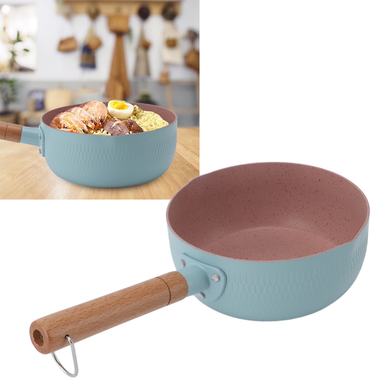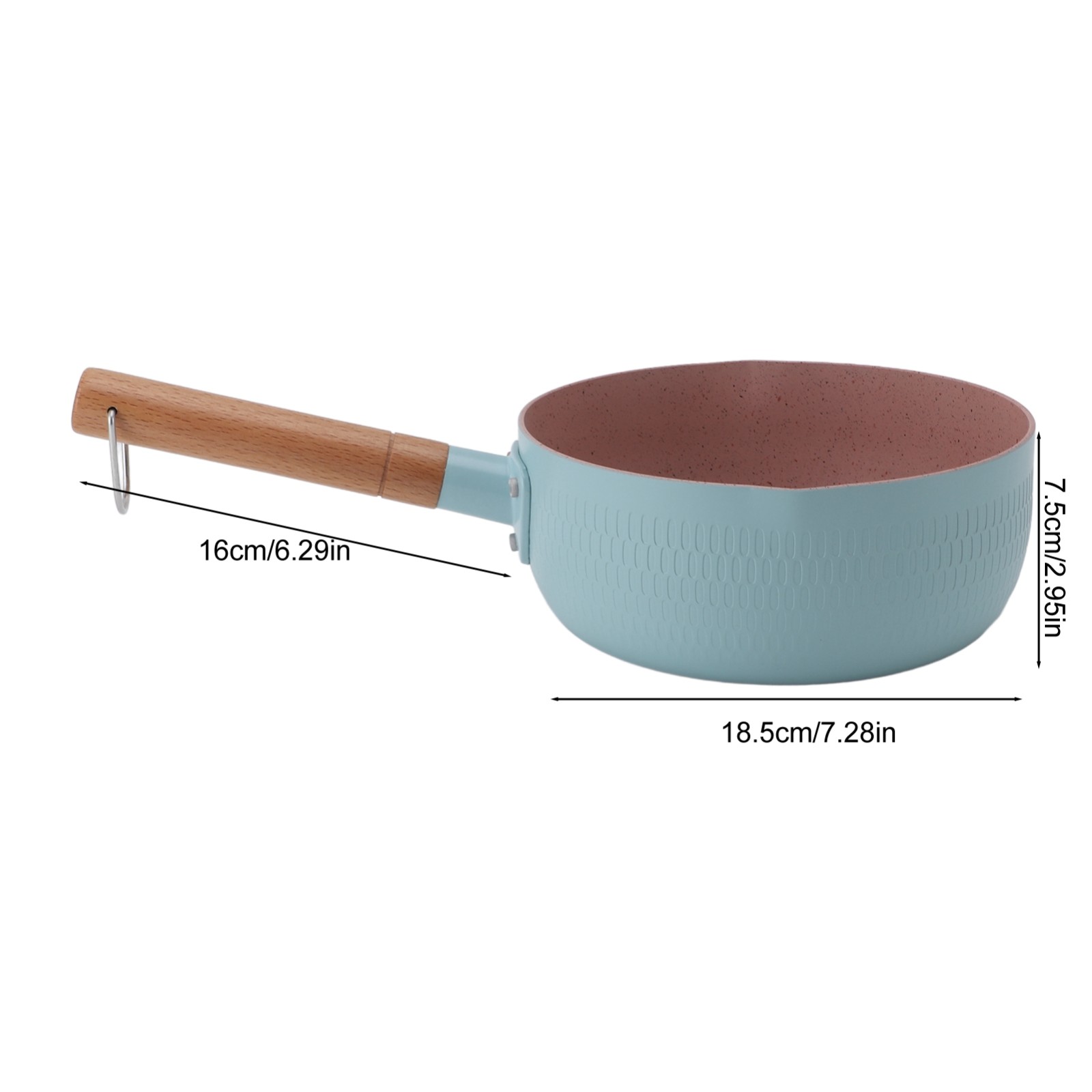创意木质手柄雪平锅日式铝制不粘锅多功能泡面锅牛奶锅 天蓝色无盖 YM 3118240043612 G