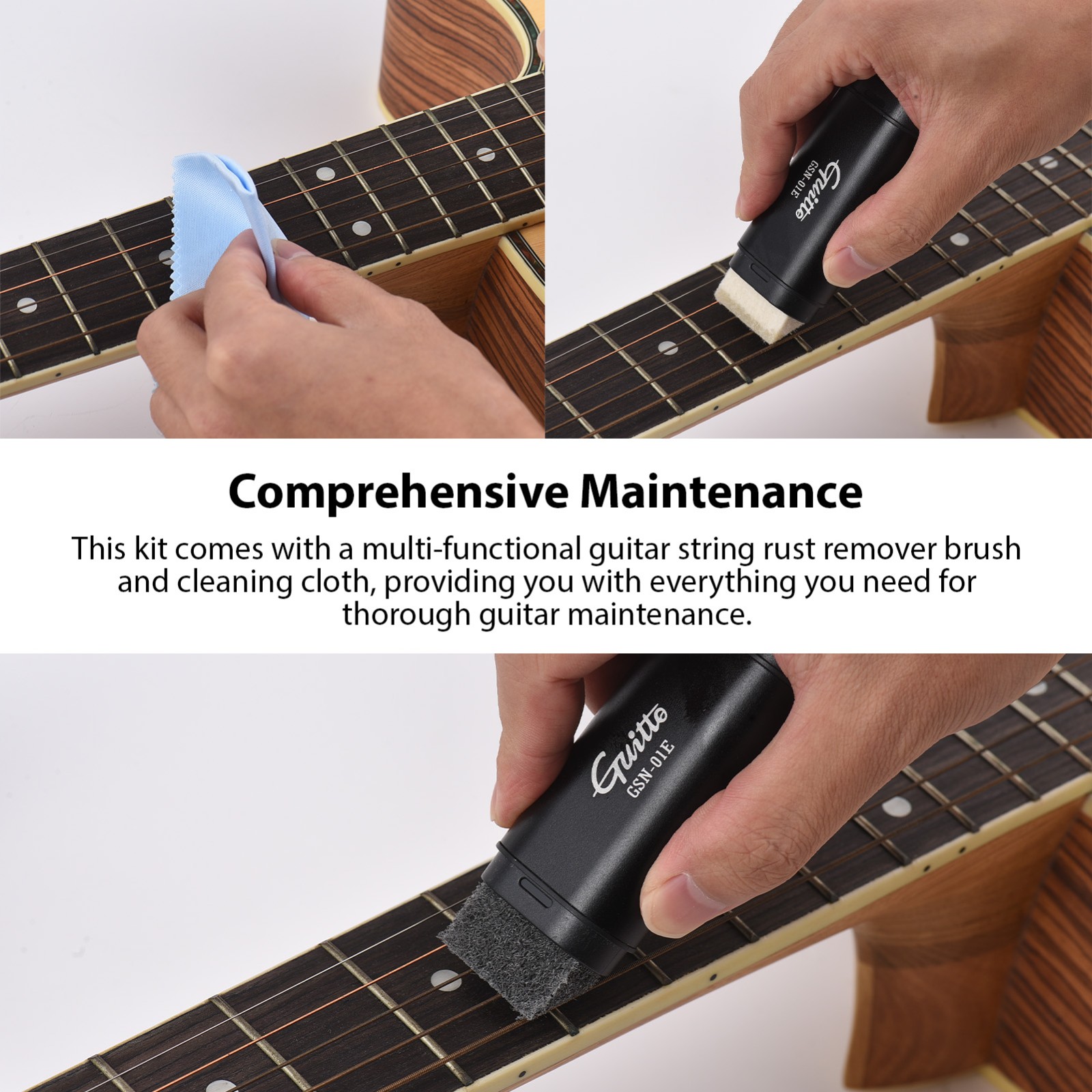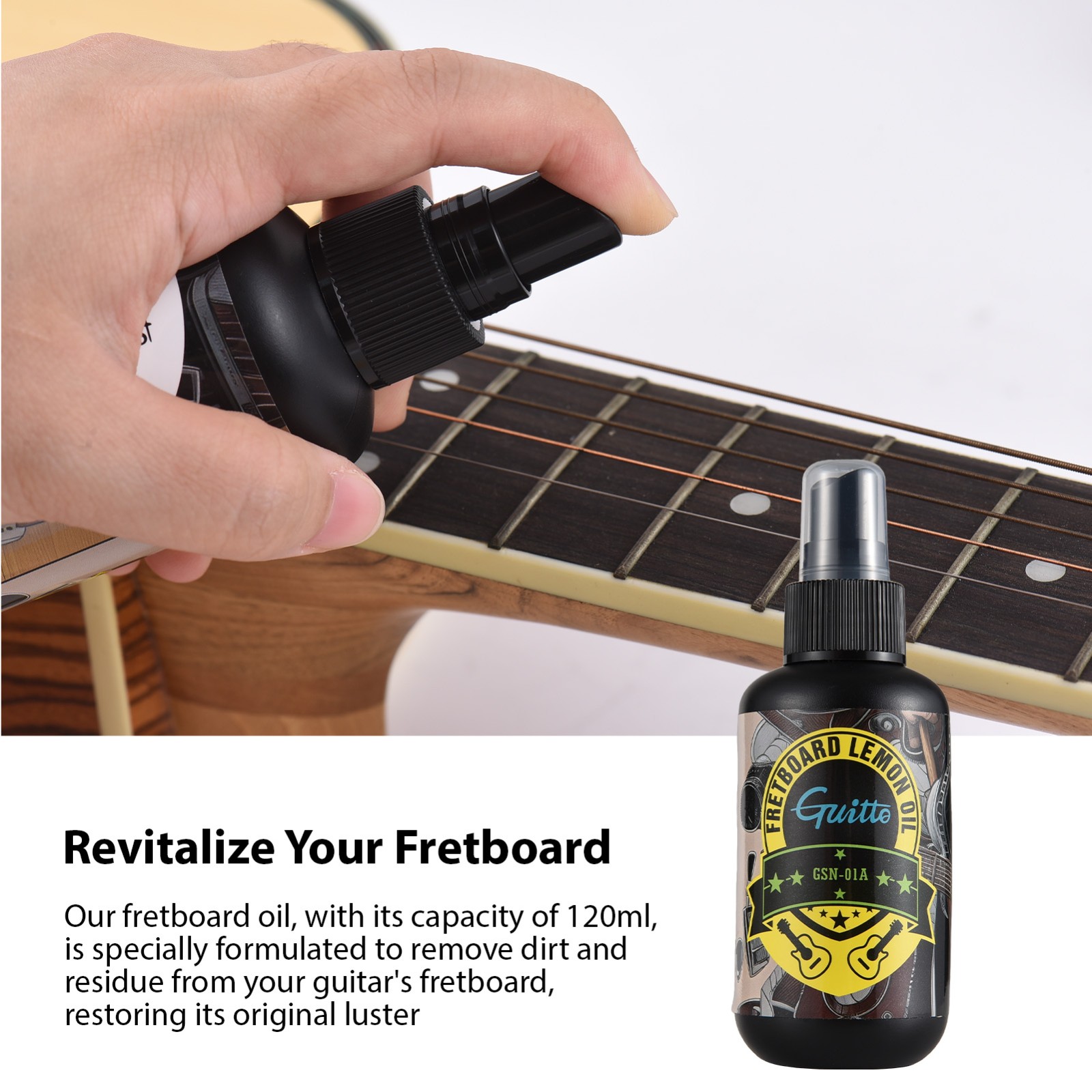 GUITTO 吉他护理油套装 指板滋润柠檬油120ml+琴弦防锈护理油50ml+琴体清洁上光剂120ml 吉他护理3件套带1个除锈刷2个清洁布 GSN-01 YM I9784 G