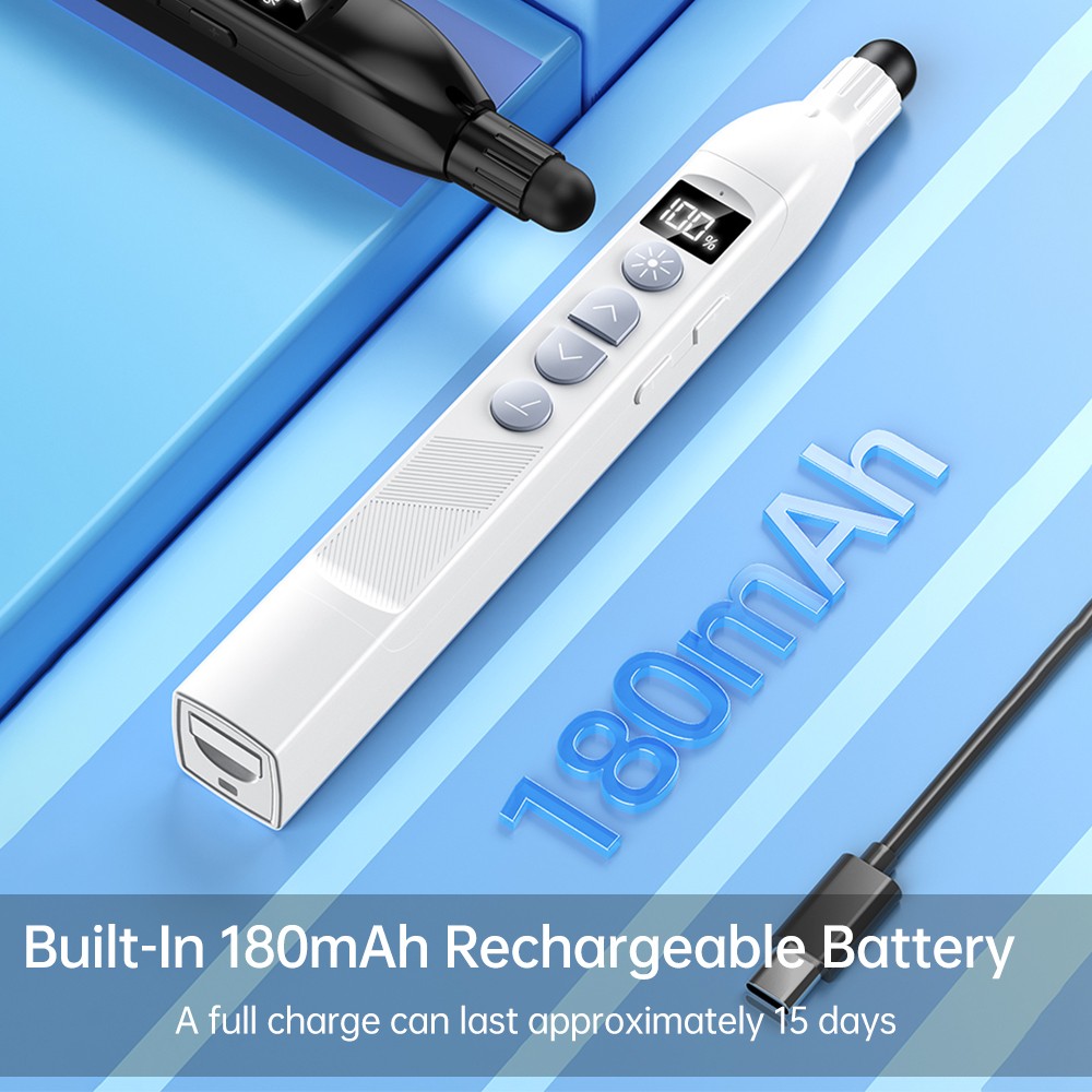 S18PRO 可伸缩55cm教鞭激光翻页笔 3档红光激光+数显+倒计时震动, 一键书写,石墨烯笔头, 200m遥控距离, 200m激光距离, 即插即用 内置锂电池 黑色 YM OS9210B G