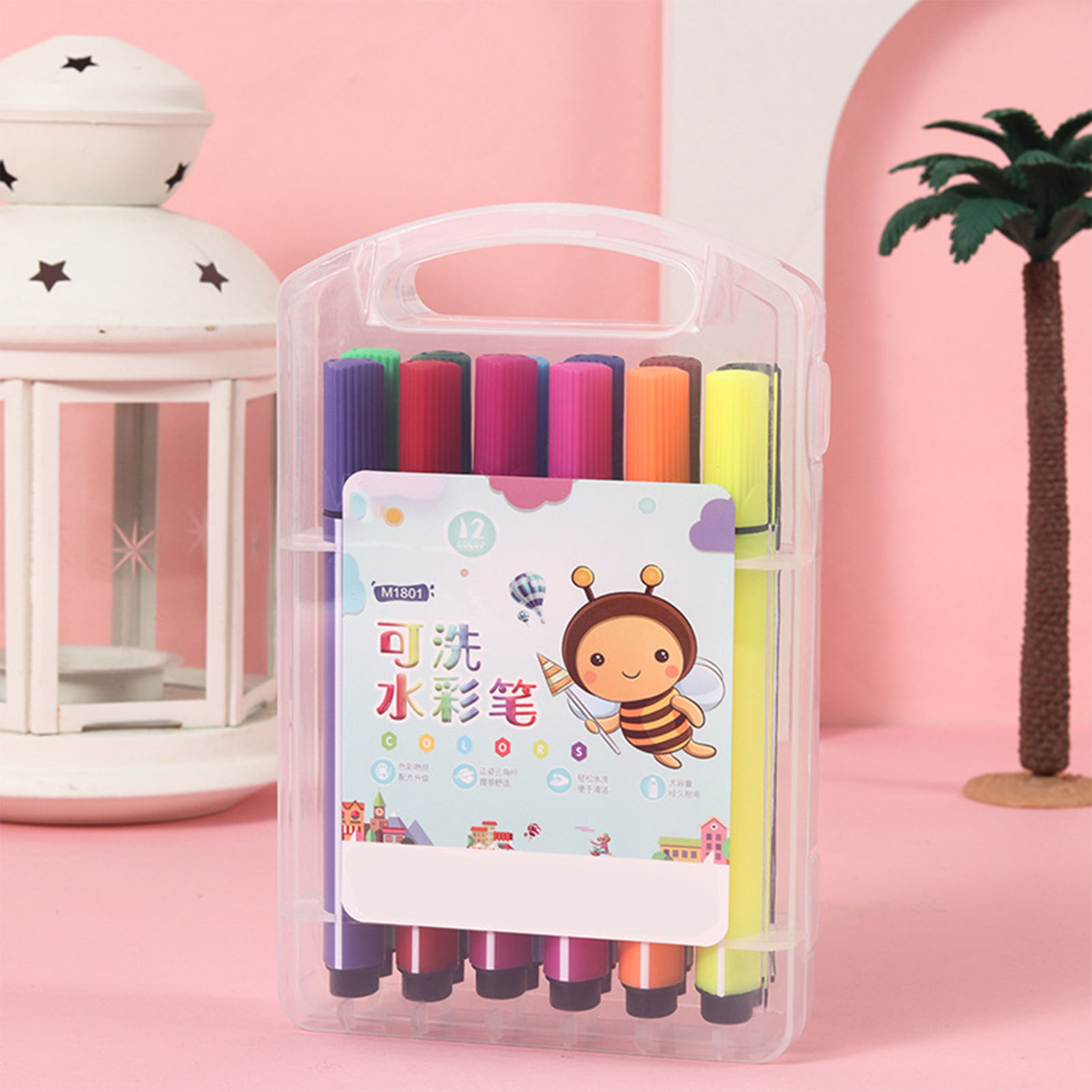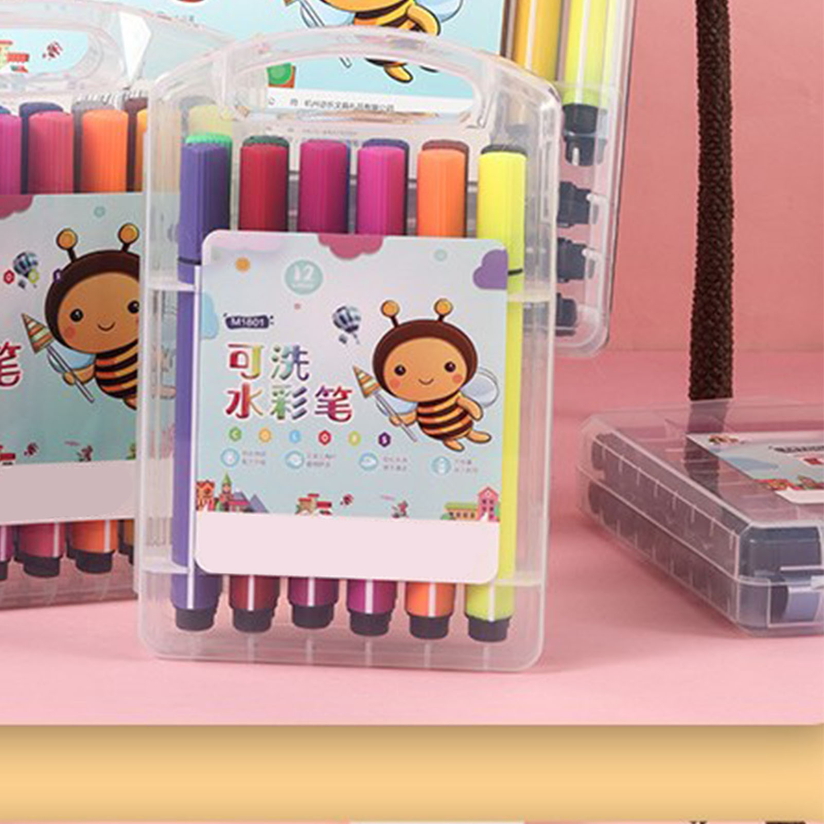 可水洗儿童硬头水彩笔三角杆大容量小学生盒装12色绘画笔彩笔(12色硬头水彩笔)YM 1217230201111 G