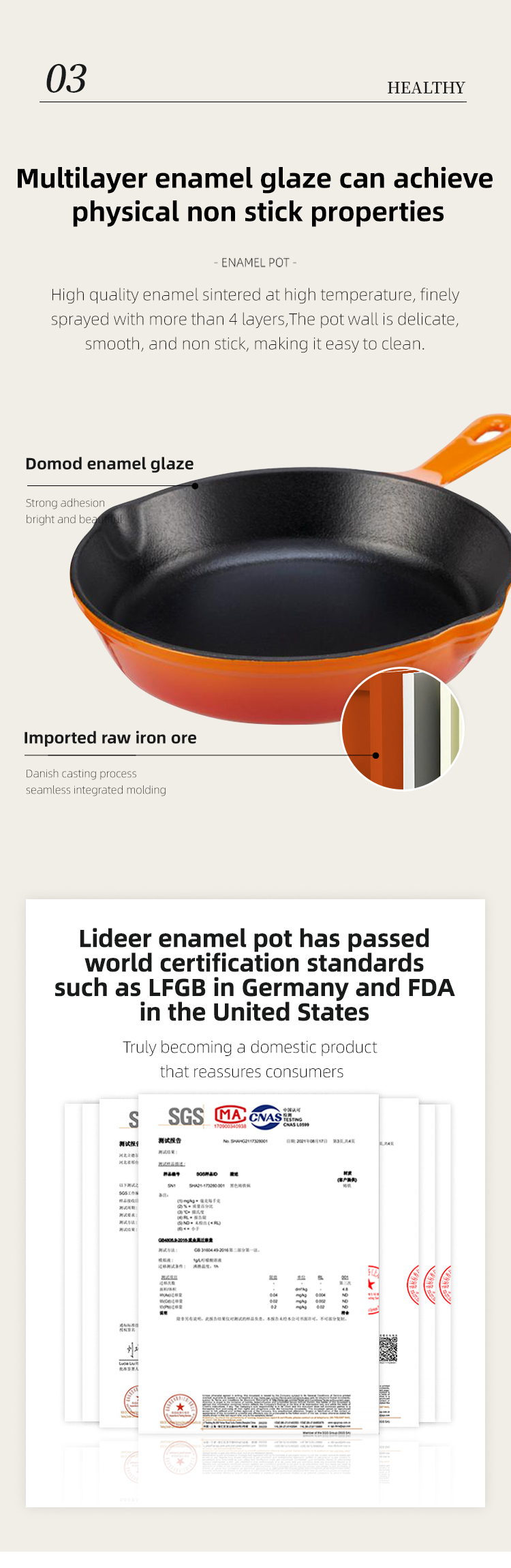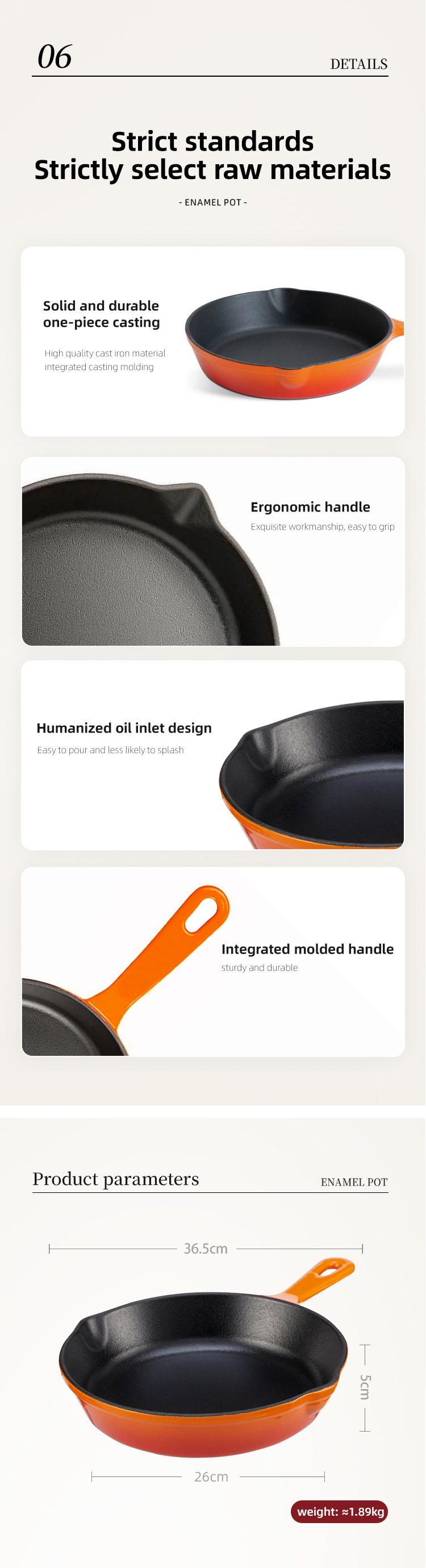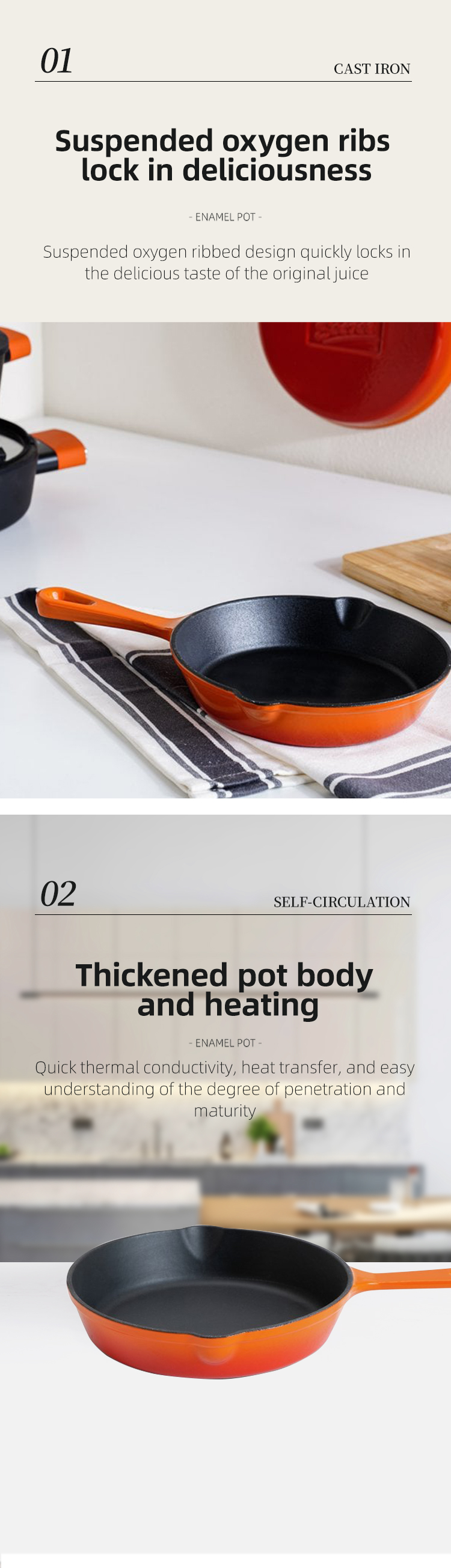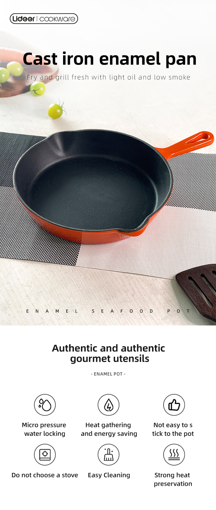【样品预售】橙色珐琅体+黑色煎面铸铁煎锅36.5cm(直径26cmx高5cm)1.89kg - 防锈不粘洗碗机适用珐琅层!专利氧气棱纹锁汁,加厚锅底快速导热,LFGB/FDA认证,德式周日烤肉必备 26jianpan# lideer