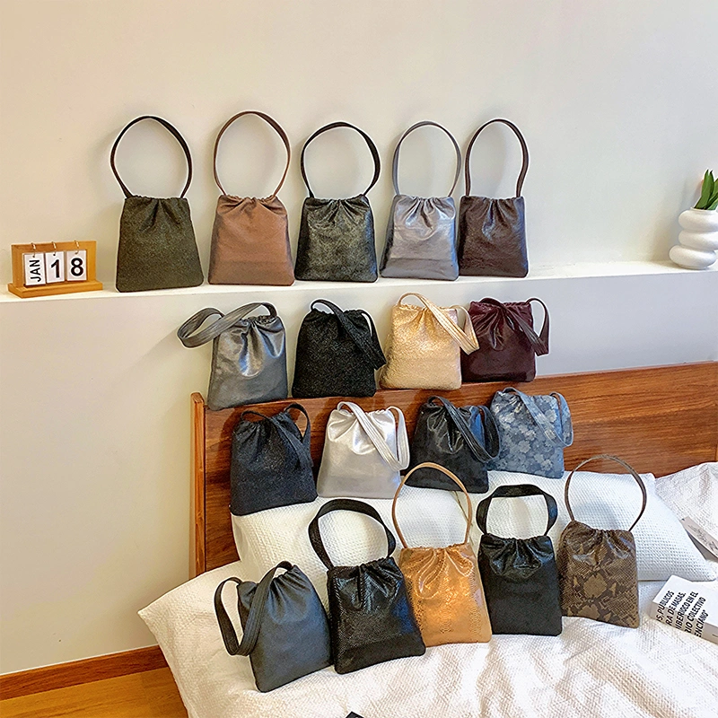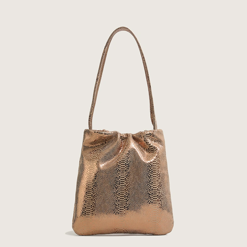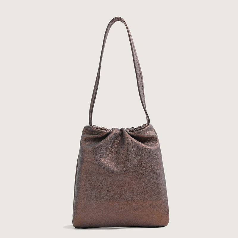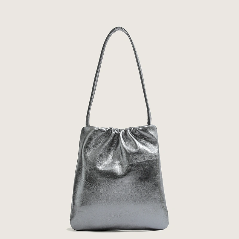 【样品预售】24*25*1cm 羊皮水桶包 | 亮面褶皱设计 + 手提款式,金属质感适配日常 / 派对 / 购物,多色纹理可选 5188 (mingheng)