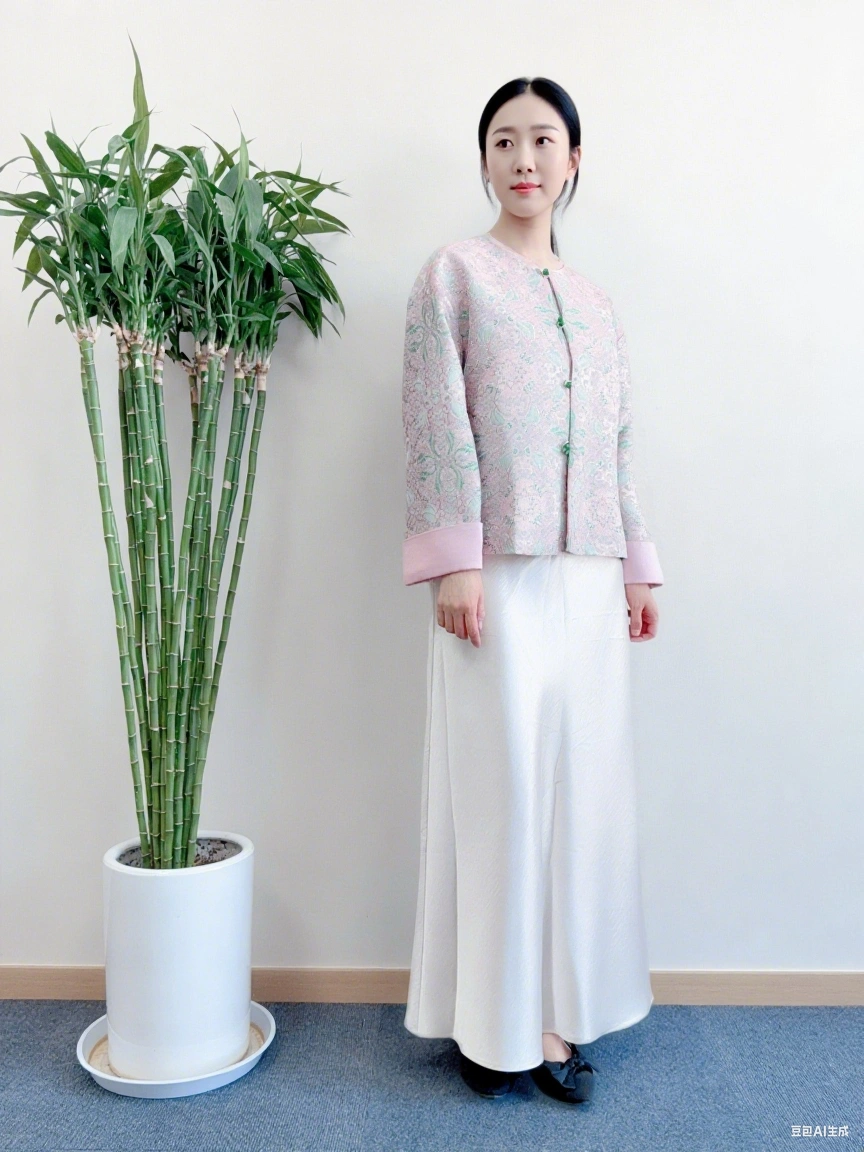 以提花非遗为魂,圆领短款塑形,东方复古与现代极简碰撞,诠释新国风「轻礼服」美学。