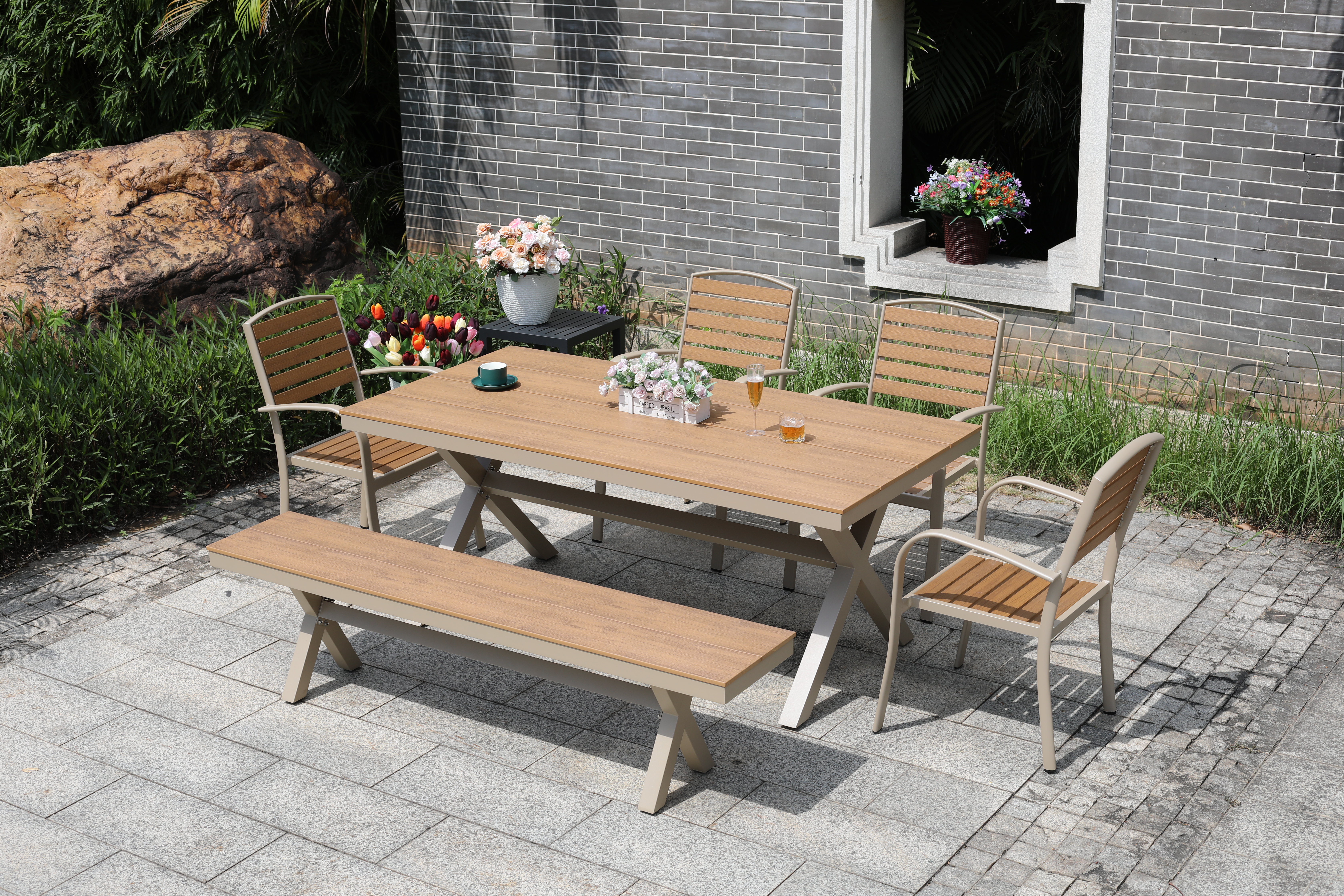 【样品预售】户外塑木长凳 150x36x47cm 木色凳面浅灰支架 轻便10.5kg 防风雨免维护 庭院阳台椅 ZF1078T shangshi