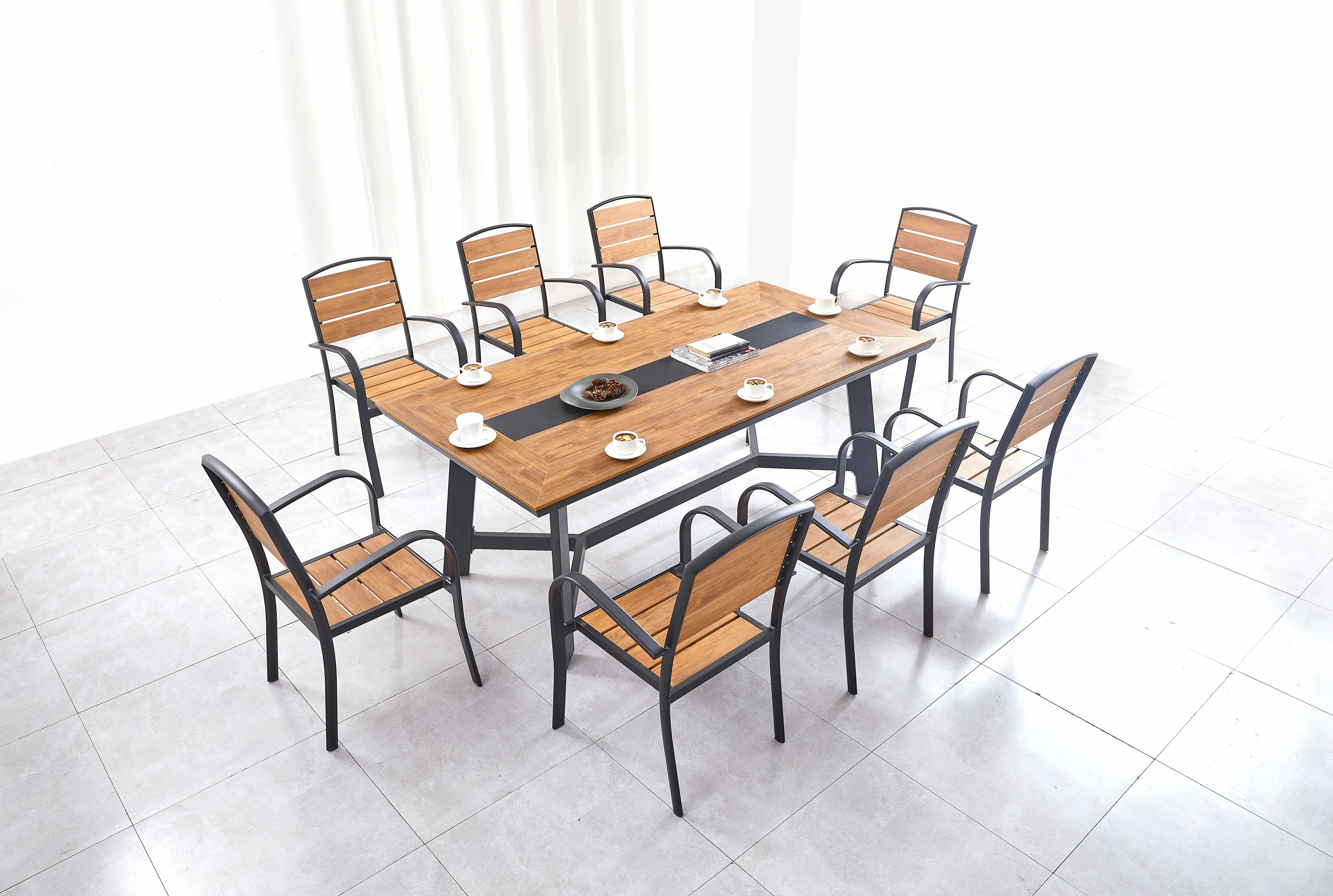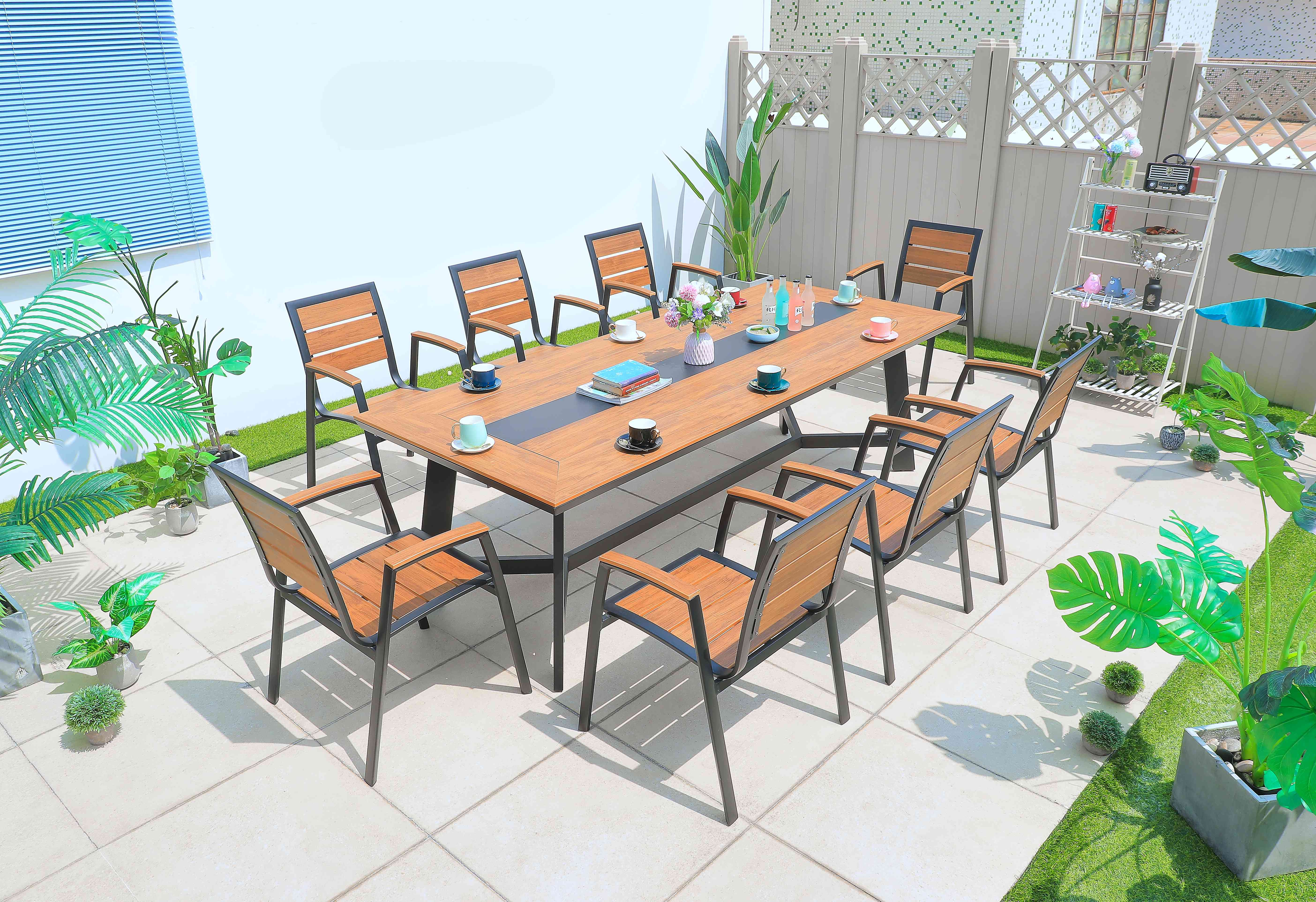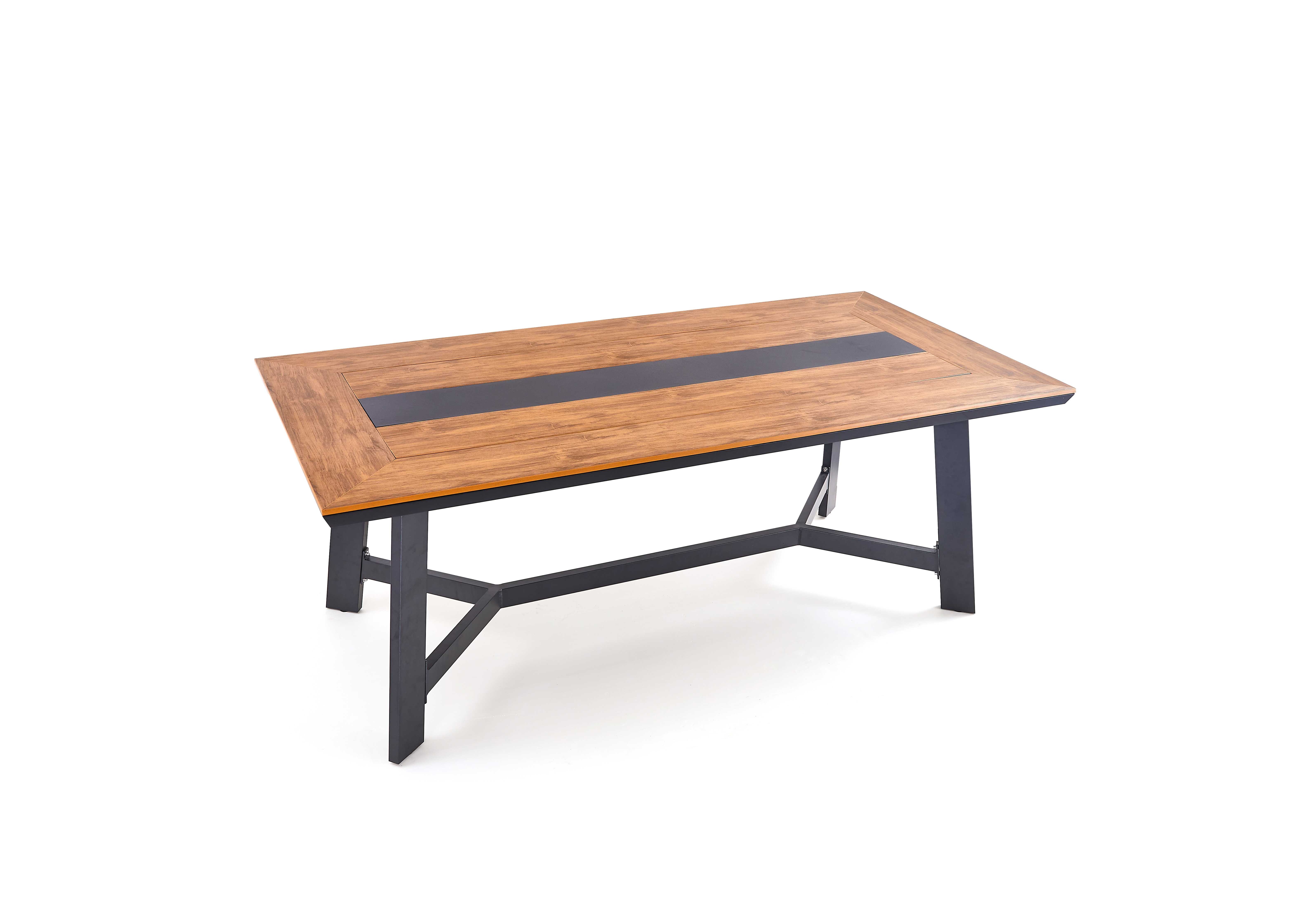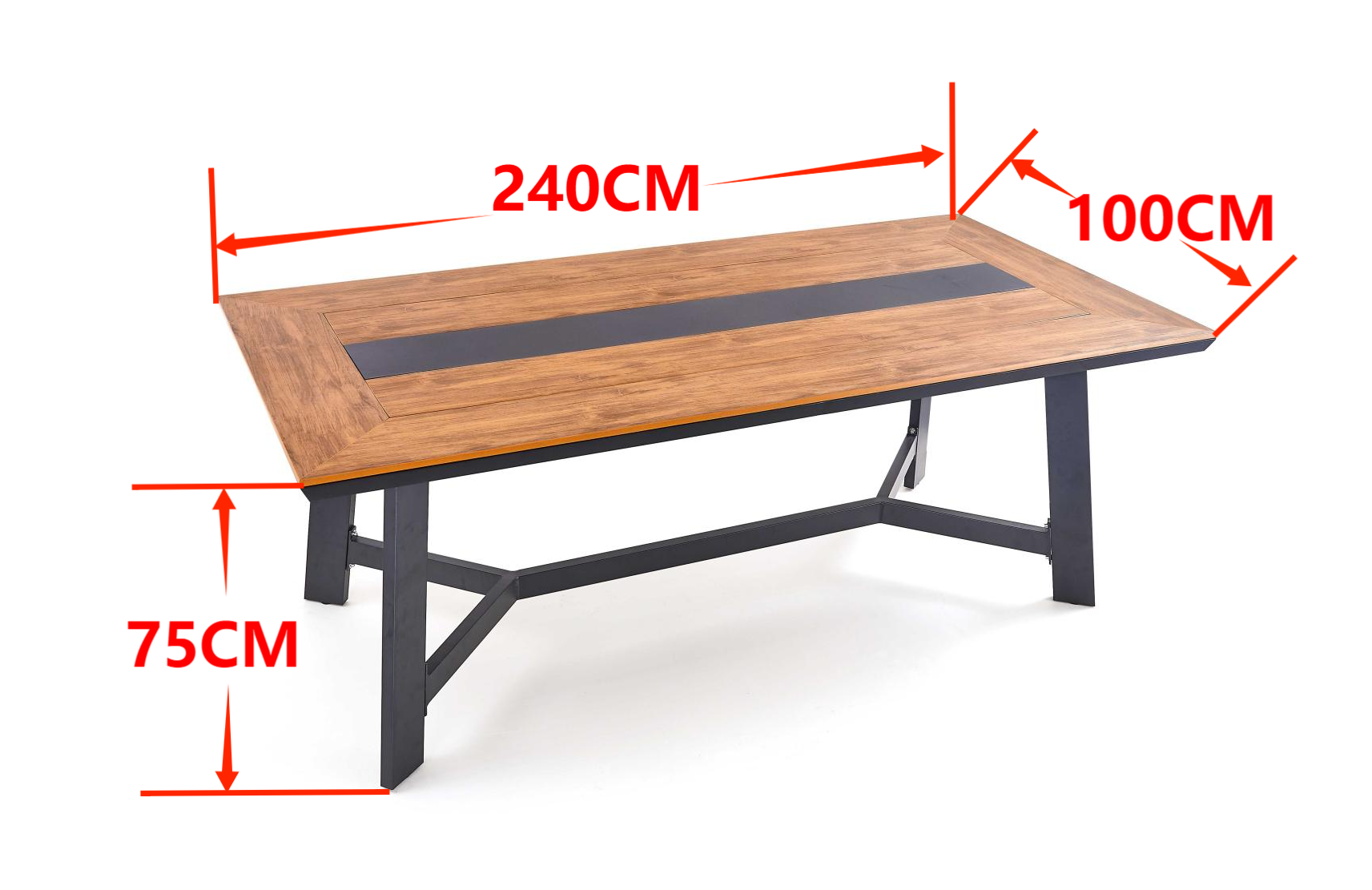【样品预售】加厚香槟色长桌 240x100x75厘米 (室内外通用) - 防潮木纹桌面+黑色X型金属架 多功能阳台/花园/家用/办公ZF1052T shangshi
