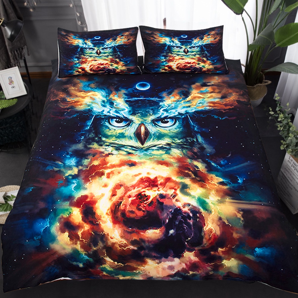 银河猫头鹰三件套 被套135x200cm | 迷幻月亮印花 | UK Single床品 YMJY28752-01
