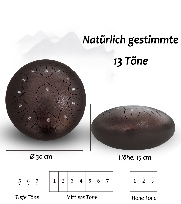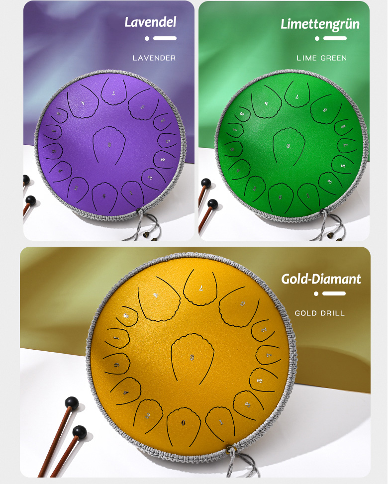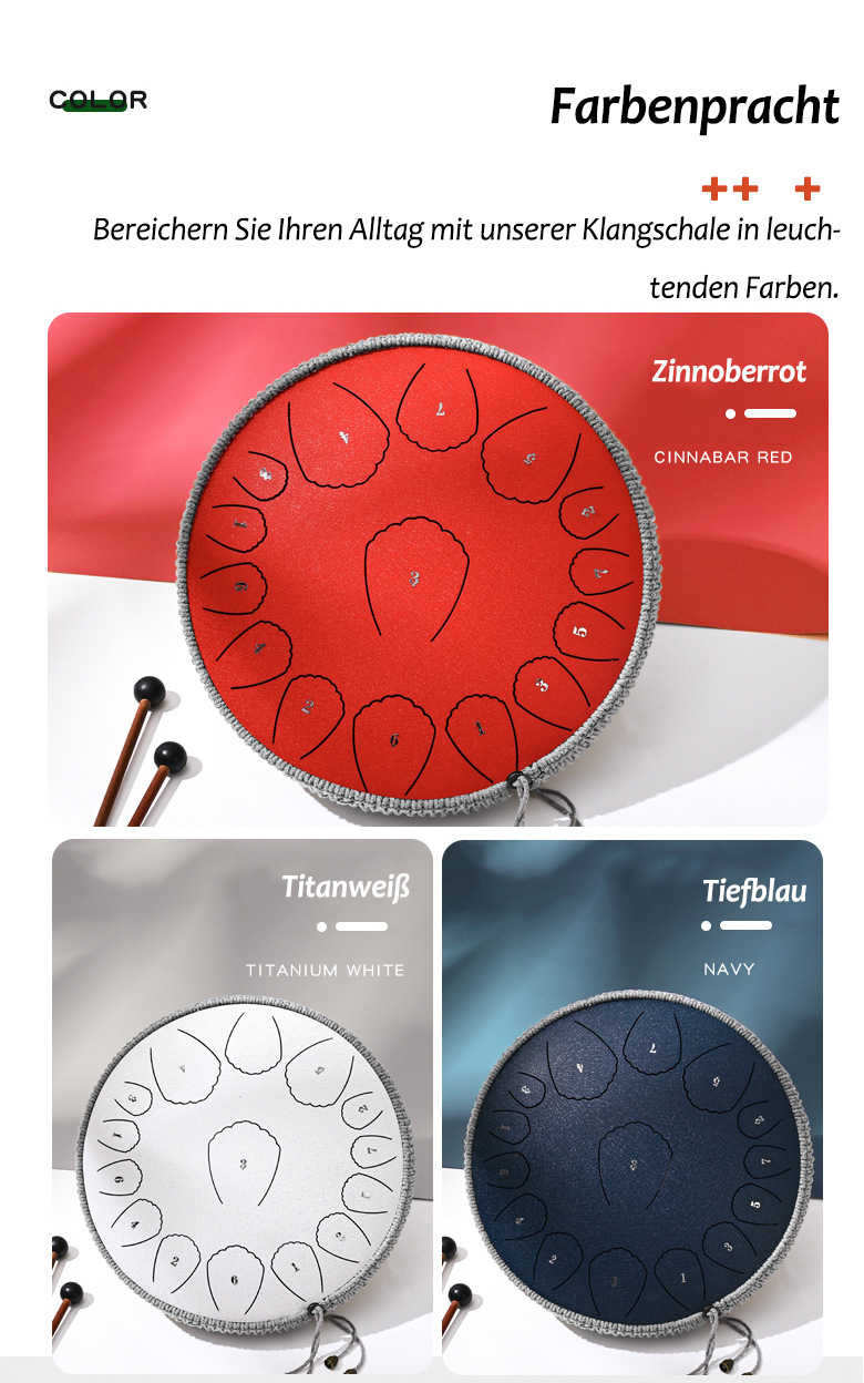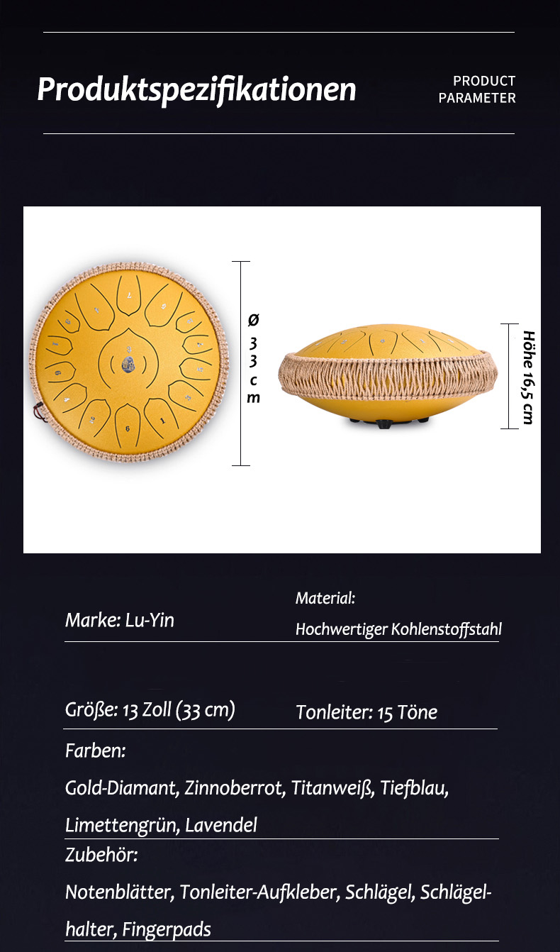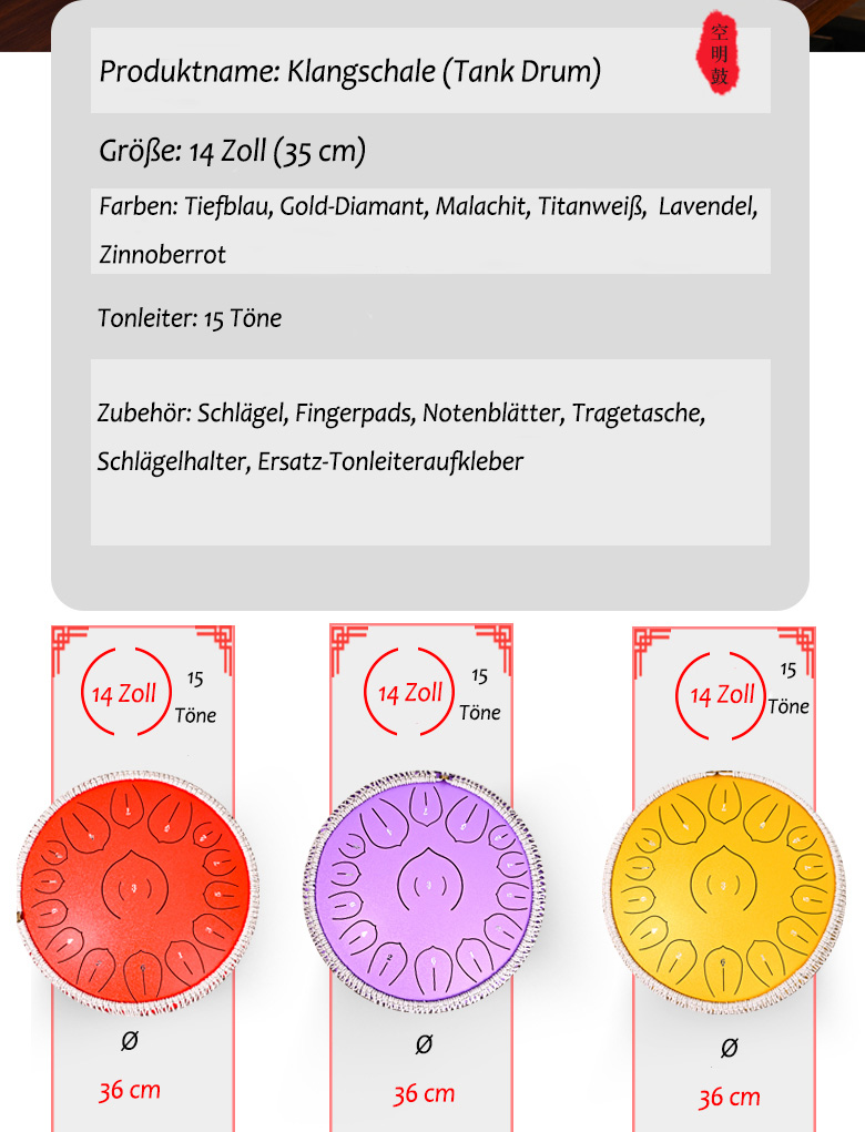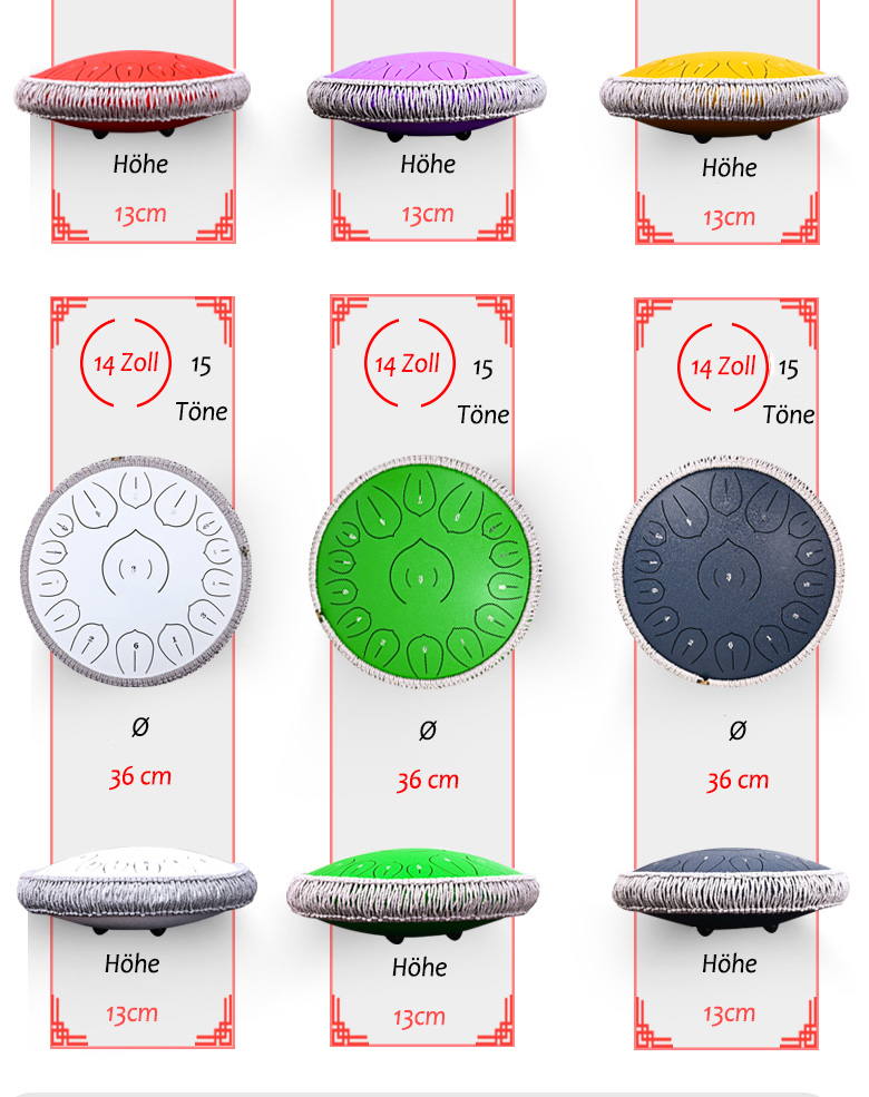 » 全系标配:手工棉麻单肩包×1 + 鼓槌×2 + 鼓槌托×1 + 皮质指套×2 + 简谱册×1 + 音阶贴×1套