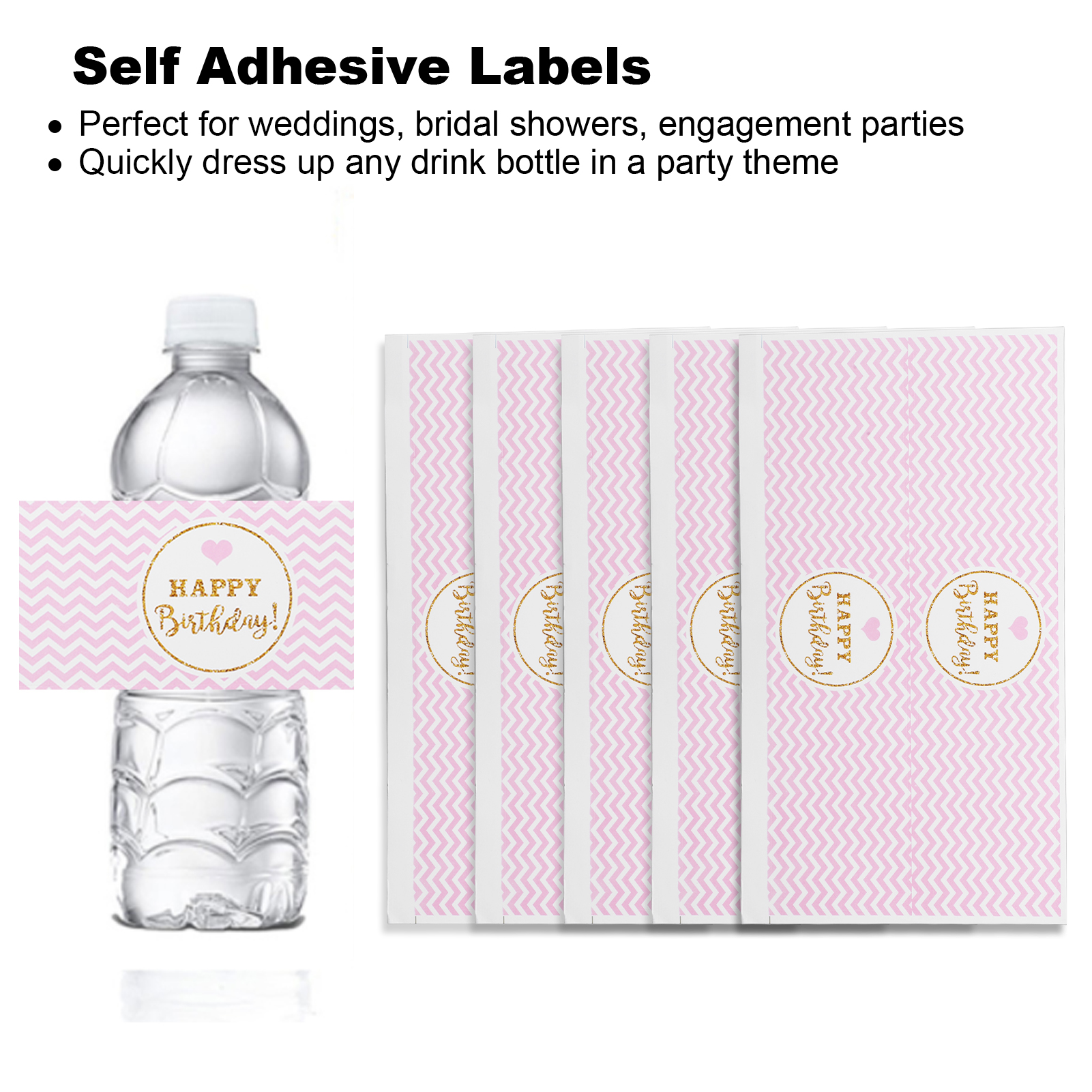 H 学生生日派对水杯贴纸 5张/套 粉白色系 自粘式饮料瓶装饰贴纸 适用于婚礼派对主题装饰 (约22x12.2cm) YM 1217220030711