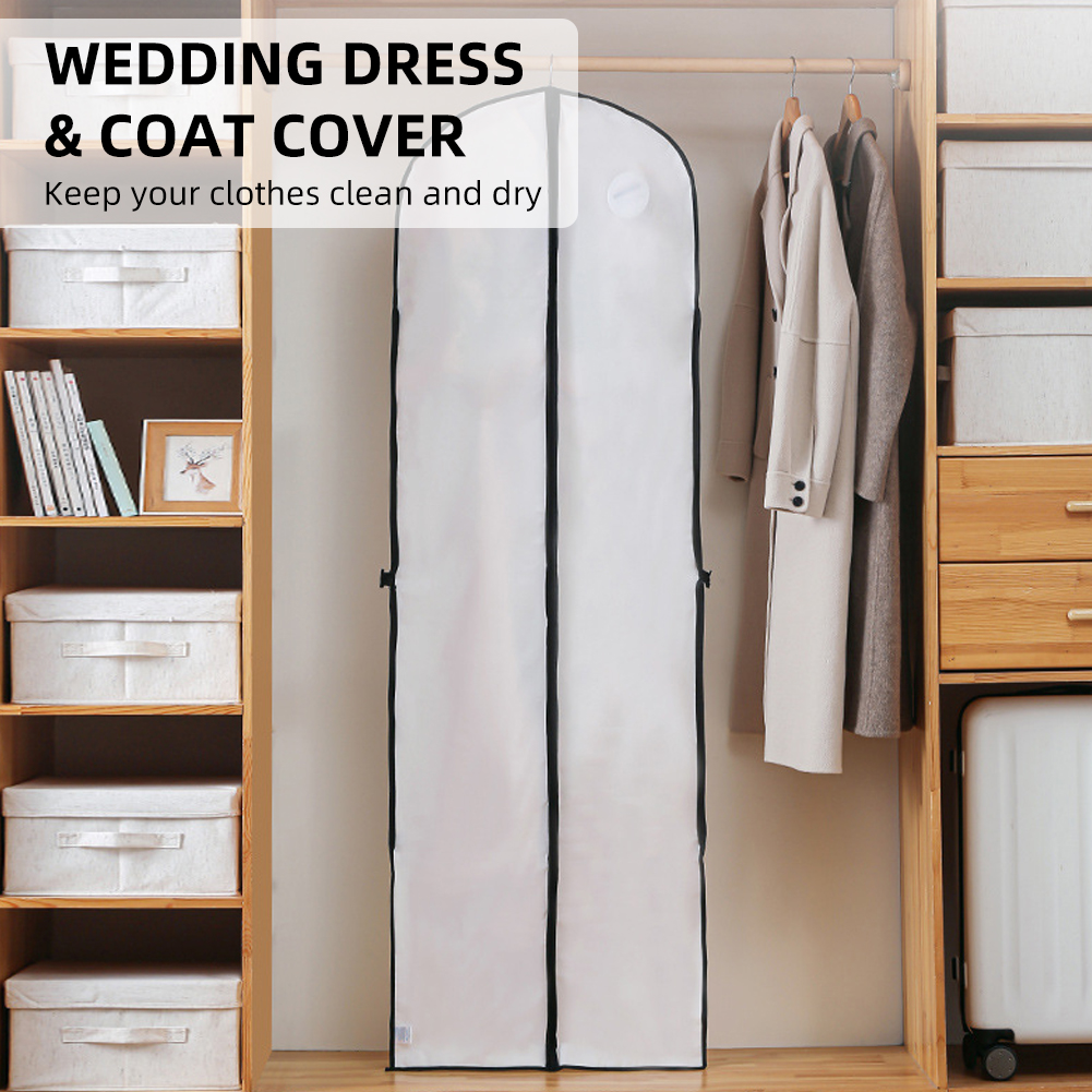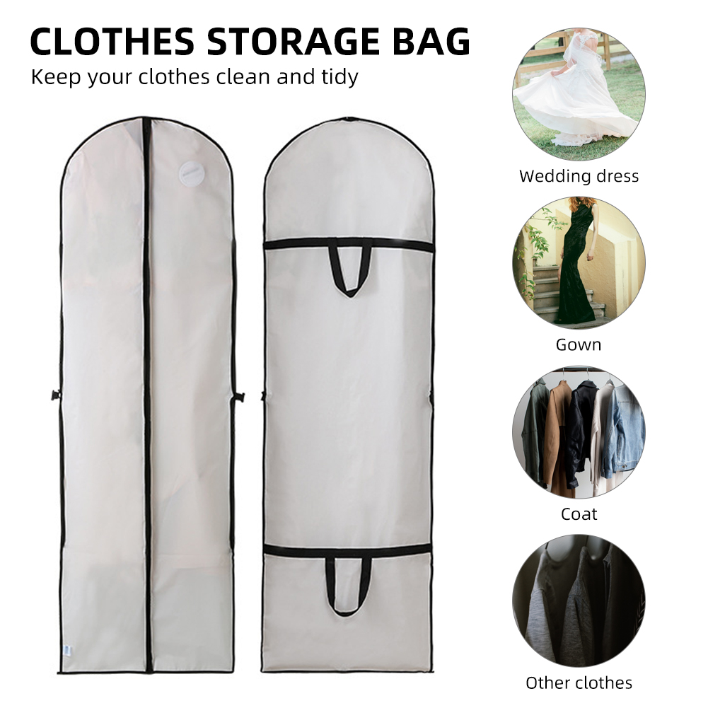 若将长裙或婚纱直接收纳于衣柜,衣物极易沾染灰尘或受潮,建议使用专用收纳袋保存。这款婚纱收纳袋尺寸宽敞(180×60厘米),可轻松容纳长裙或多件衣物。配备坚固提手与可折叠设计,便于携带且能节省衣柜空间。