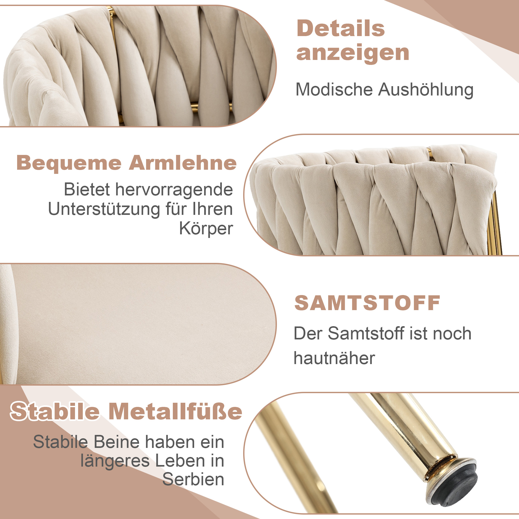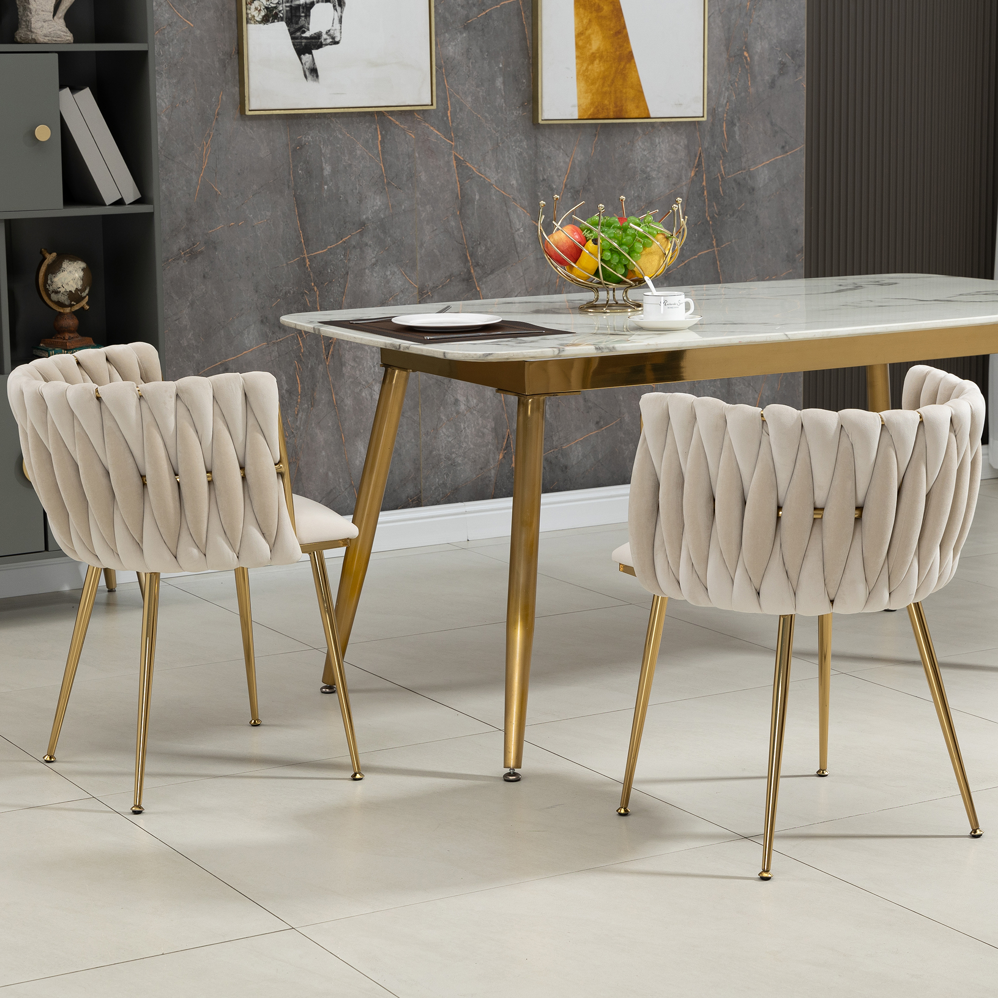 【轻奢天鹅绒】餐椅子现代简约 奶油色金色脚书房梳妆椅 卧室休闲单椅 网红ins风餐凳 (两张装)