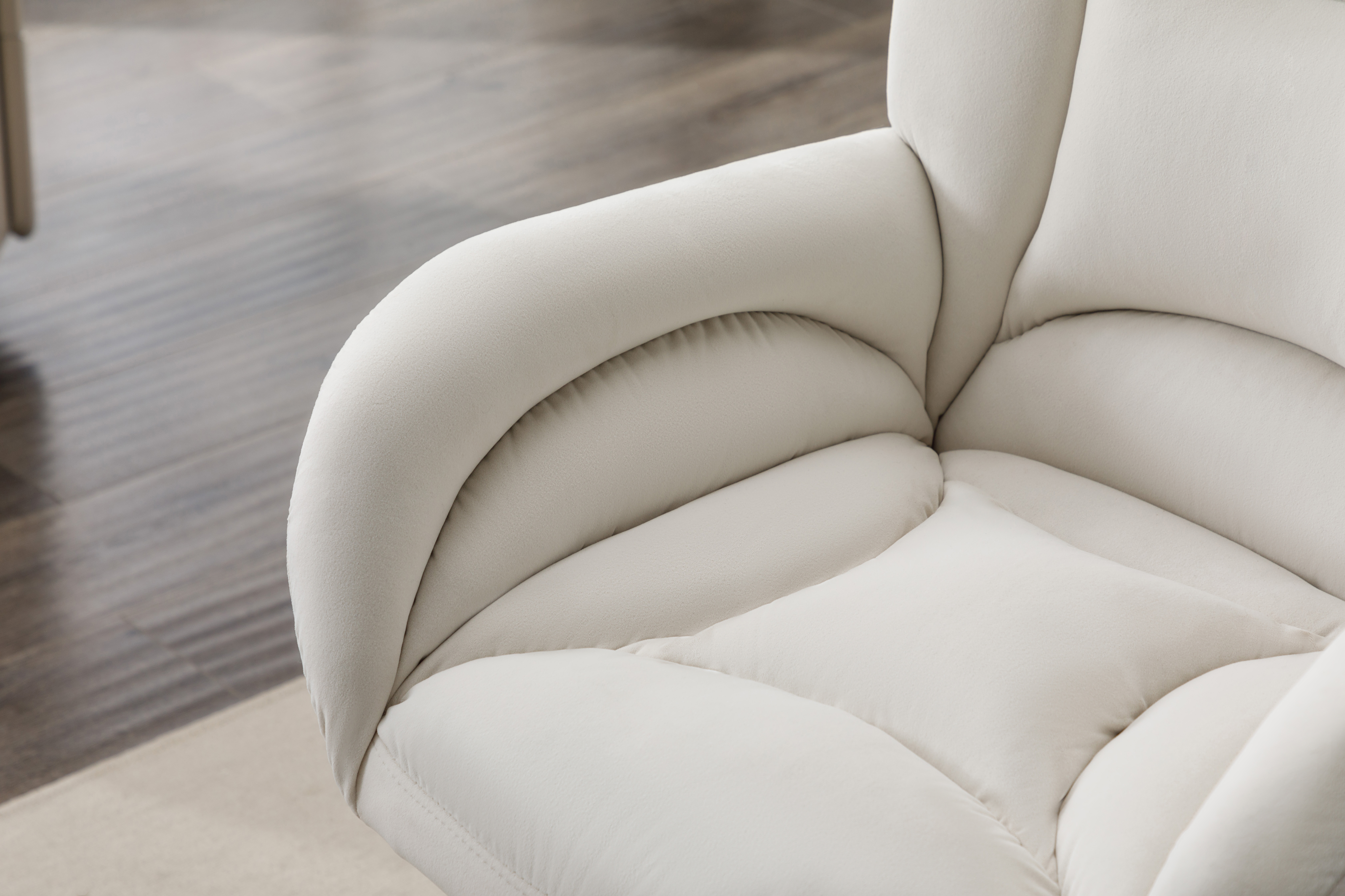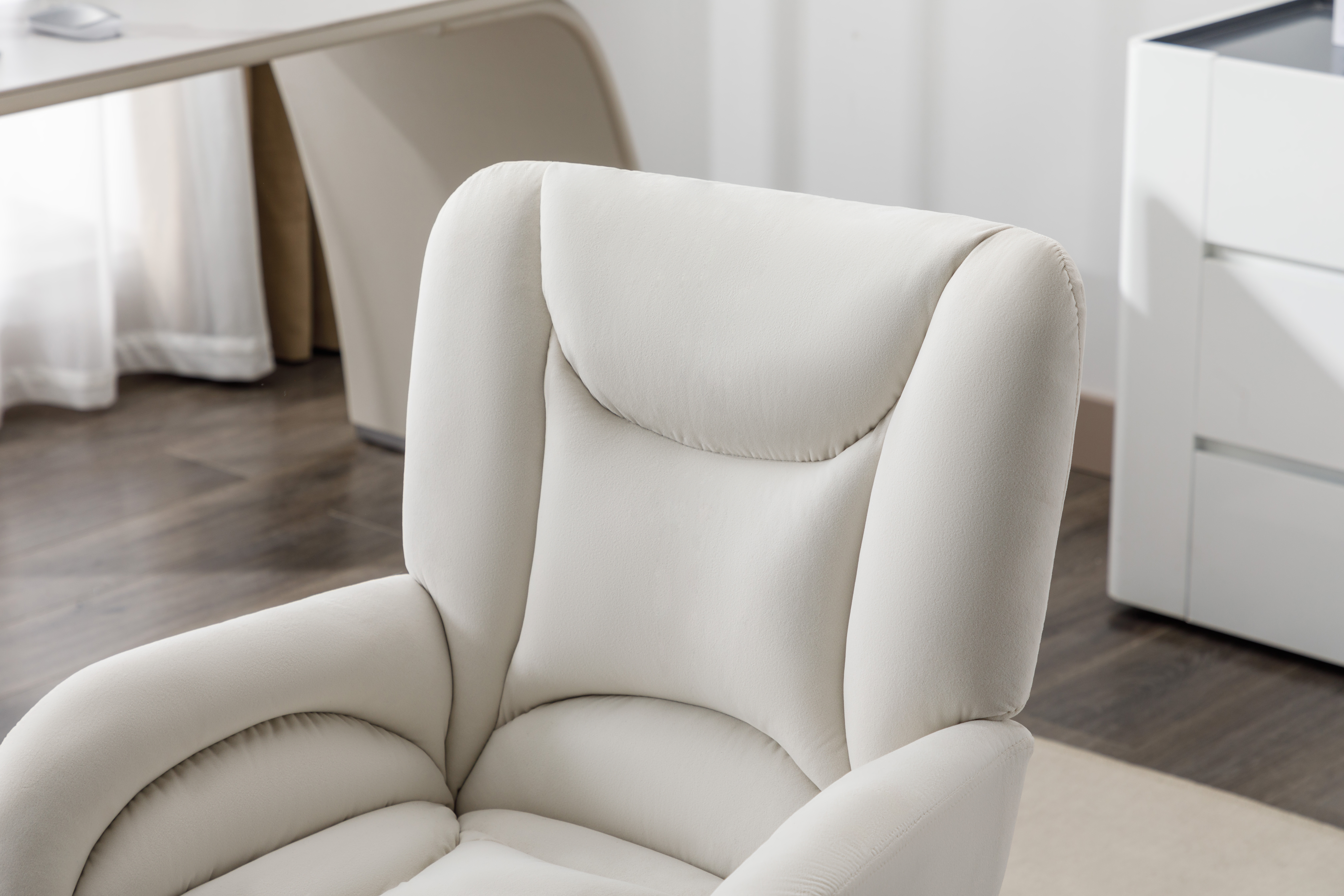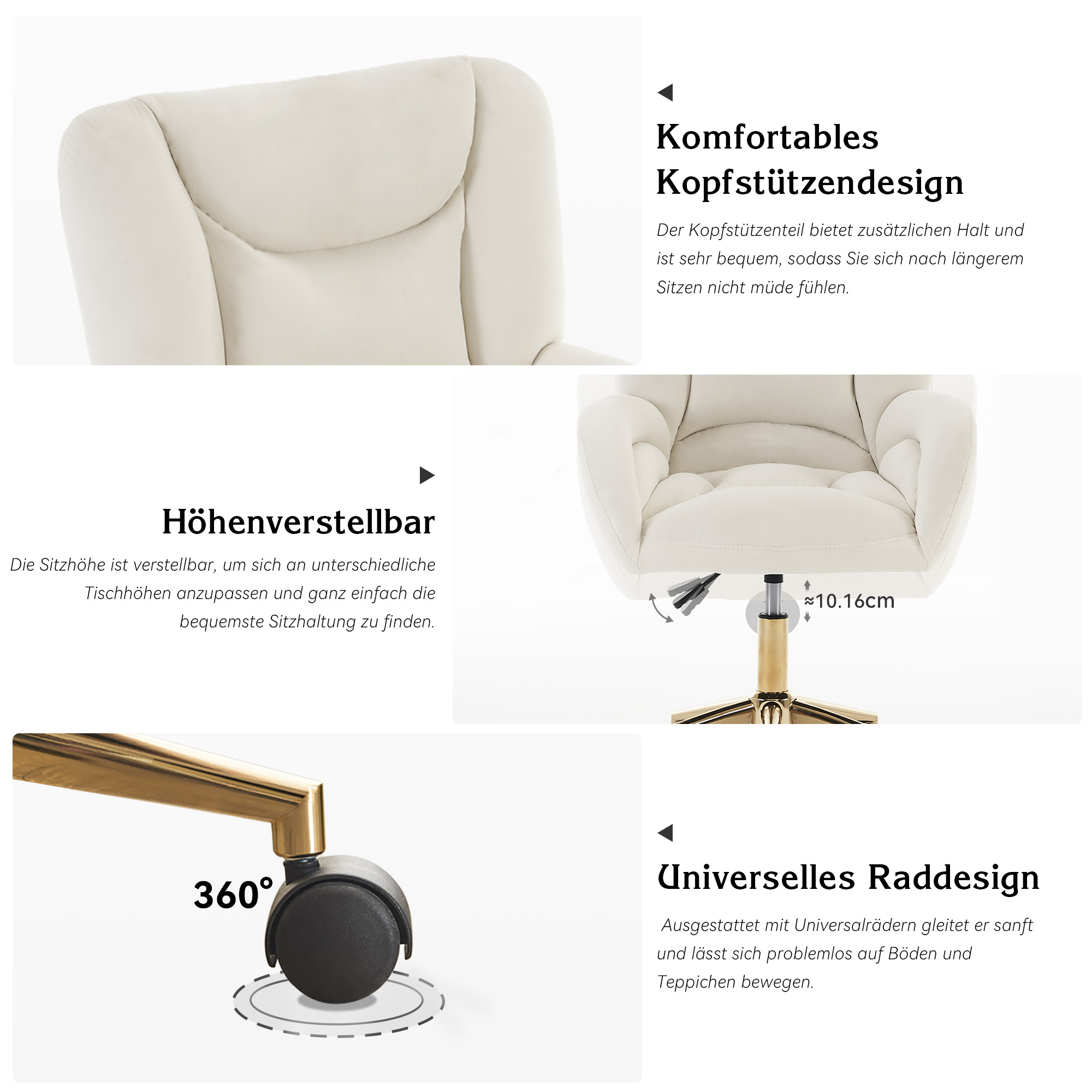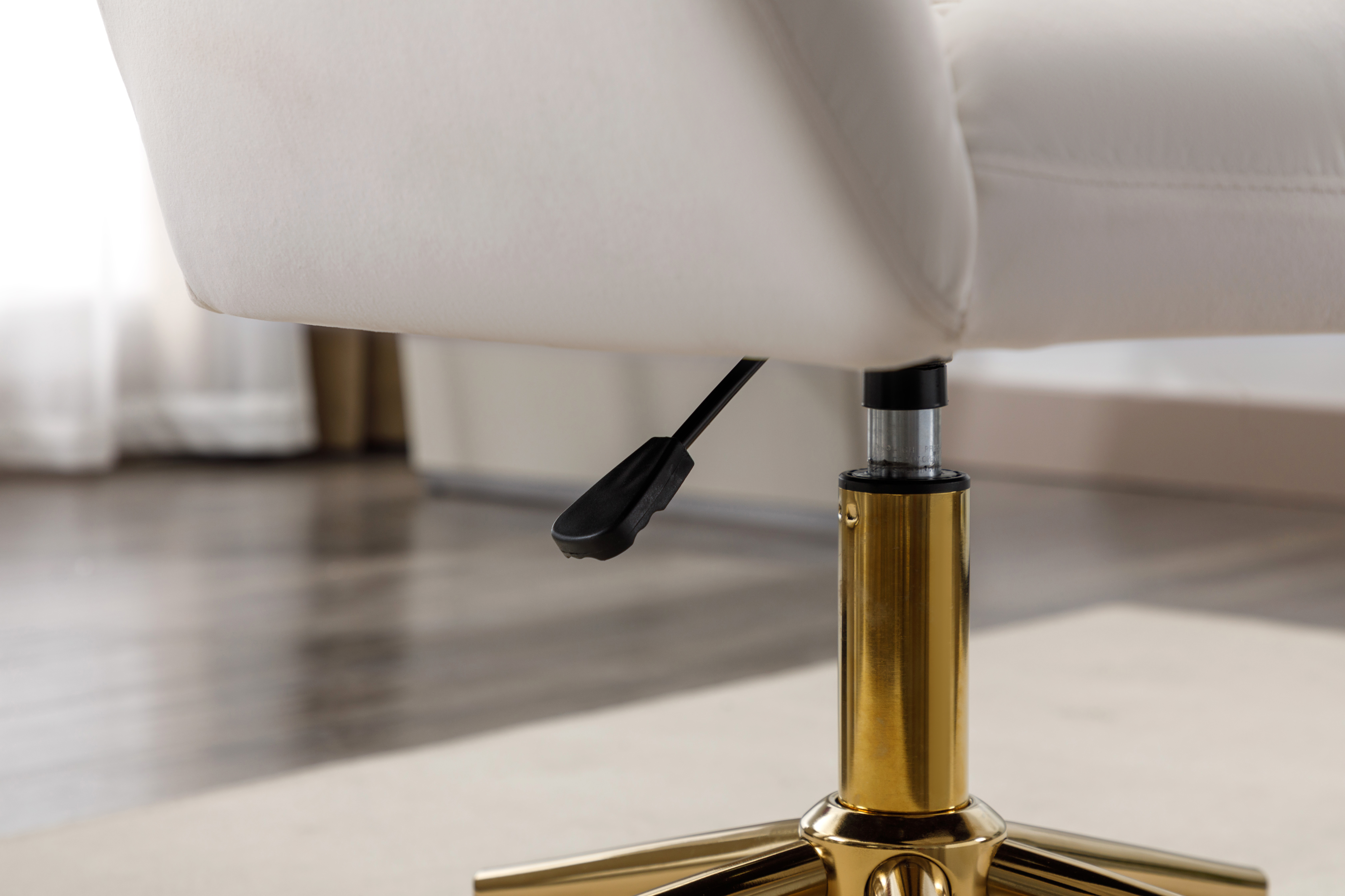 轻奢天鹅绒办公椅 金色脚升降电脑椅 家用书桌椅主播椅 象牙白绒布书房座椅 带滚轮可滑动 舒适久坐